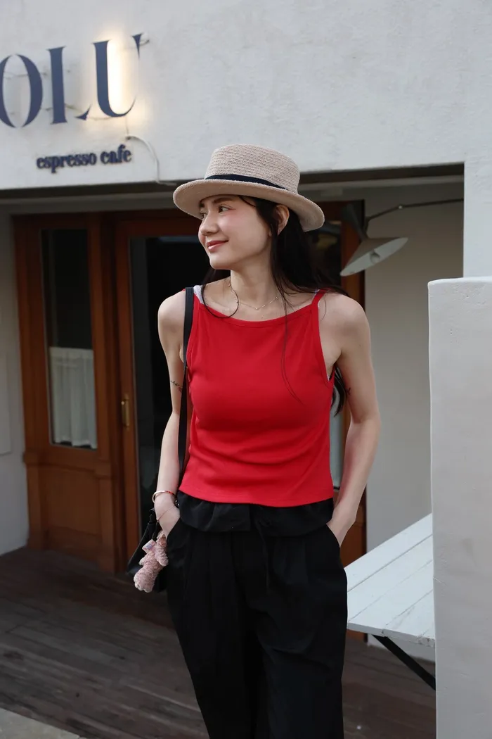 AE17 正反兩穿船領細肩背心(紅/綠/白/灰紫)