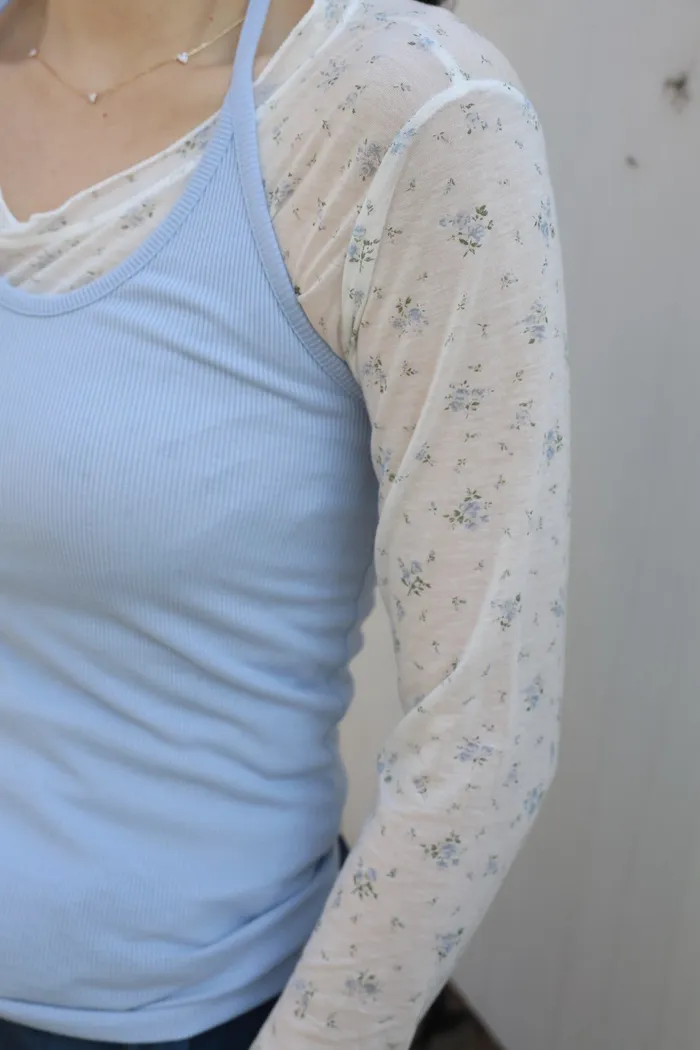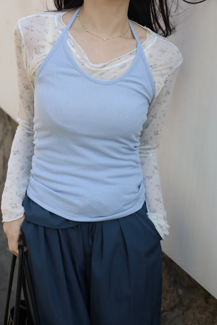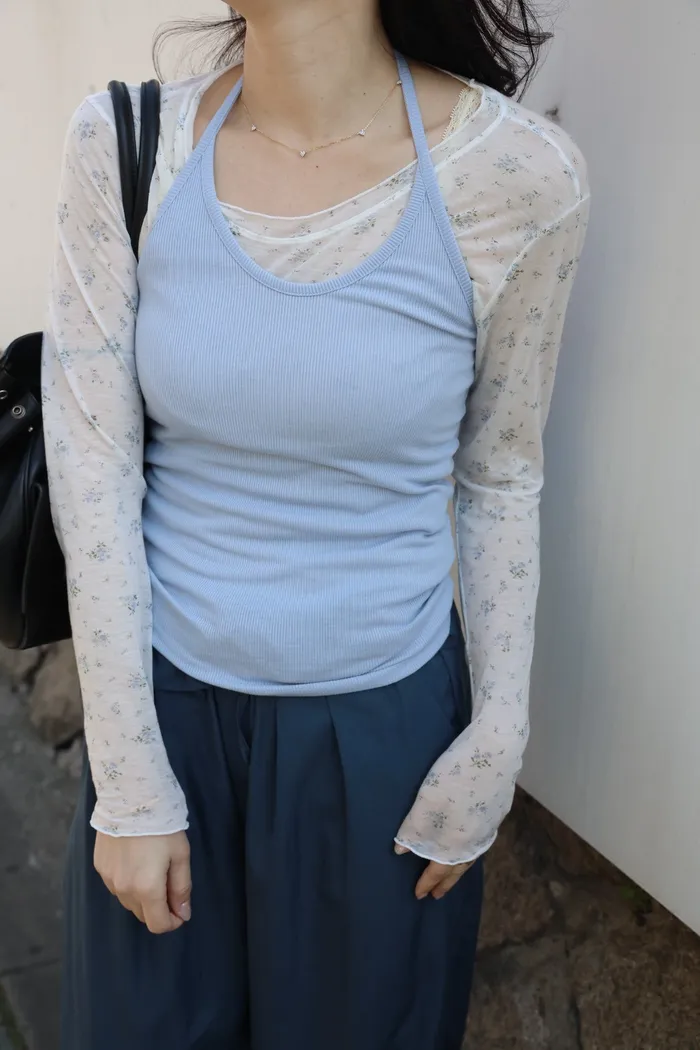 AE19 氣質碎花透膚打底上衣