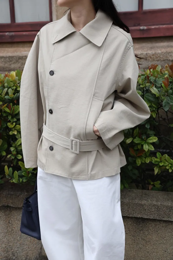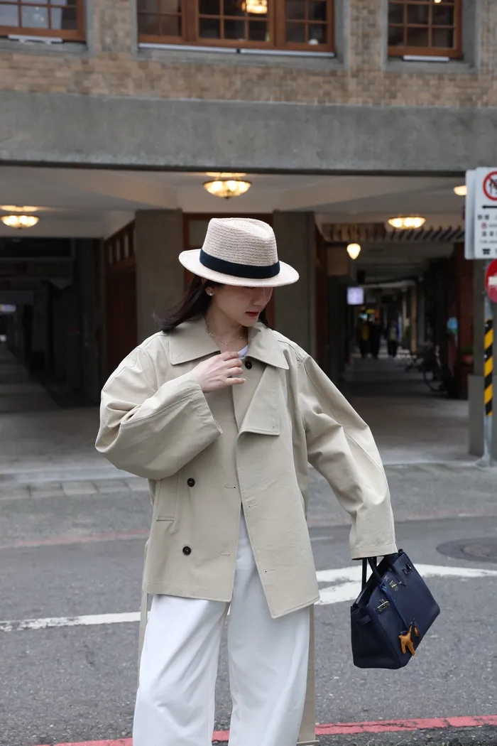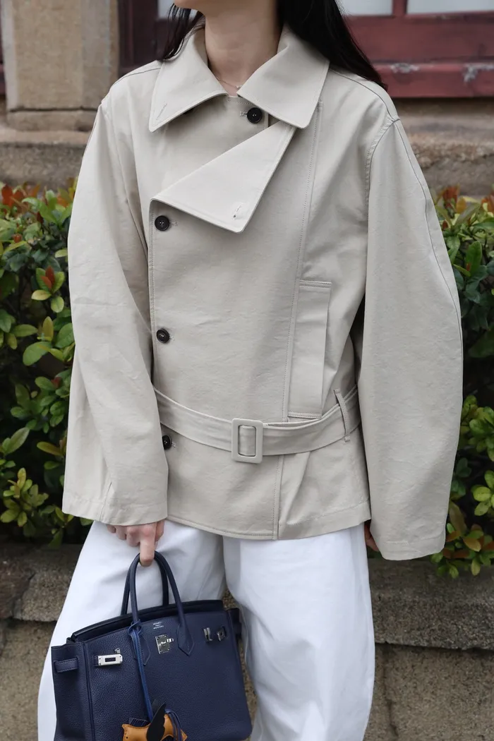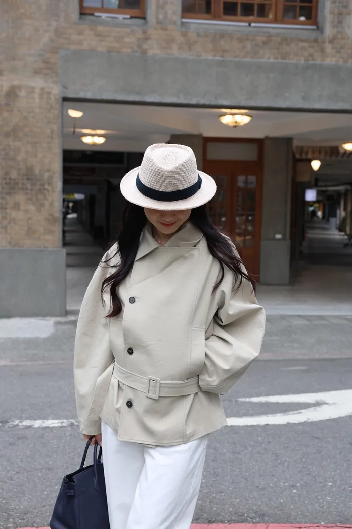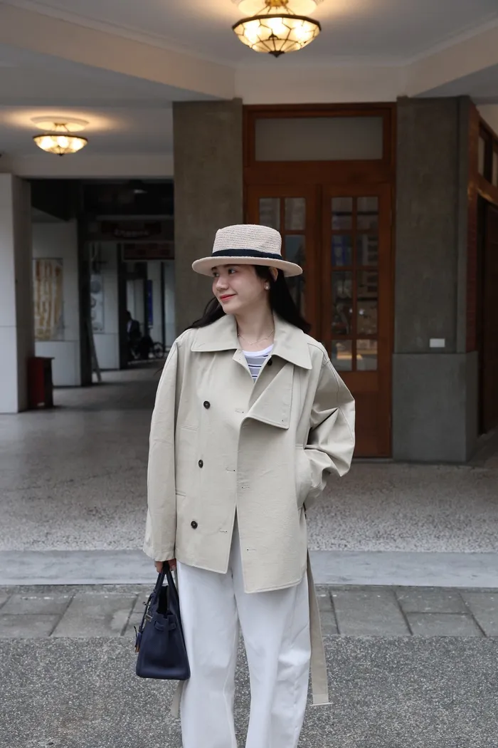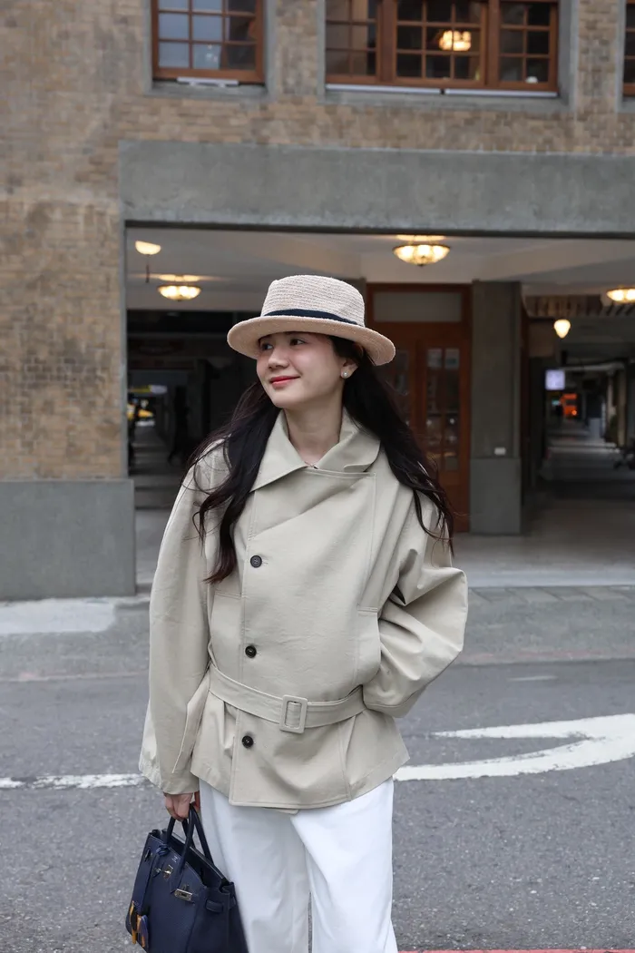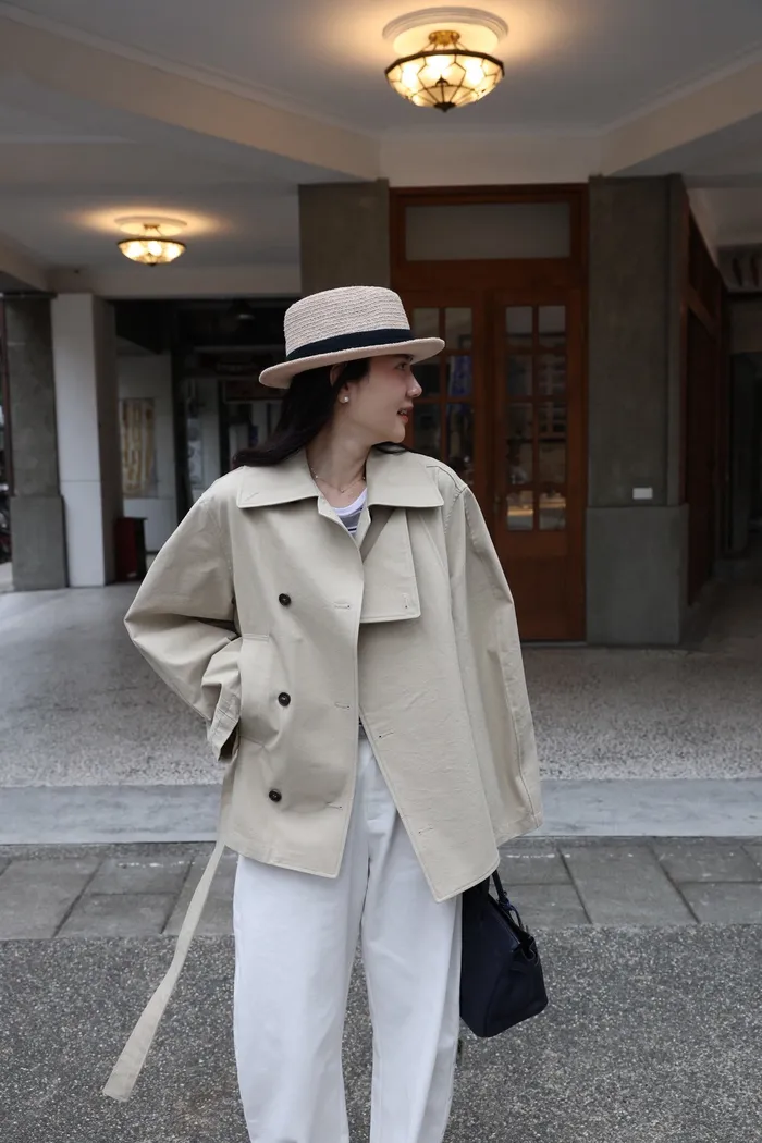AE47 專櫃高級挺版腰帶風衣外套(黑/杏)