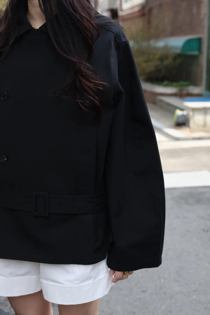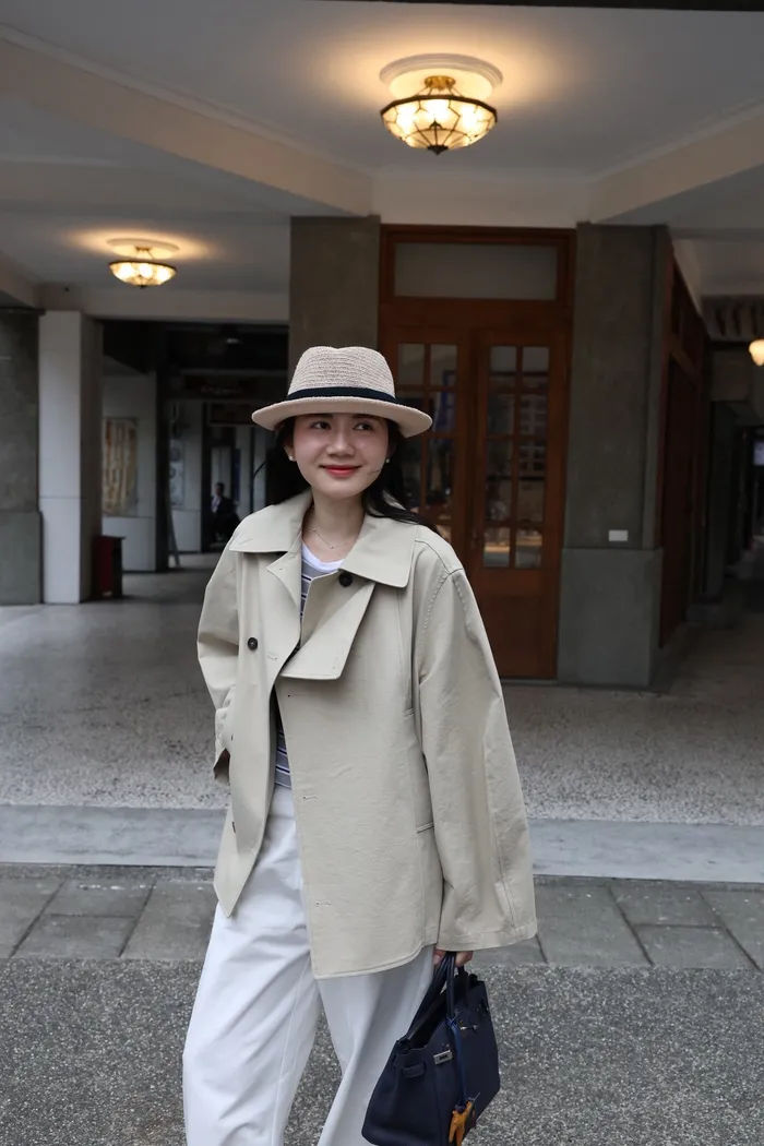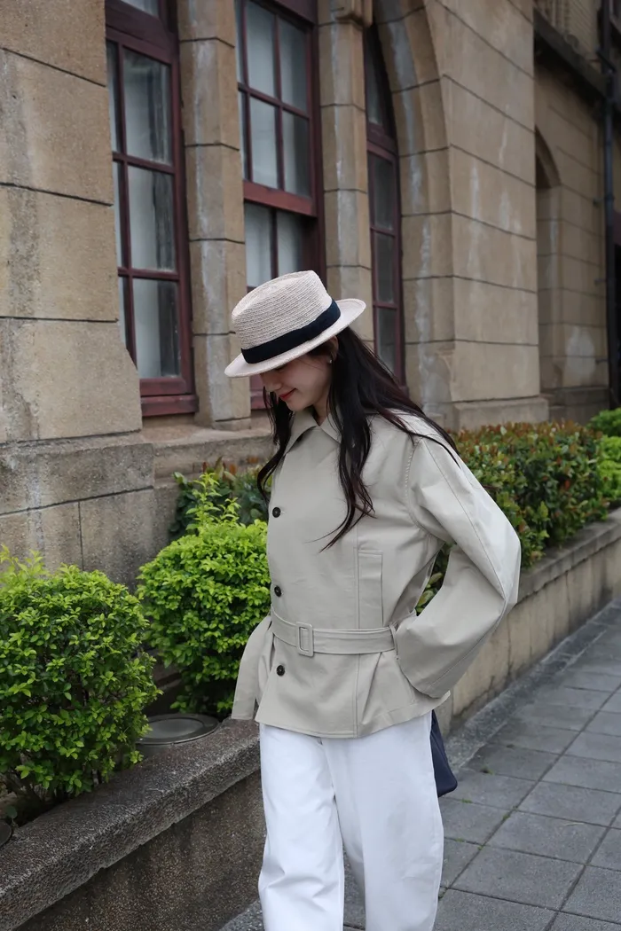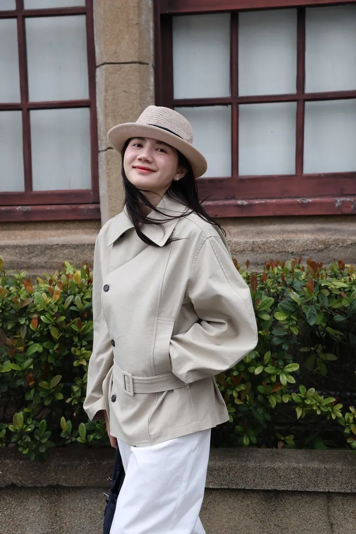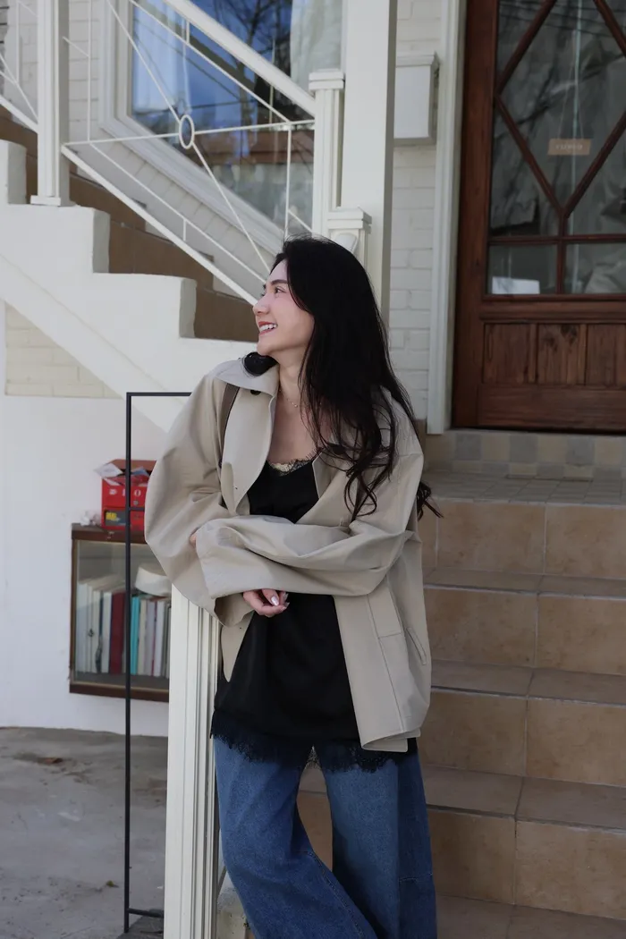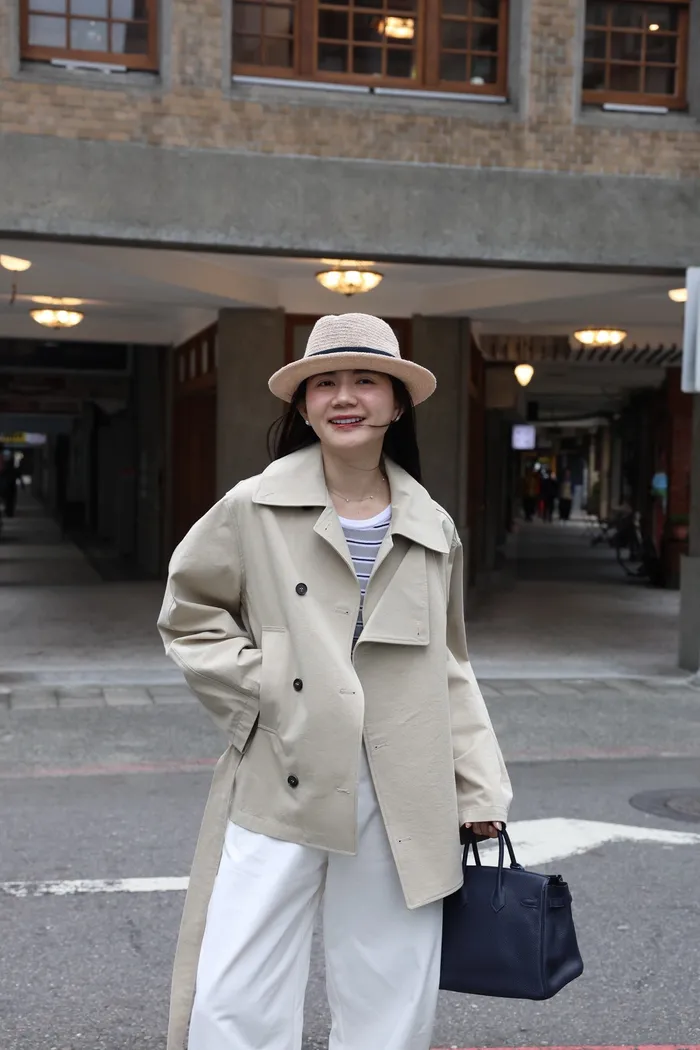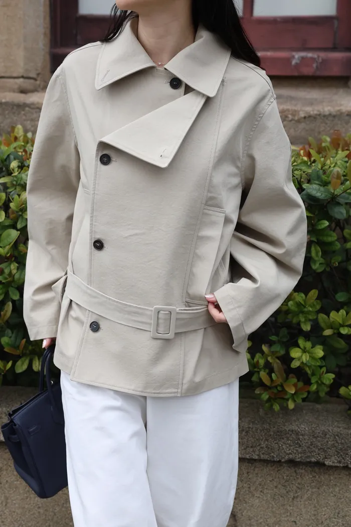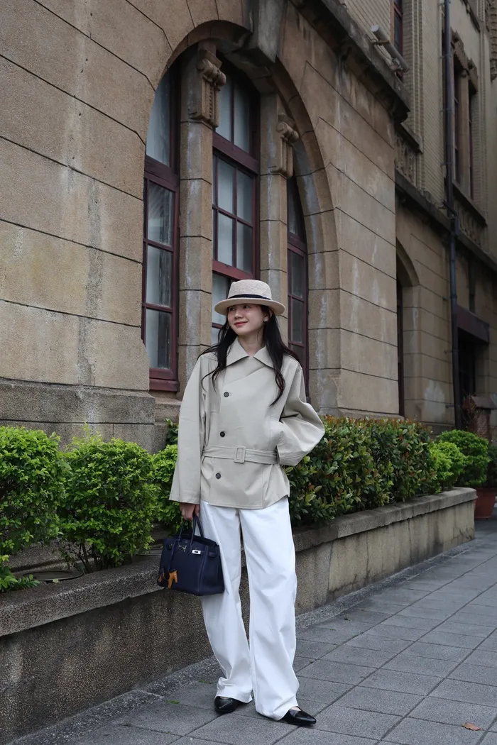 AE47 專櫃高級挺版腰帶風衣外套(黑/杏)