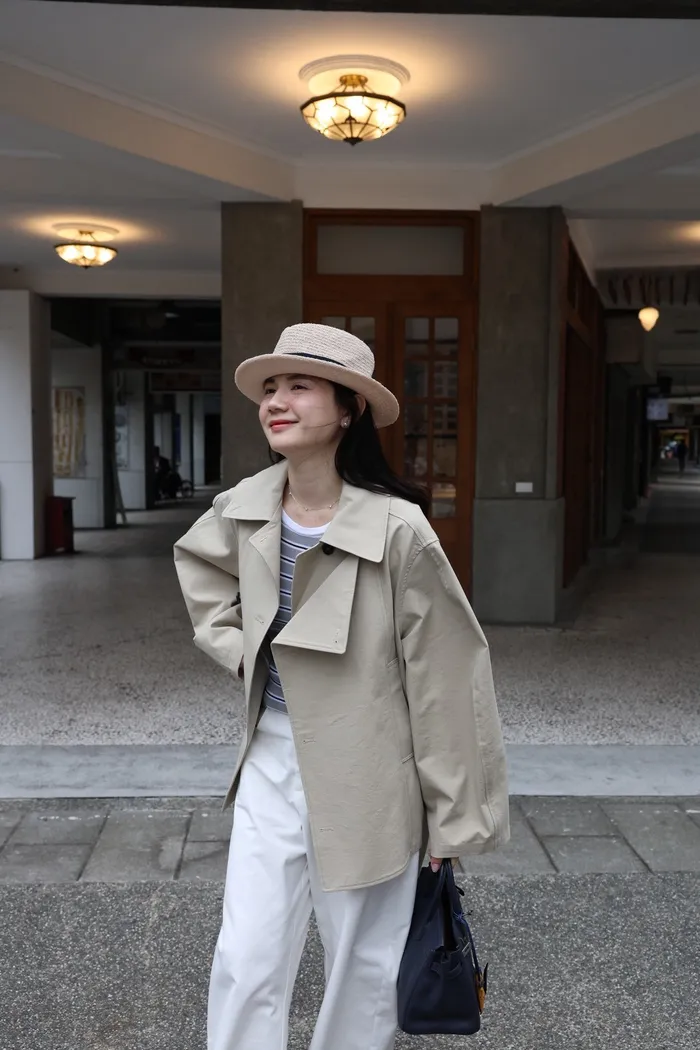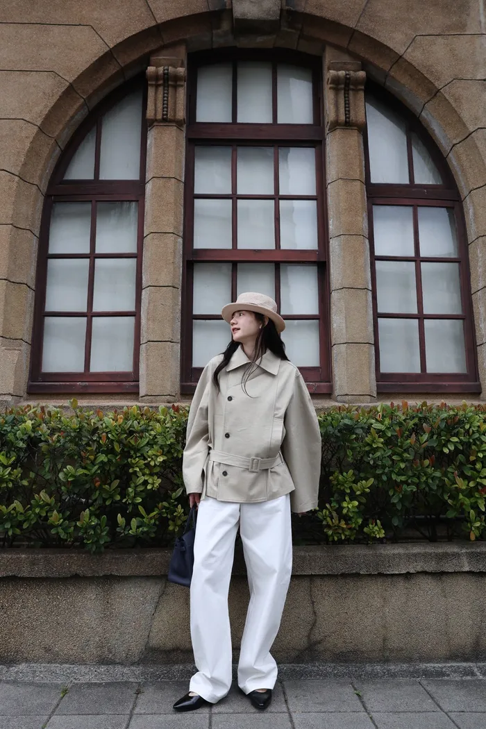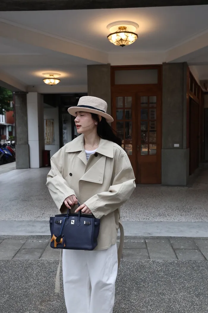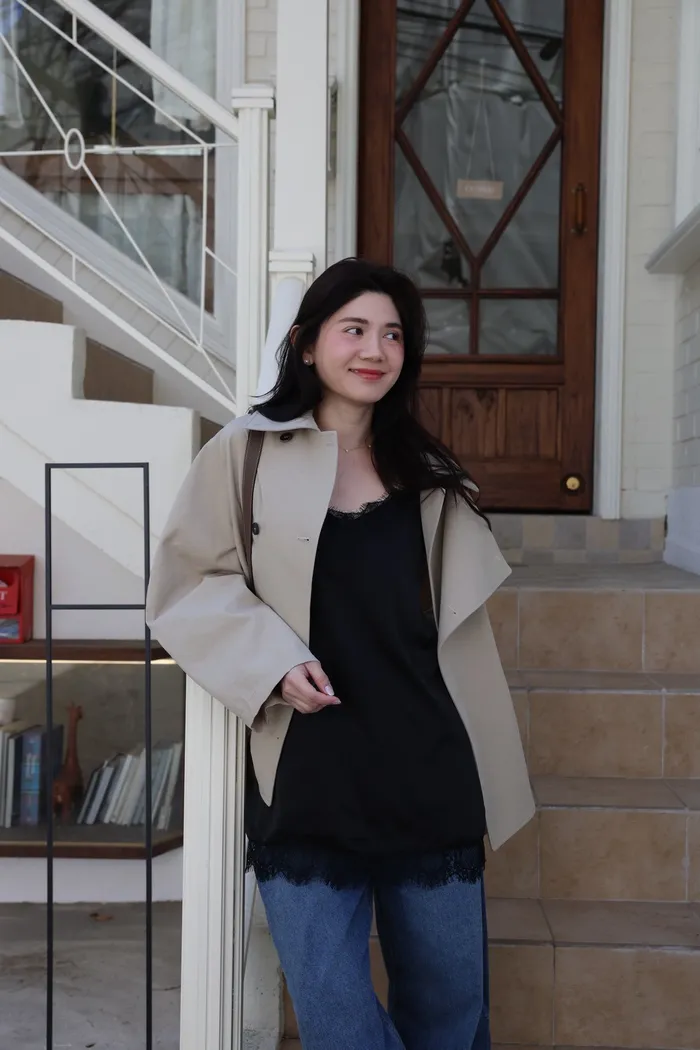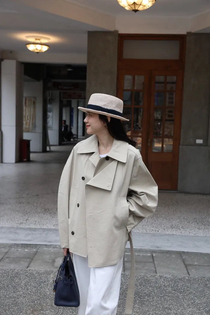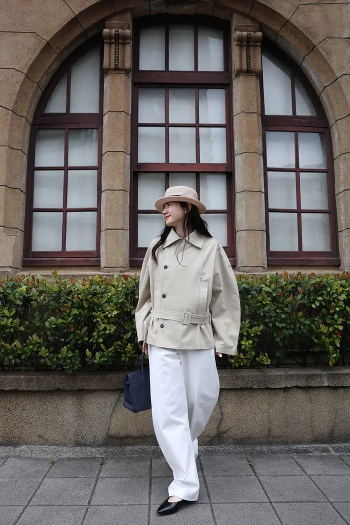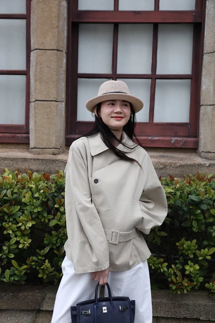 AE47 專櫃高級挺版腰帶風衣外套(黑/杏)