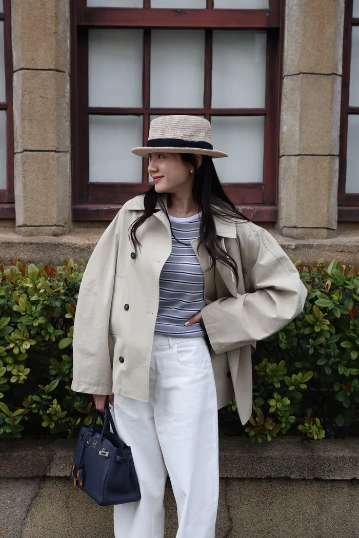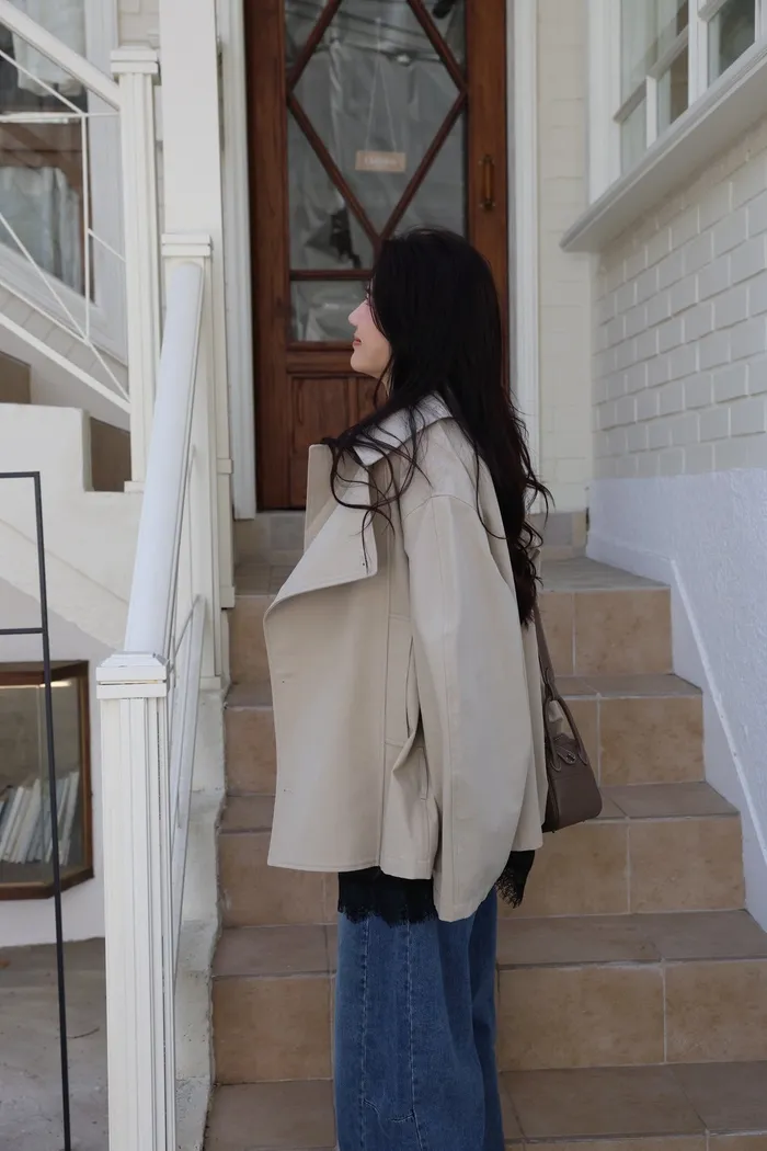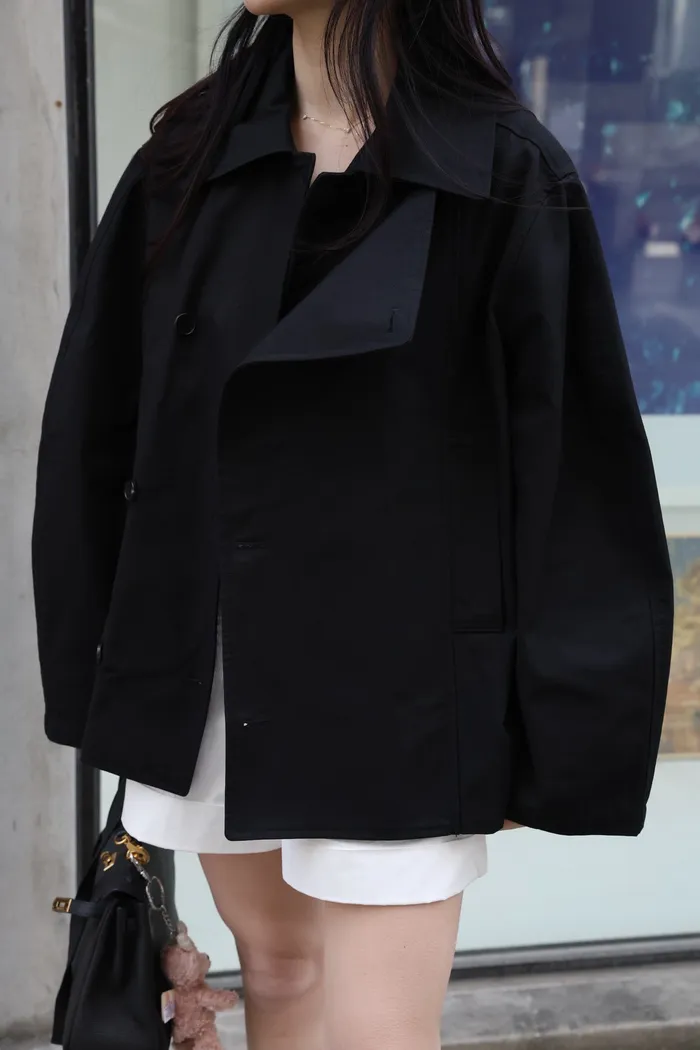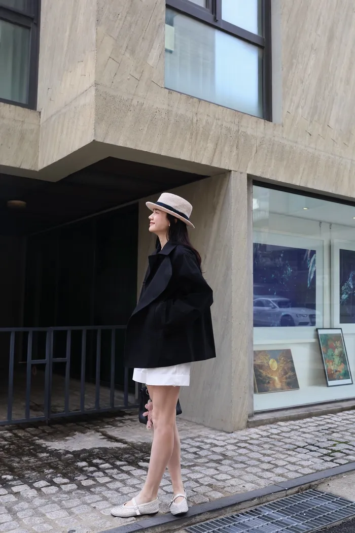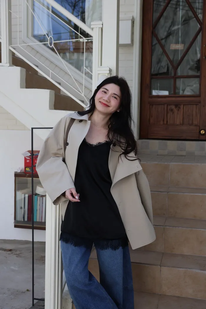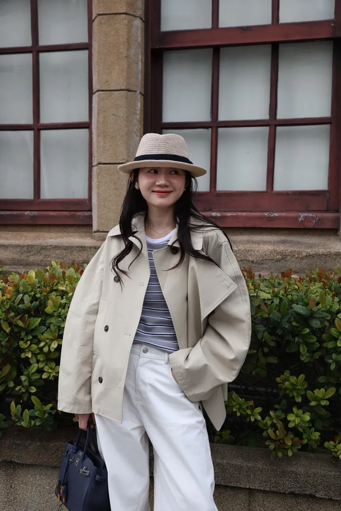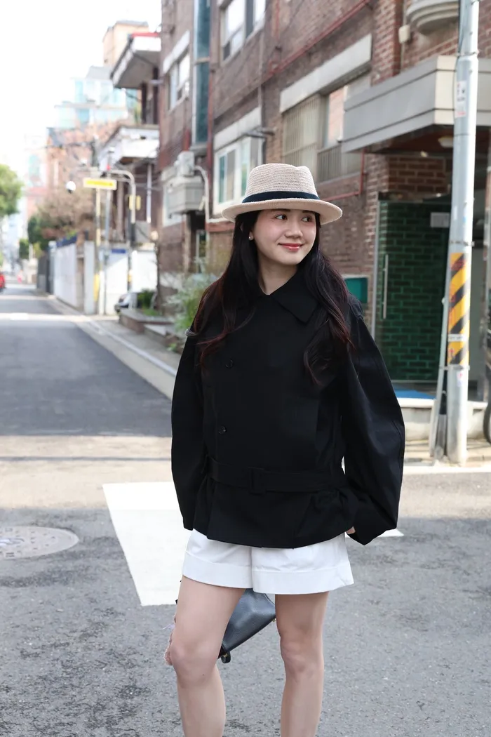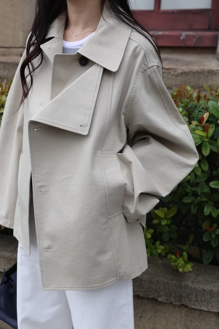 AE47 專櫃高級挺版腰帶風衣外套(黑/杏)