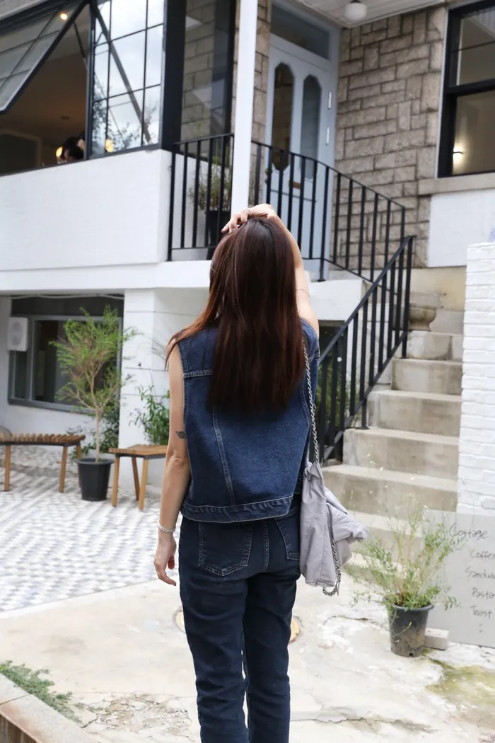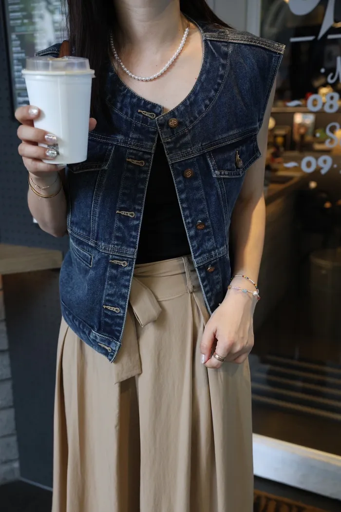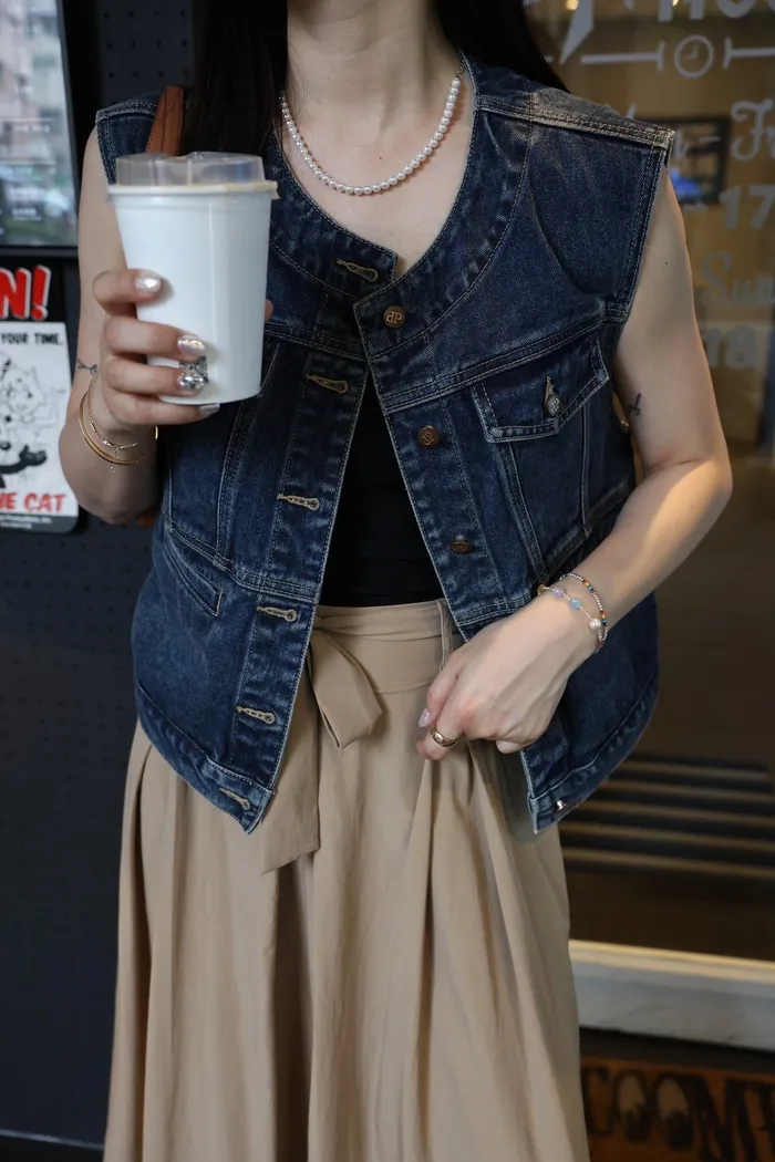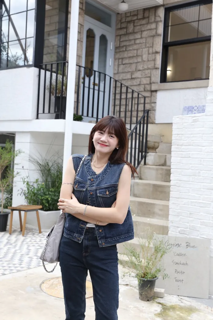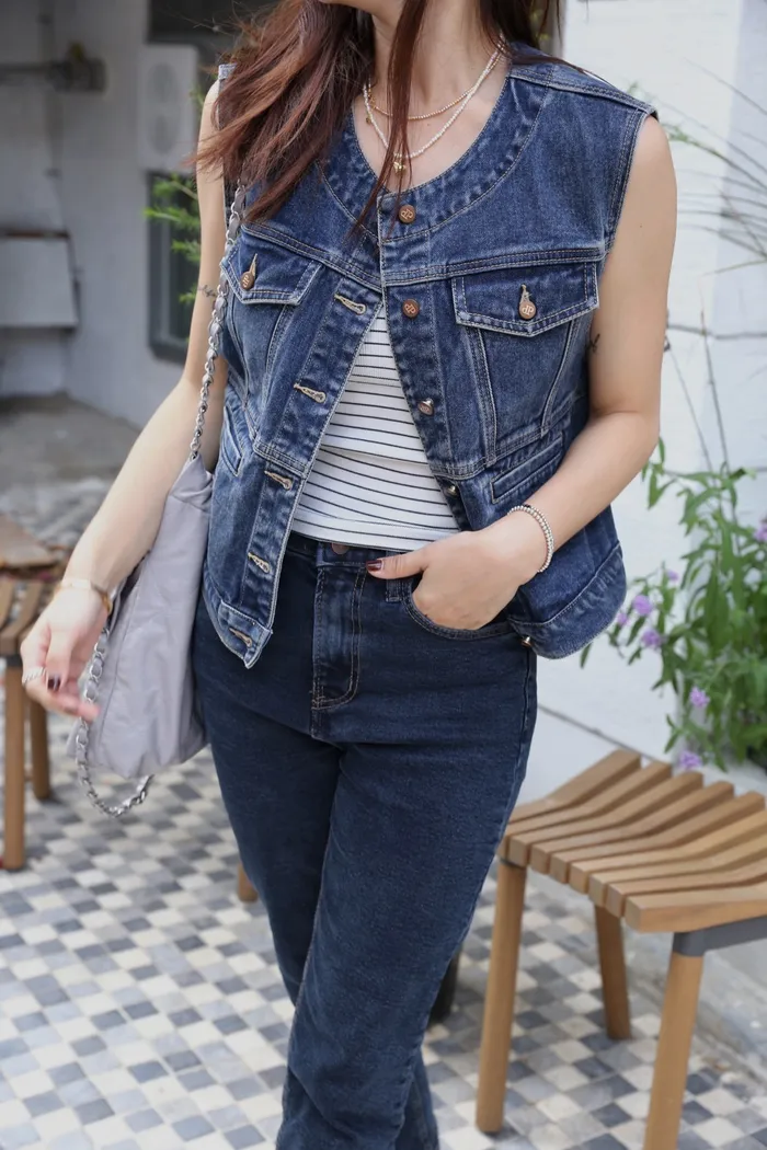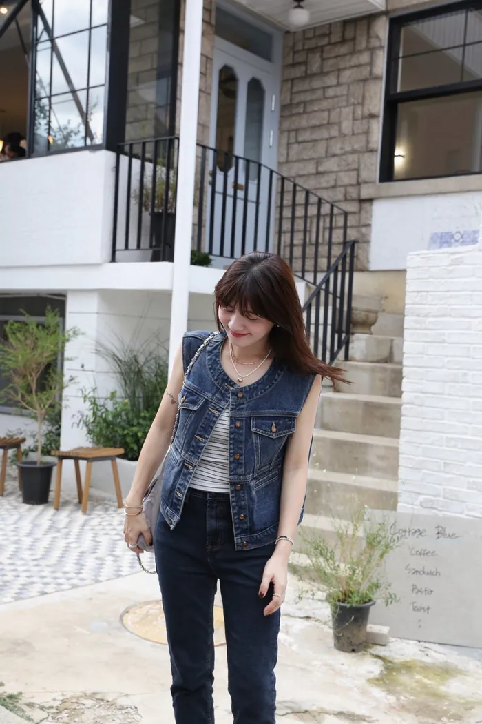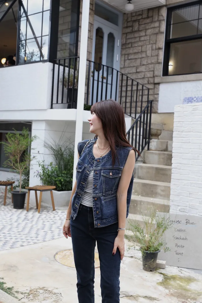 AL13 熱銷百件好評好搭時髦牛仔背心 深藍