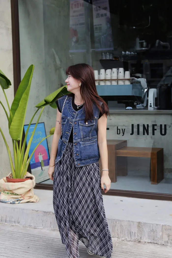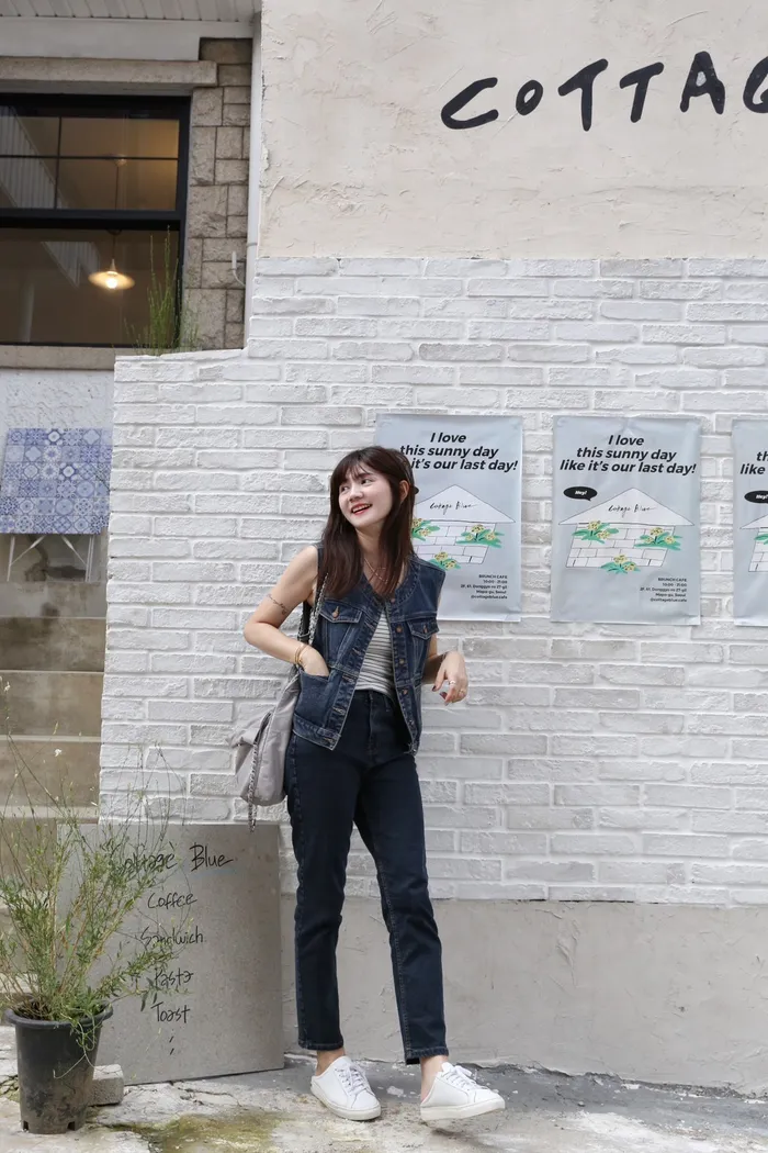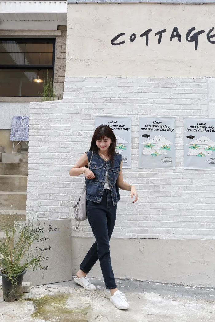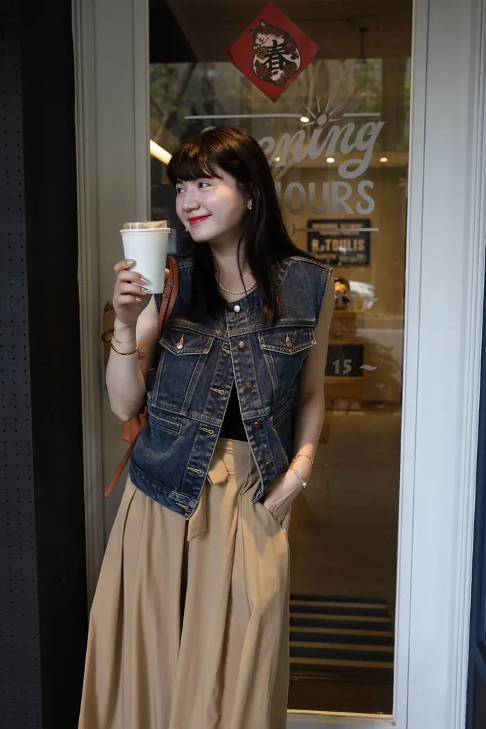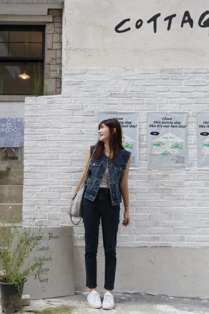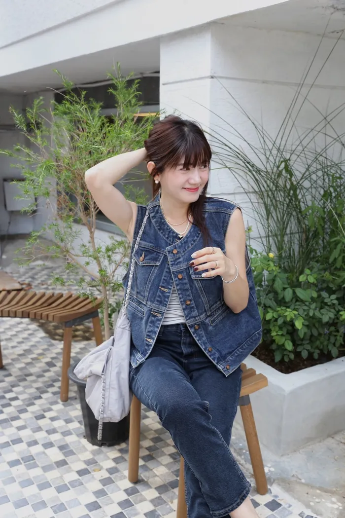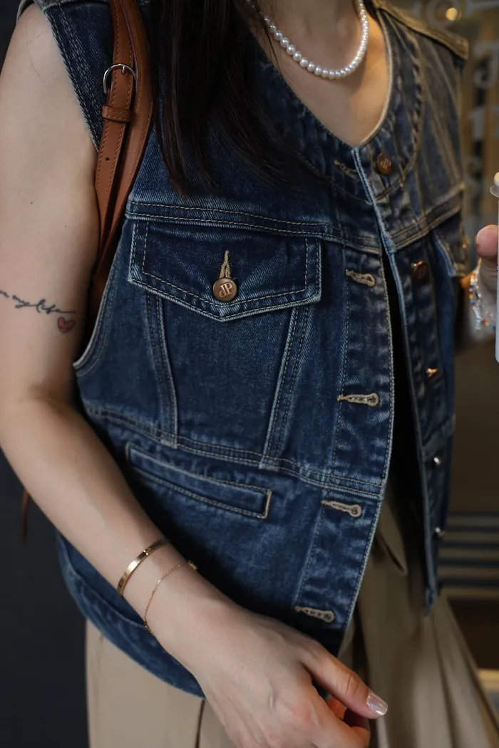 AL13 熱銷百件好評好搭時髦牛仔背心 深藍