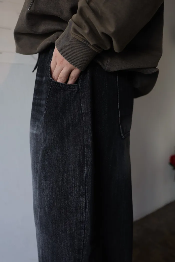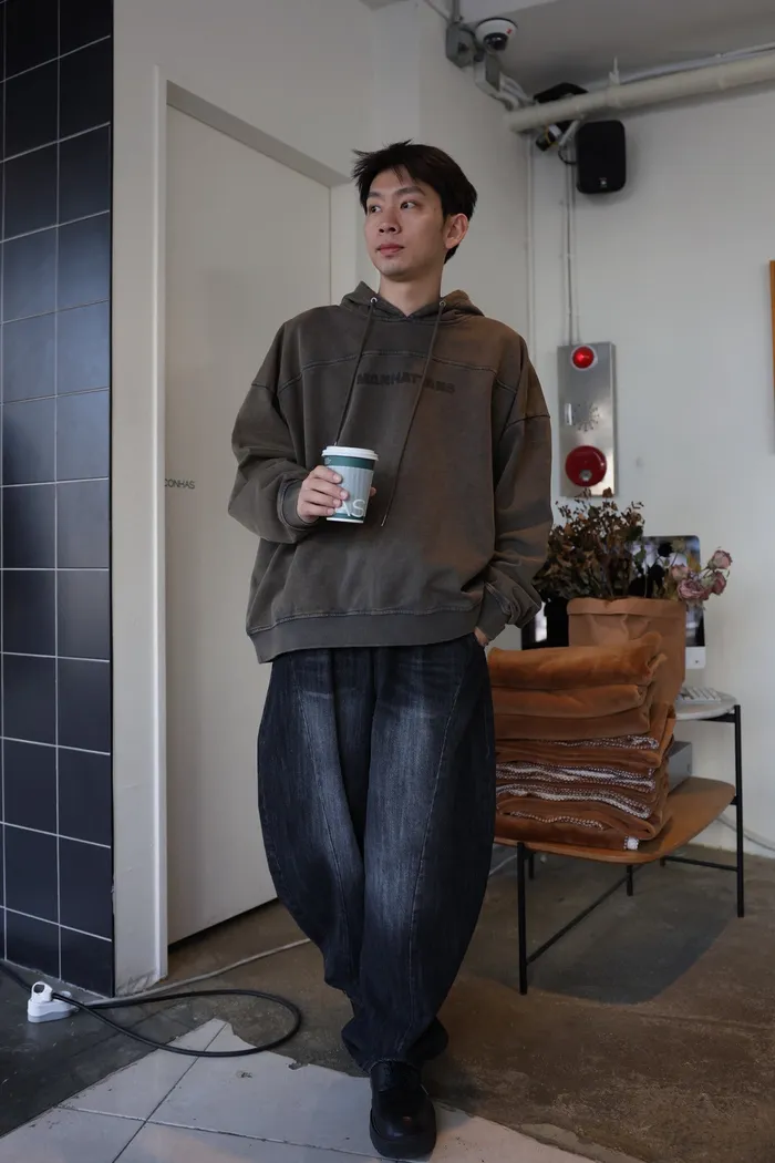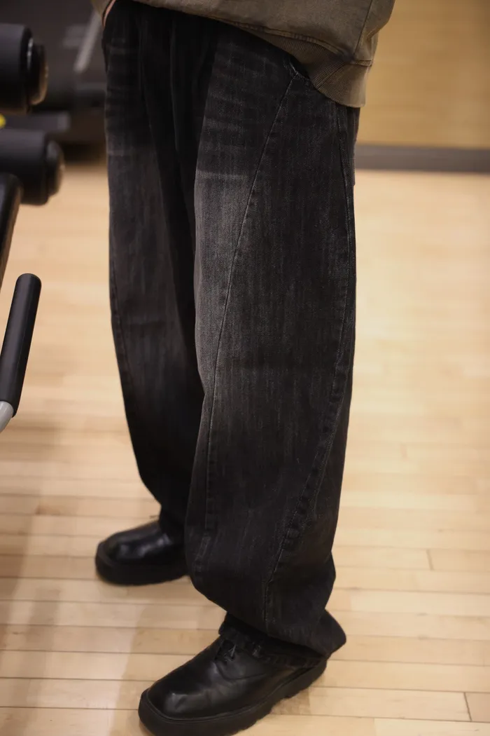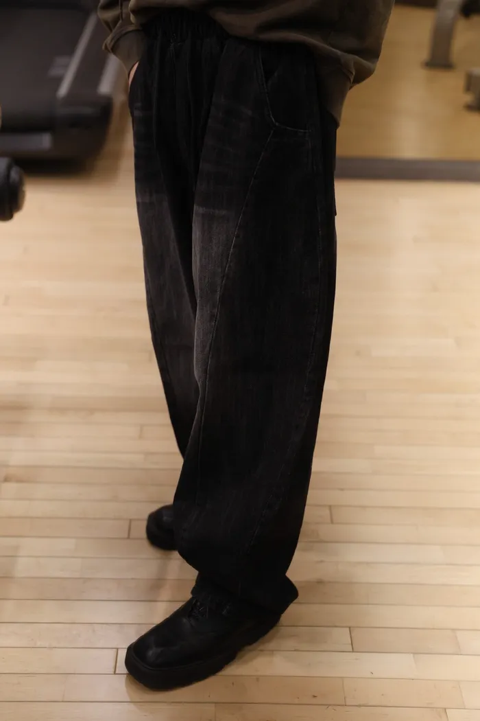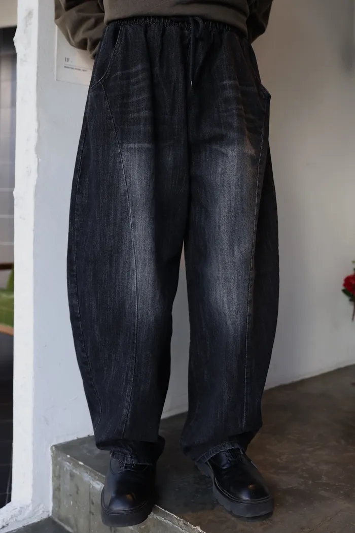 DD39 男裝!全鬆緊繭型3D刷色牛仔褲(藍/新色黑)