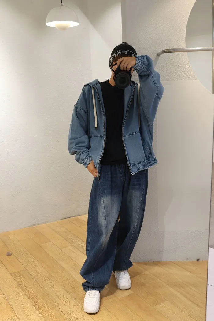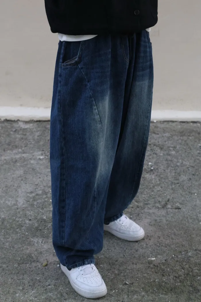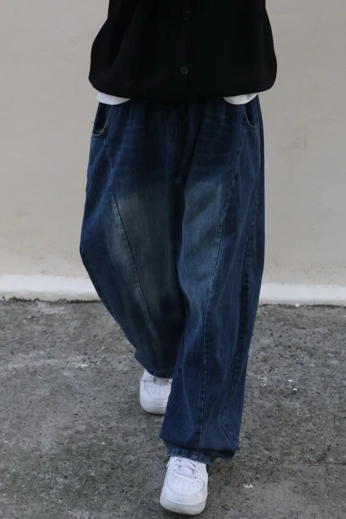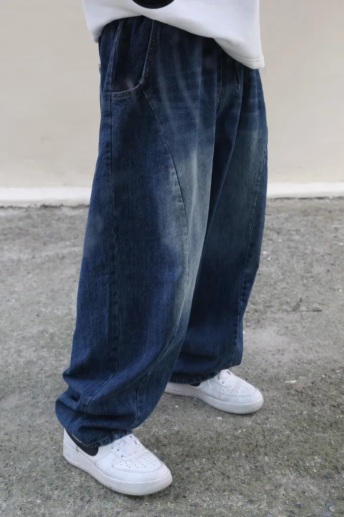 DD39 男裝!全鬆緊繭型3D刷色牛仔褲