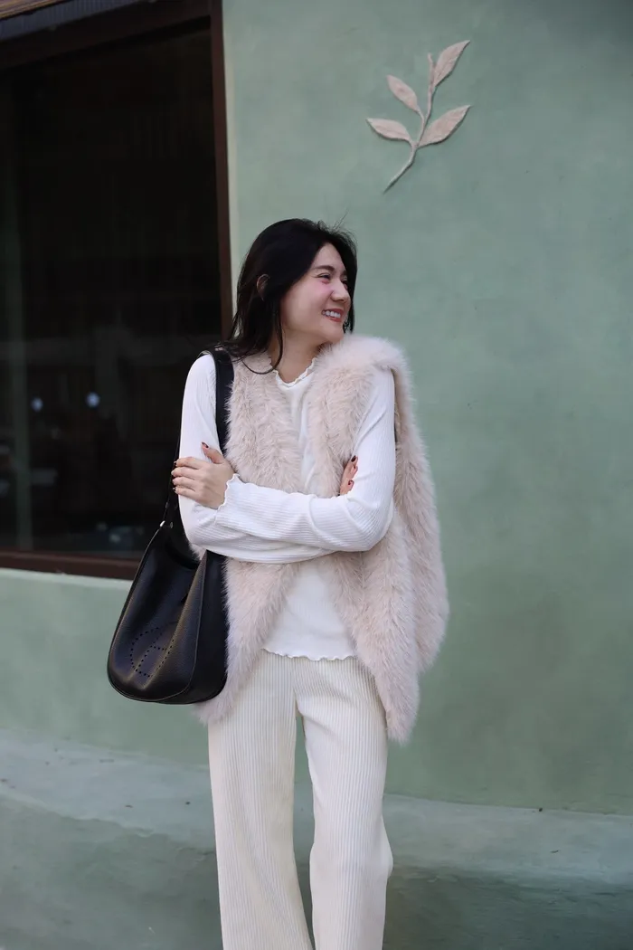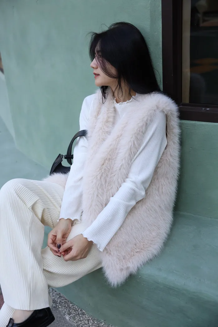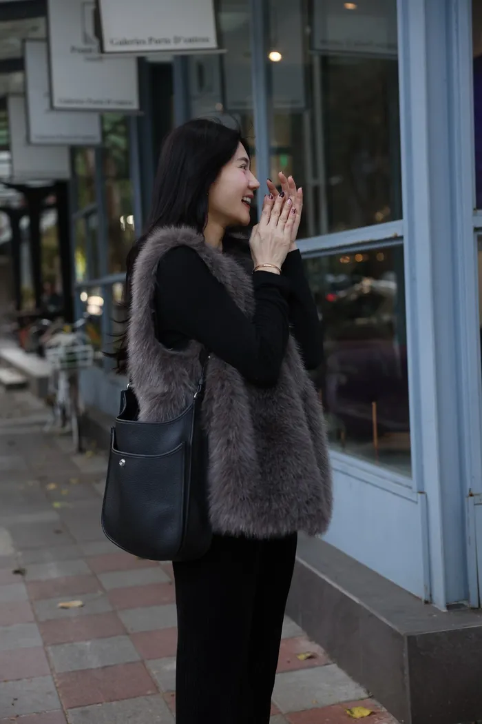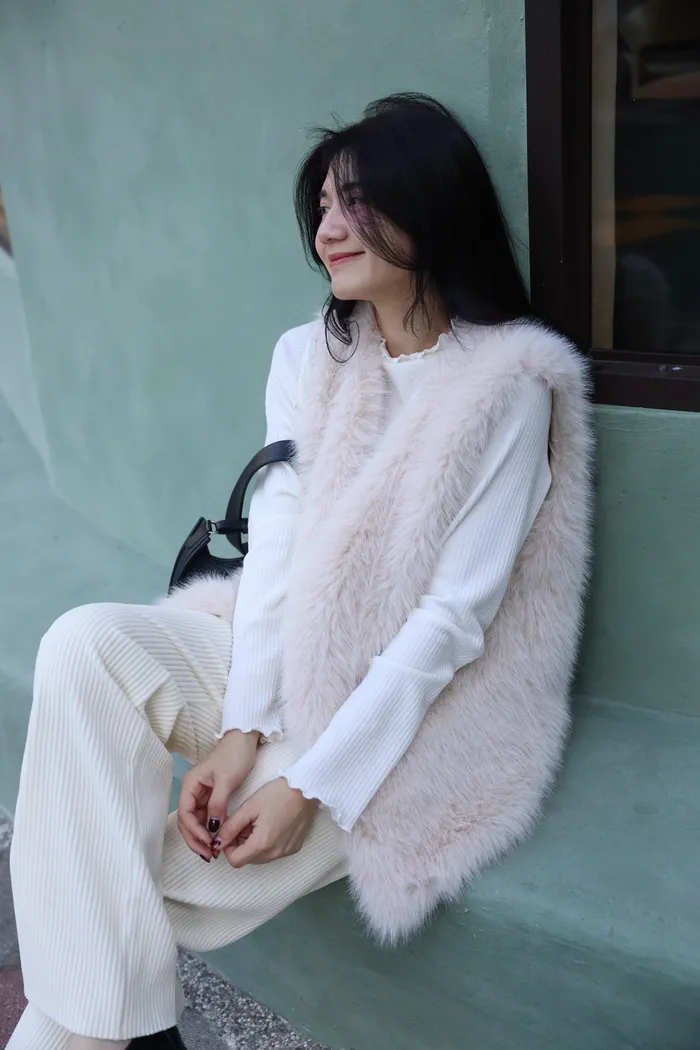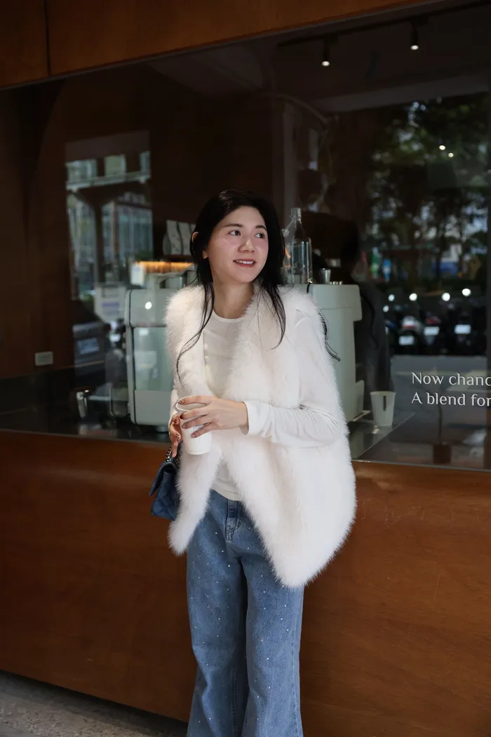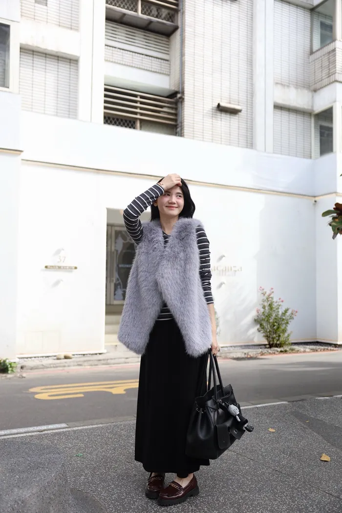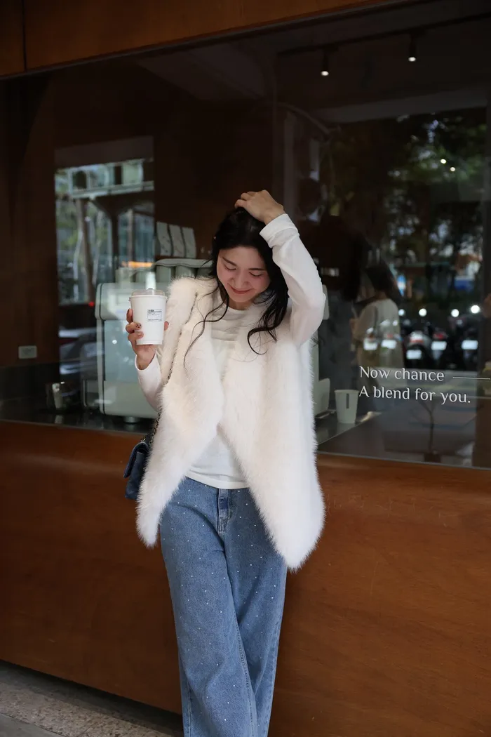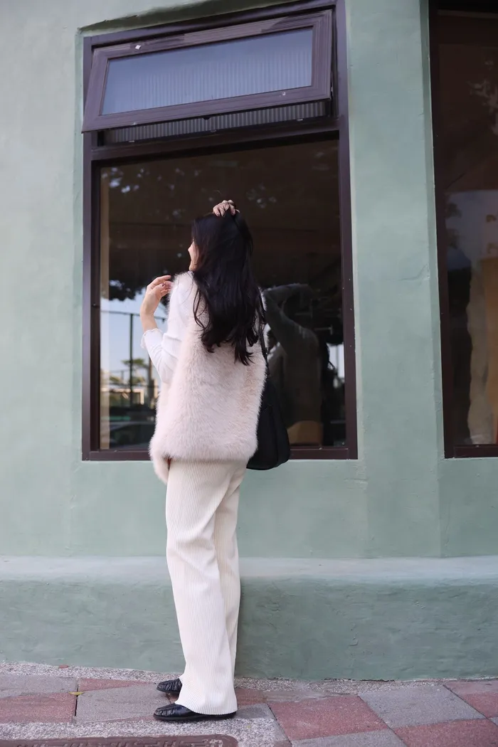 DL02 低調貴婦閃亮毛毛口袋背心(米白/灰/咖/杏)