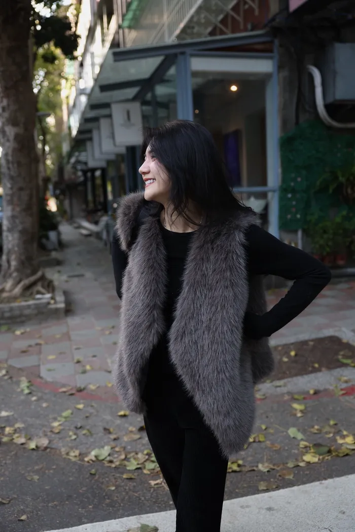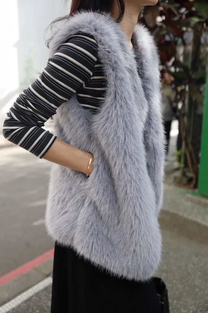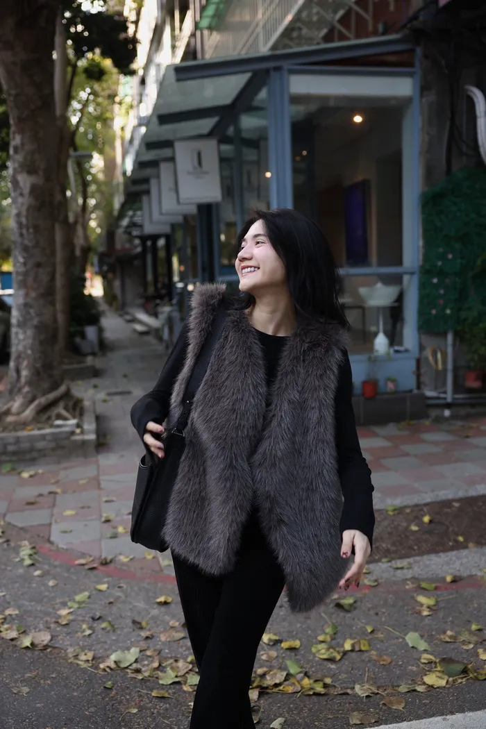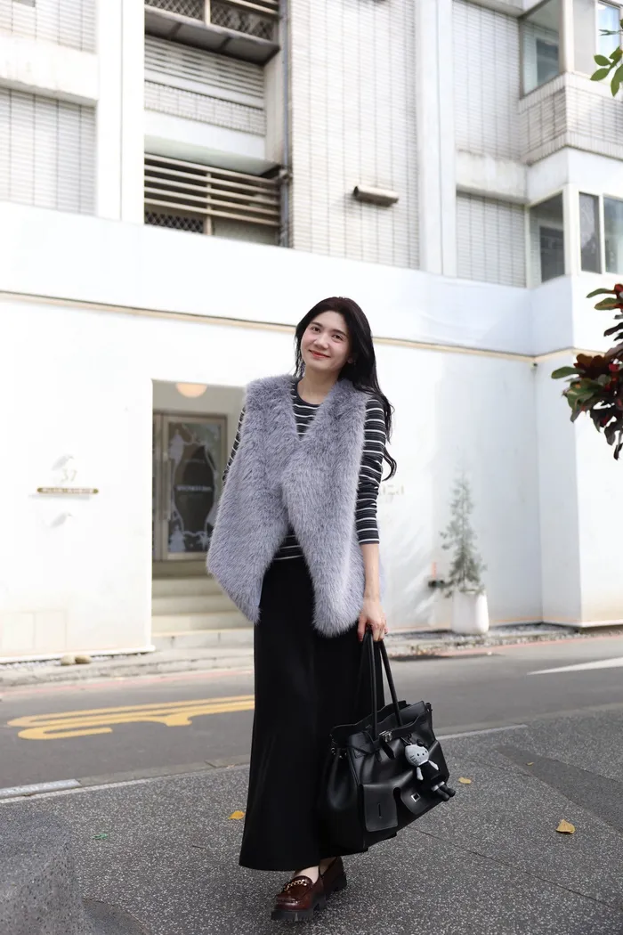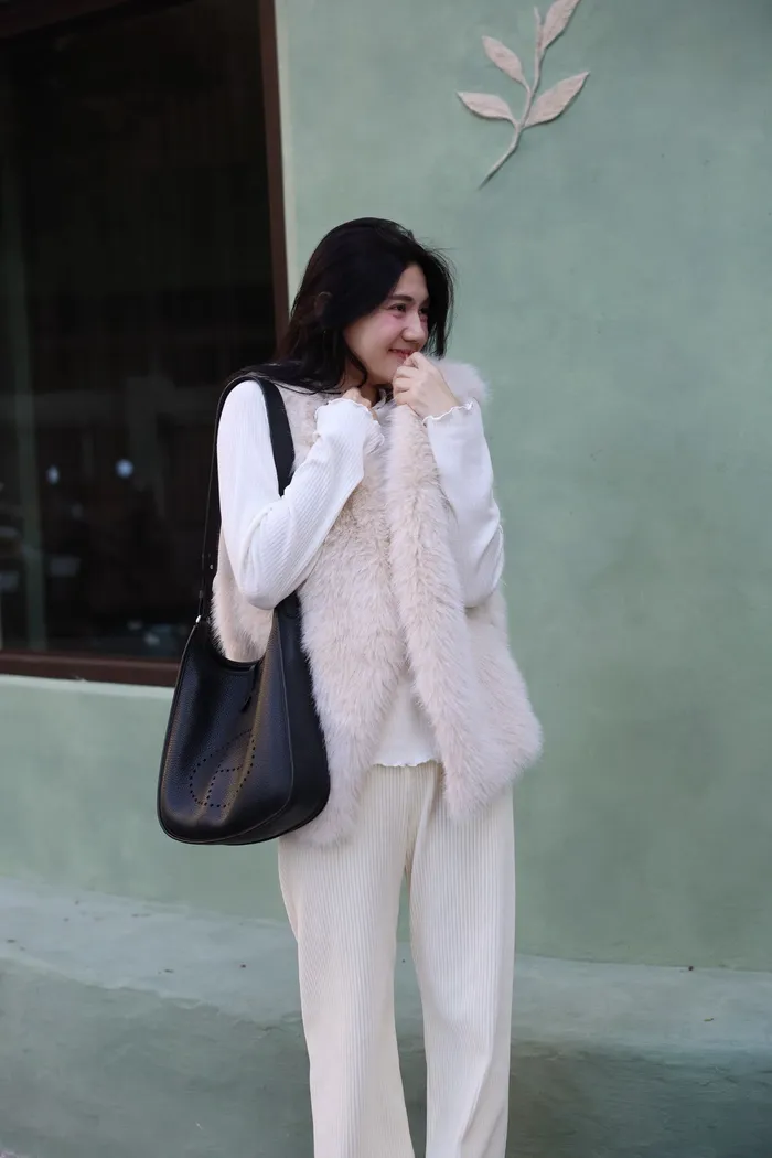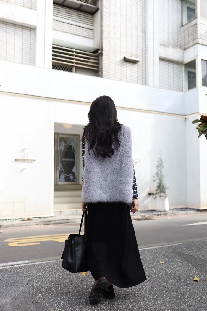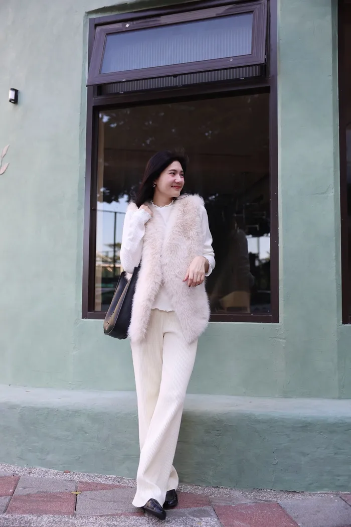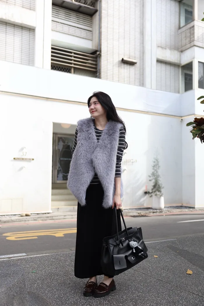 DL02 低調貴婦閃亮毛毛口袋背心(米白/灰/咖/杏)