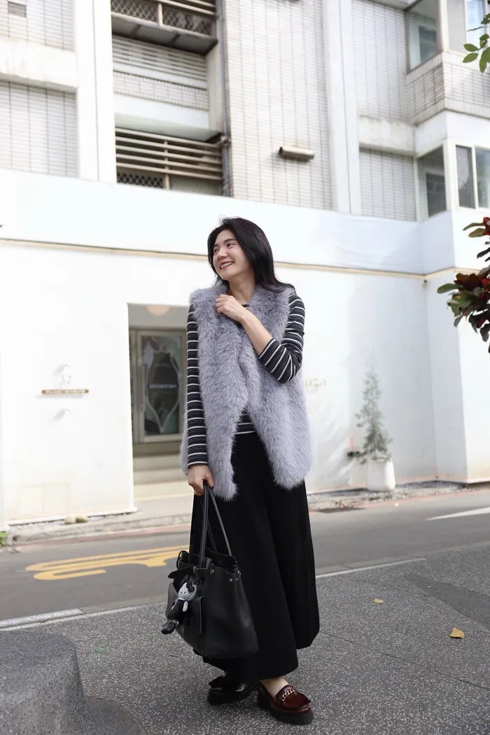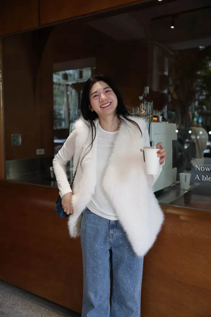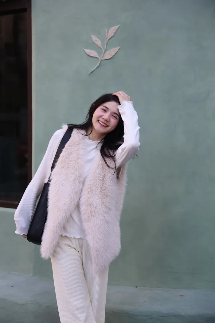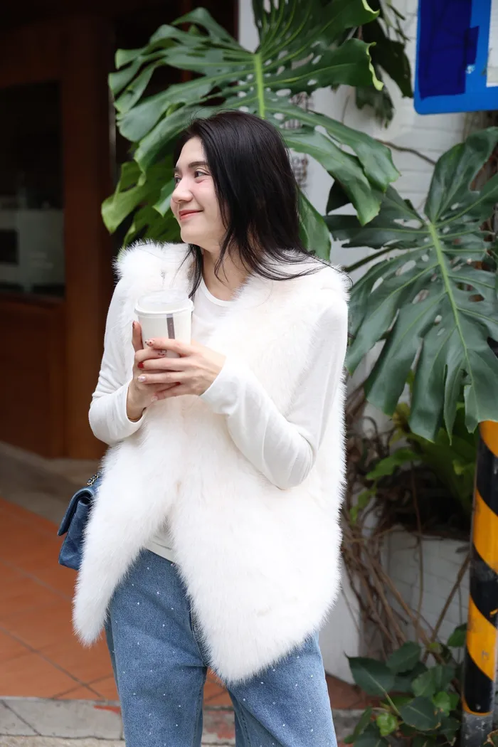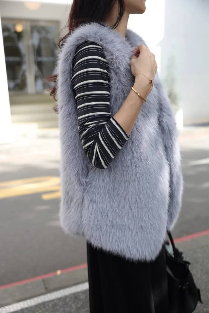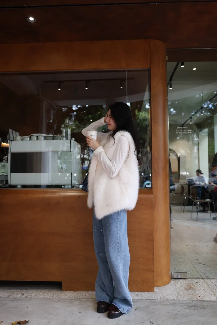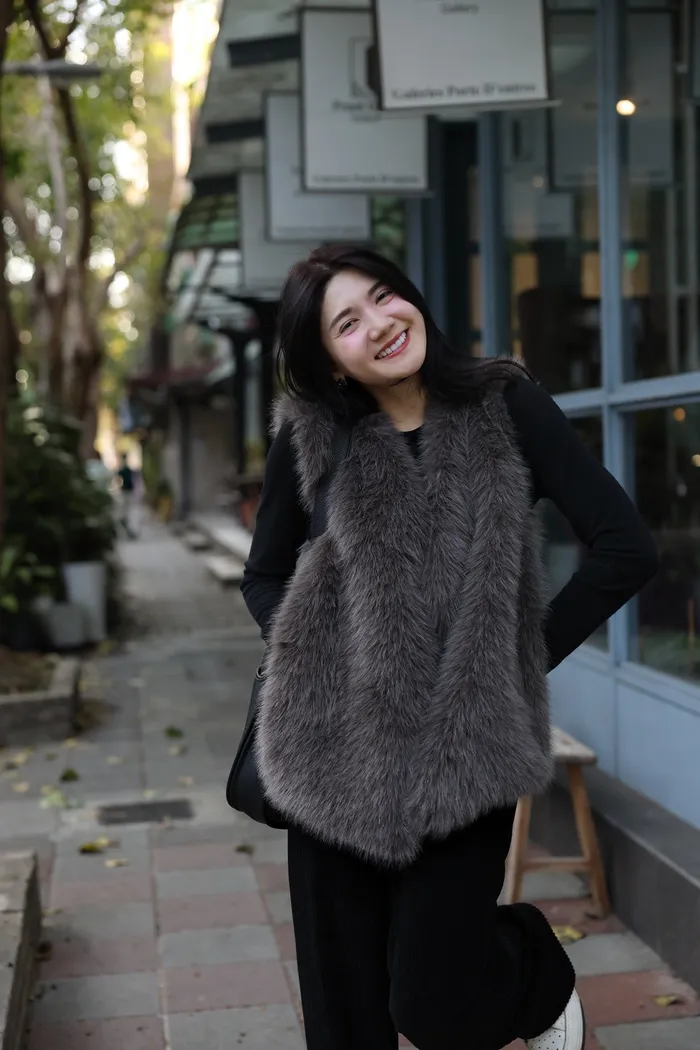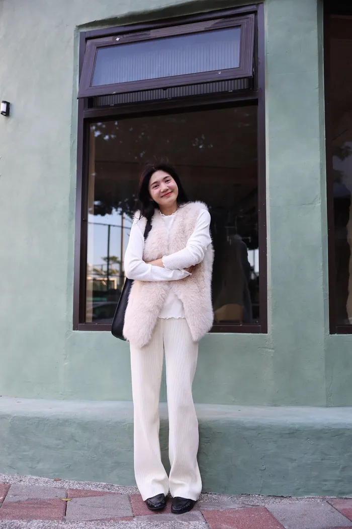 DL02 低調貴婦閃亮毛毛口袋背心(米白/灰/咖/杏)