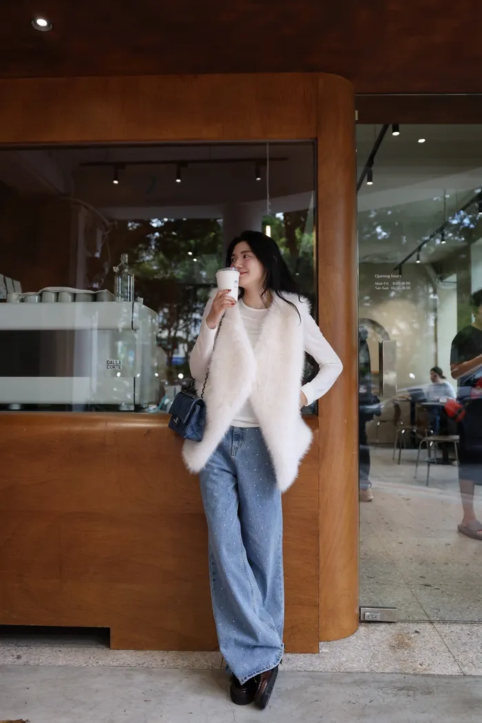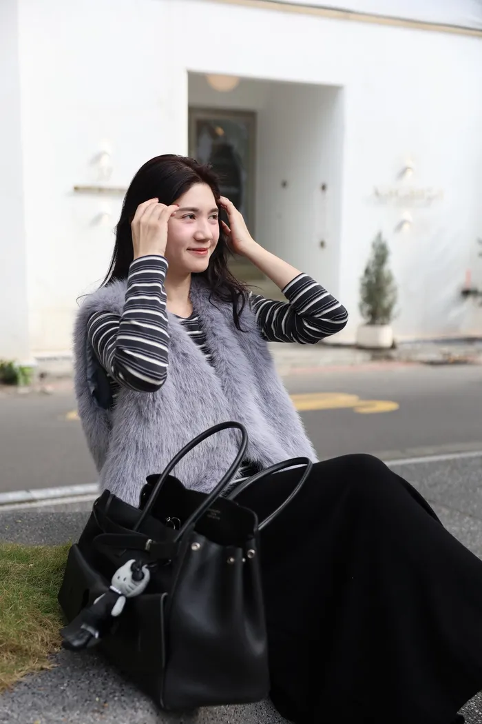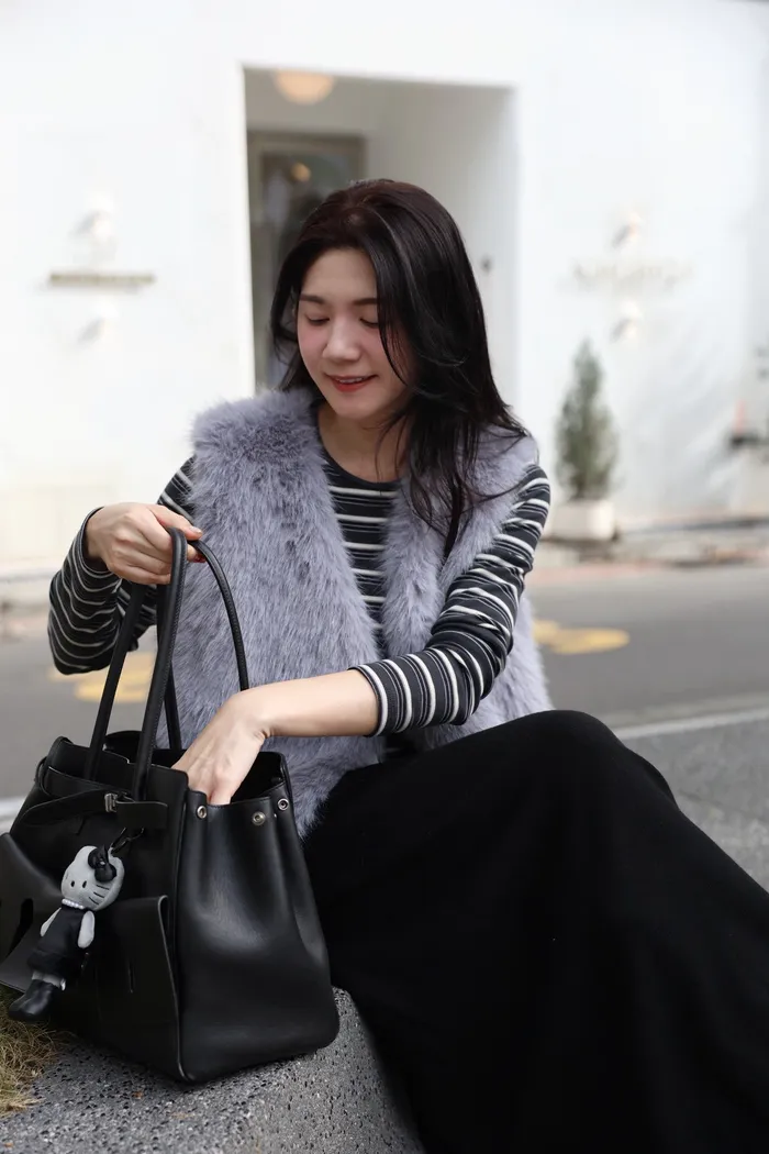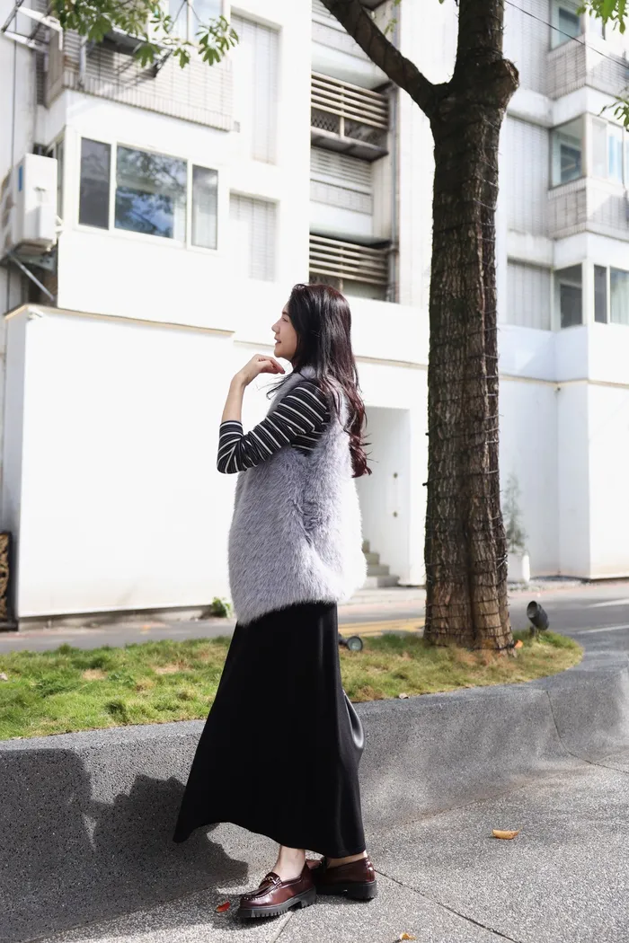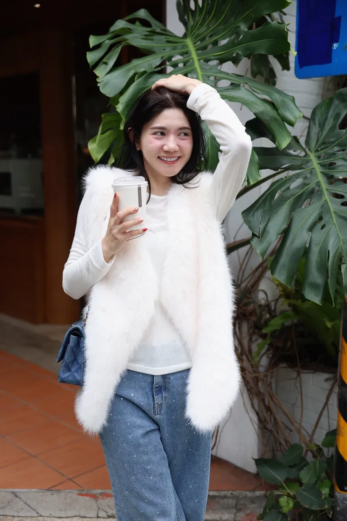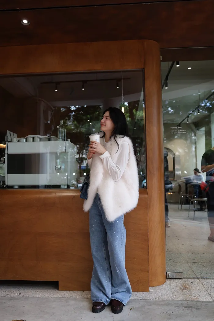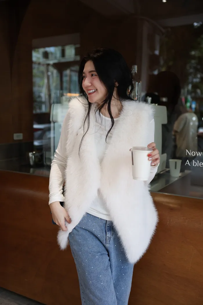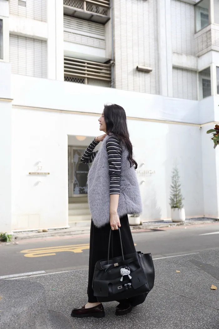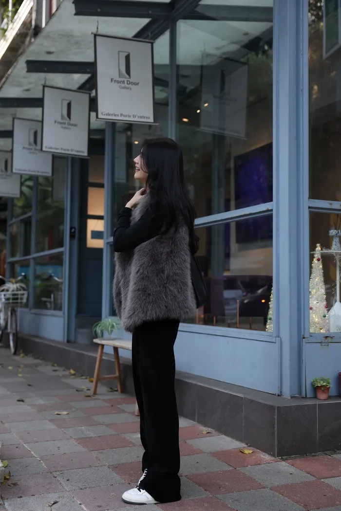DL02 低調貴婦閃亮毛毛口袋背心(米白/灰/咖/杏)