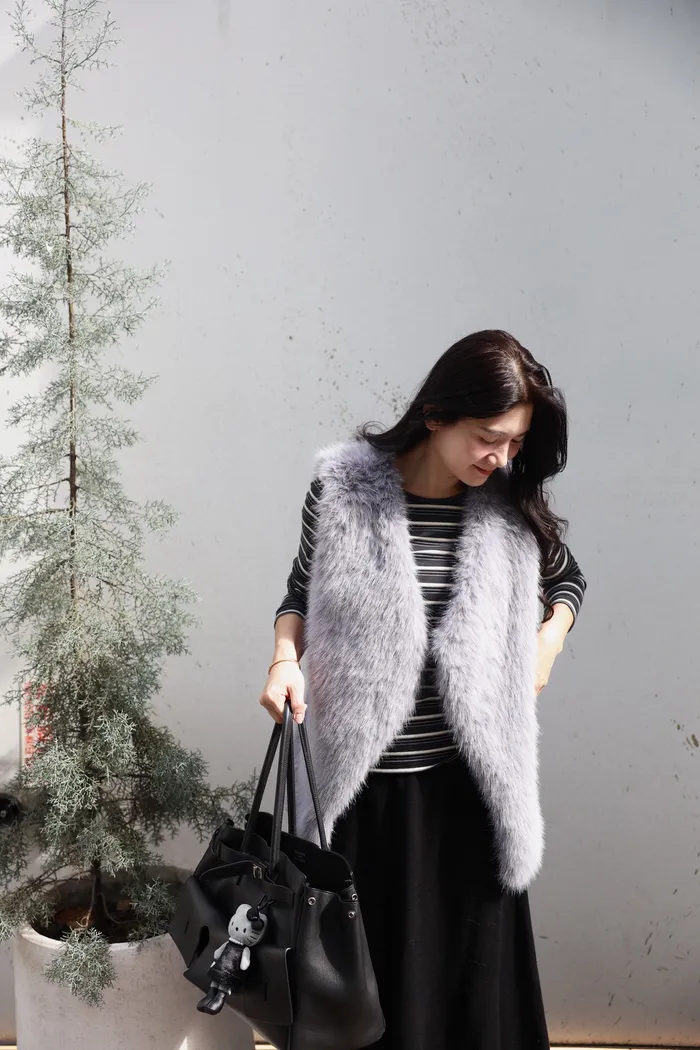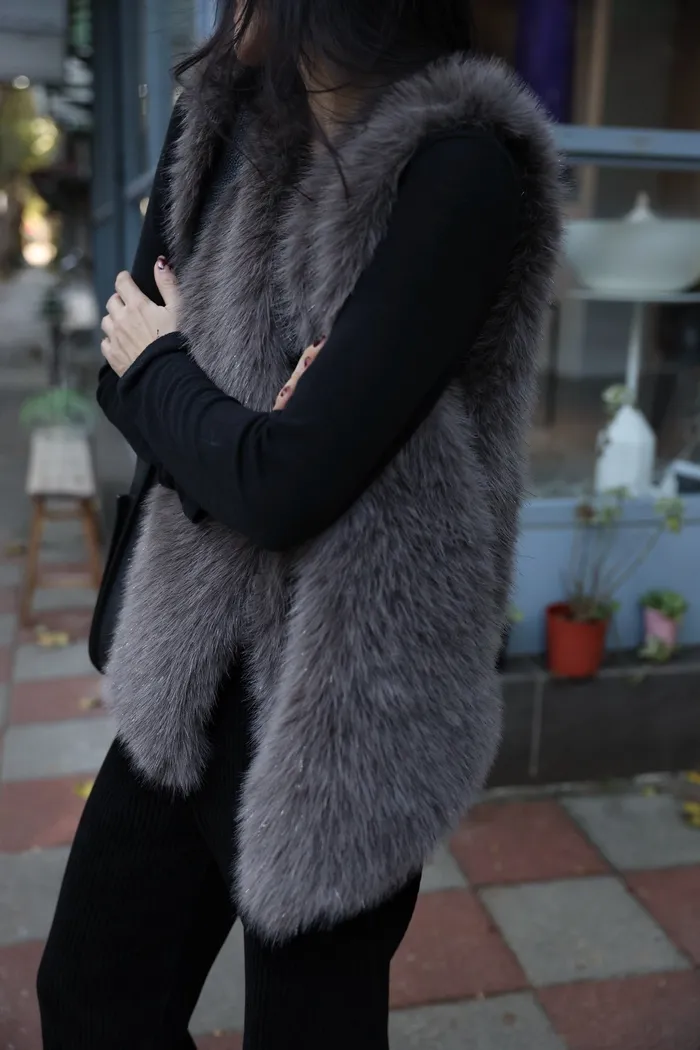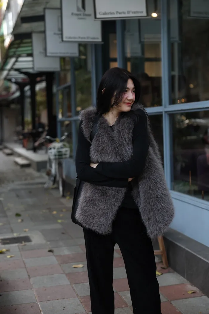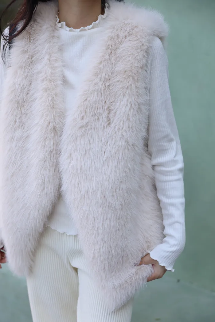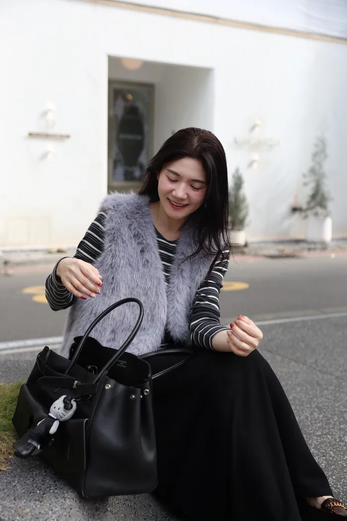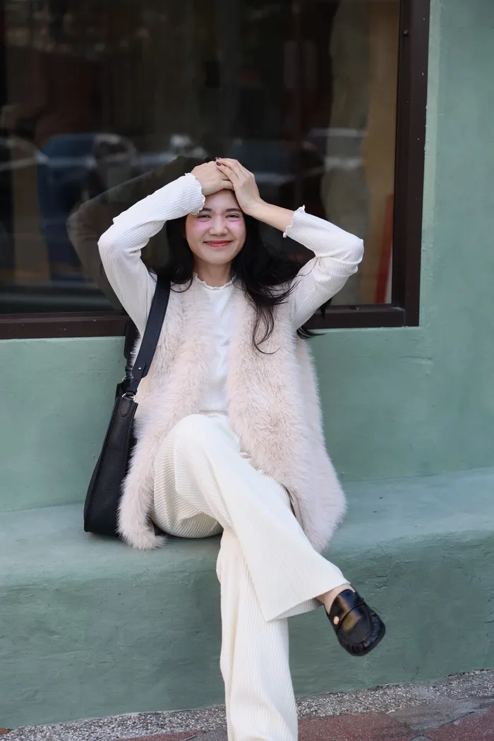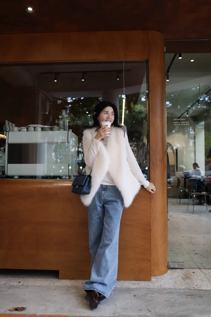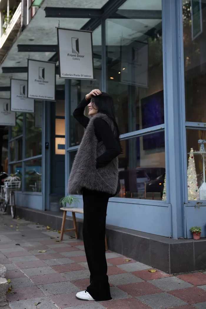 DL02 低調貴婦閃亮毛毛口袋背心(米白/灰/咖/杏)