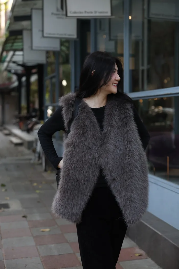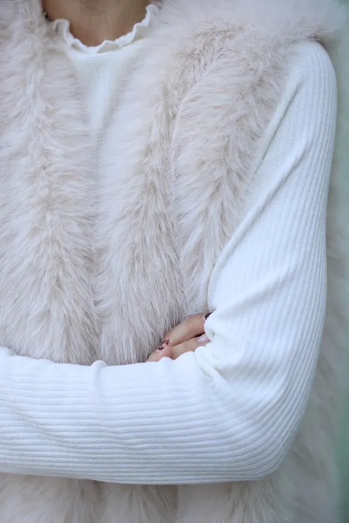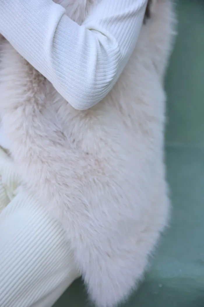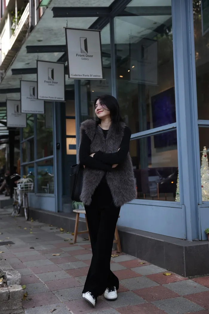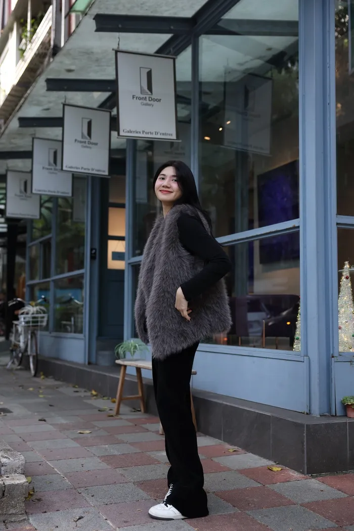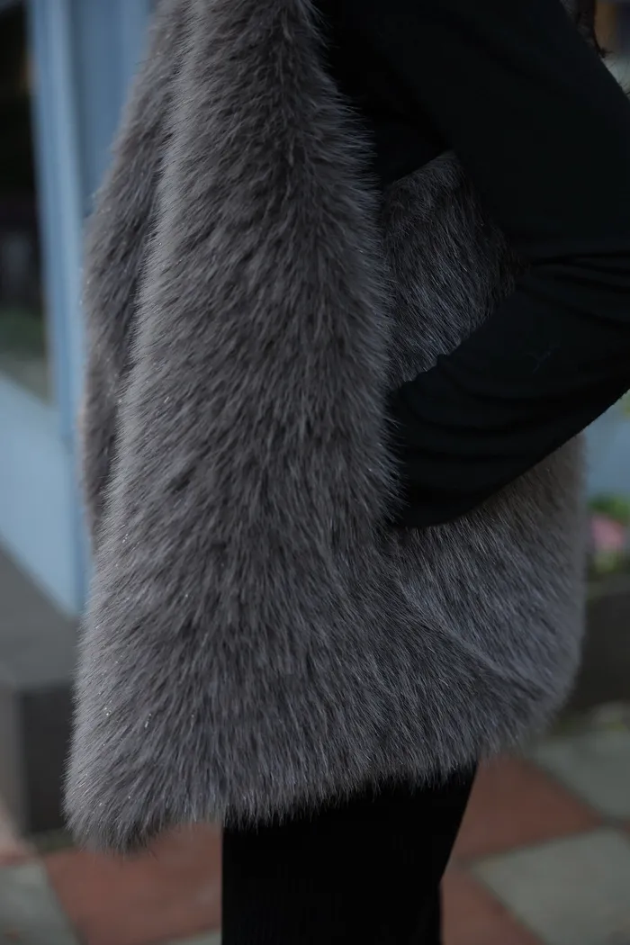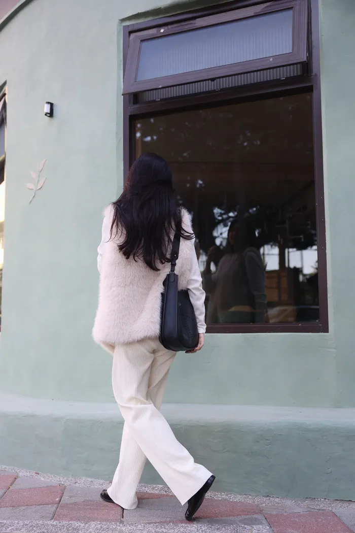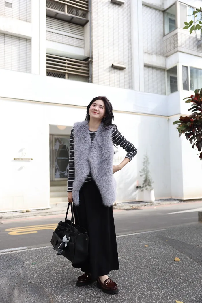 DL02 低調貴婦閃亮毛毛口袋背心(米白/灰/咖/杏)