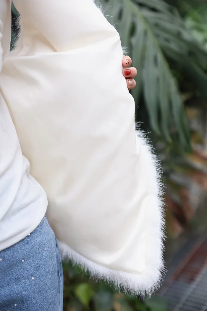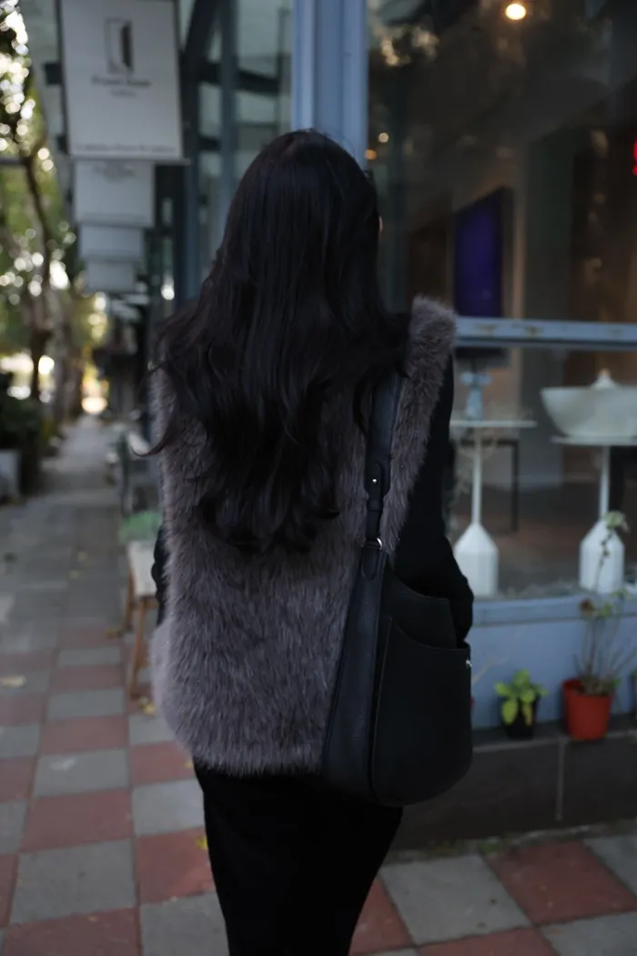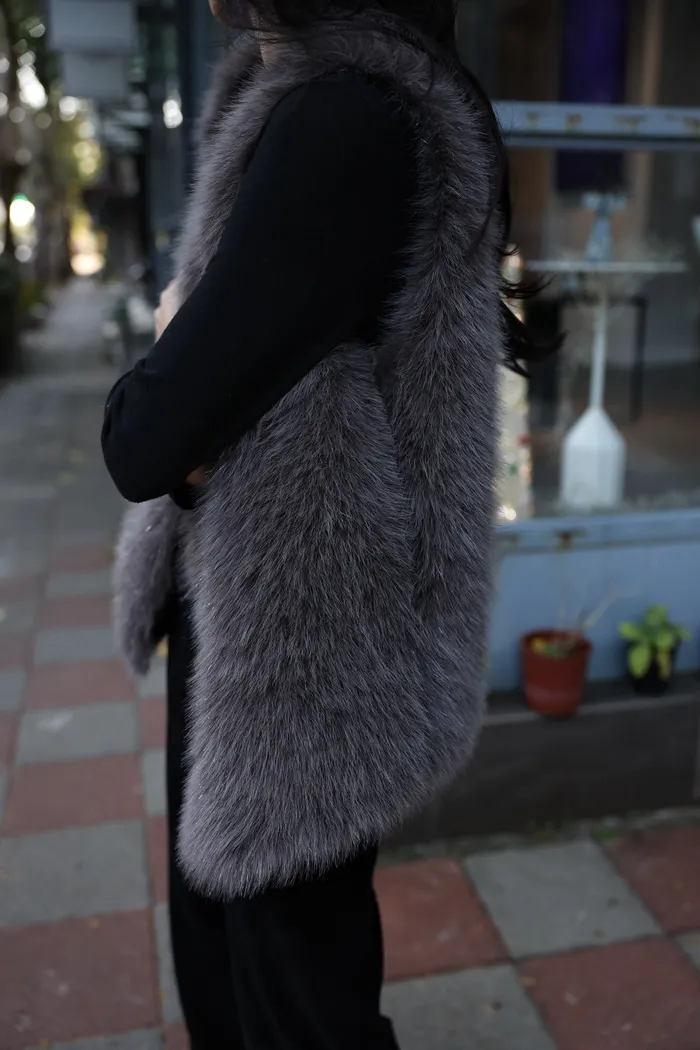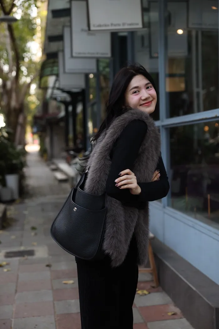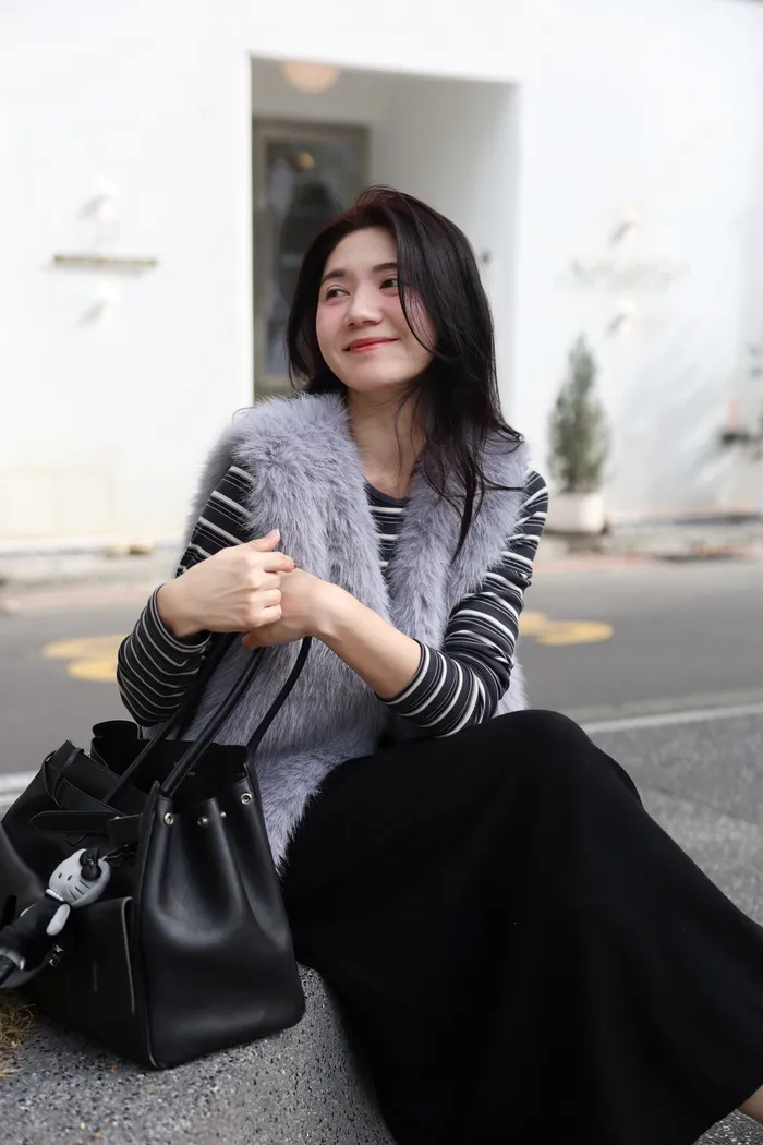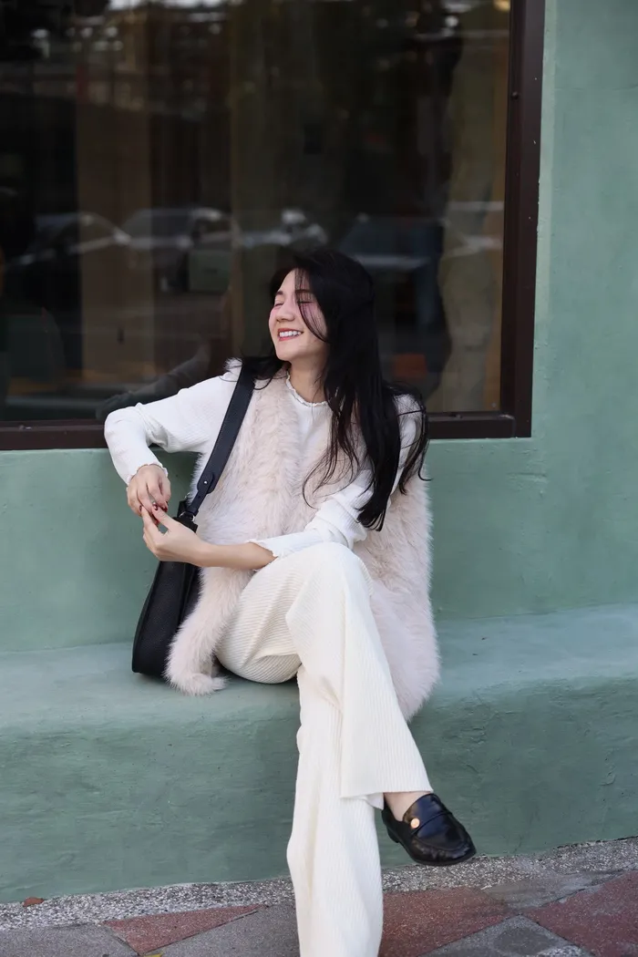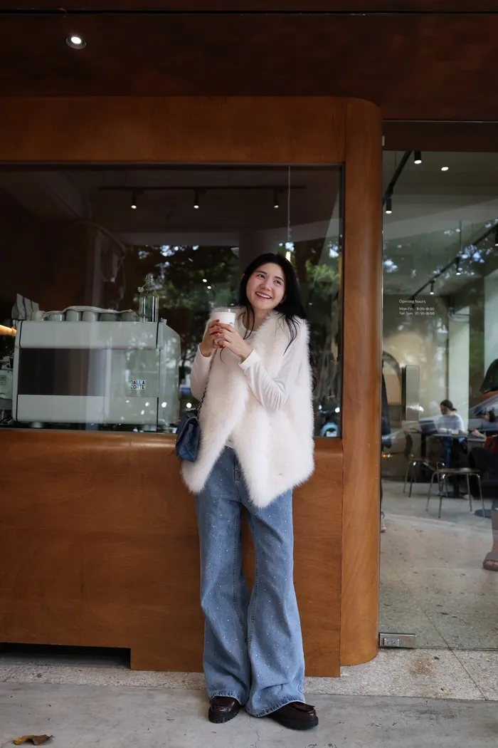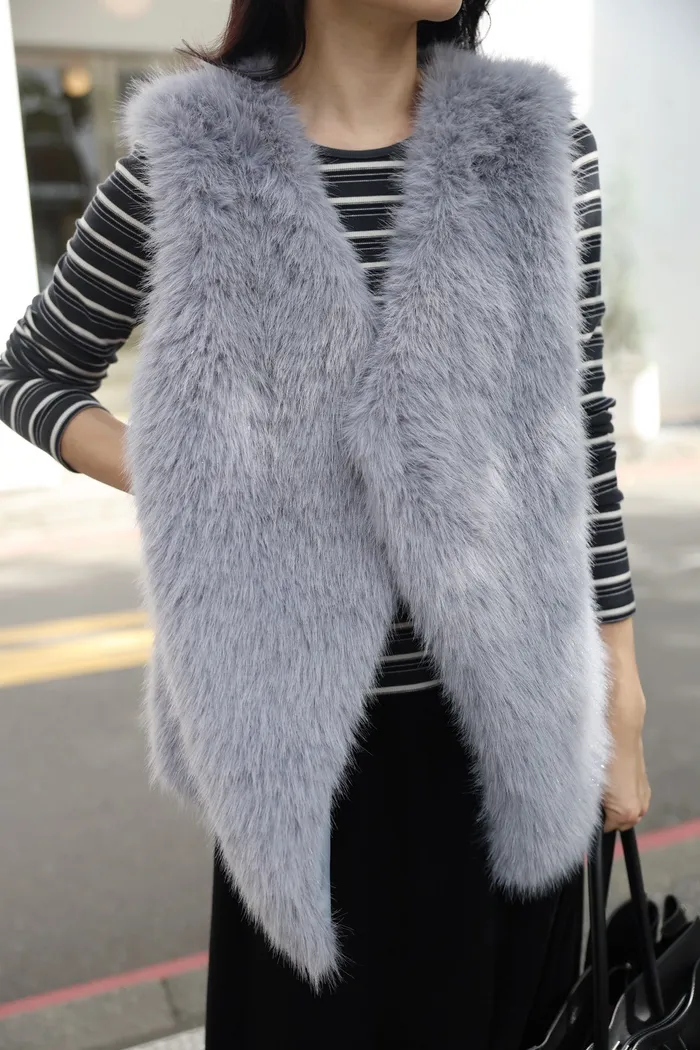 DL02 低調貴婦閃亮毛毛口袋背心(米白/灰/咖/杏)