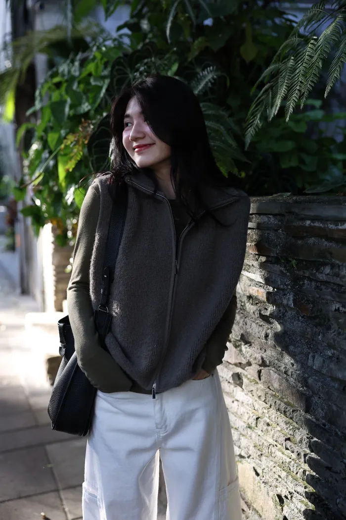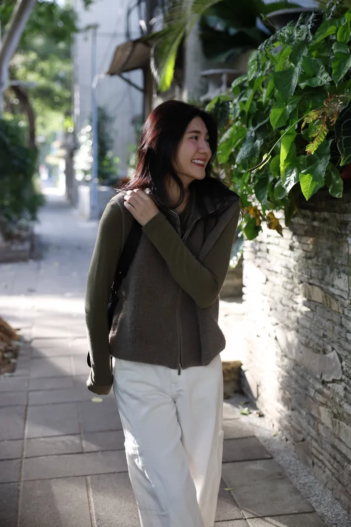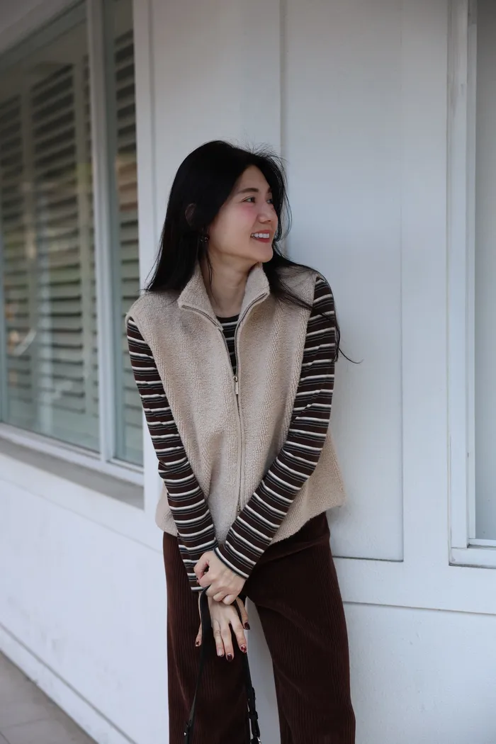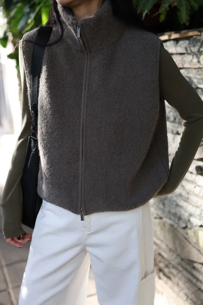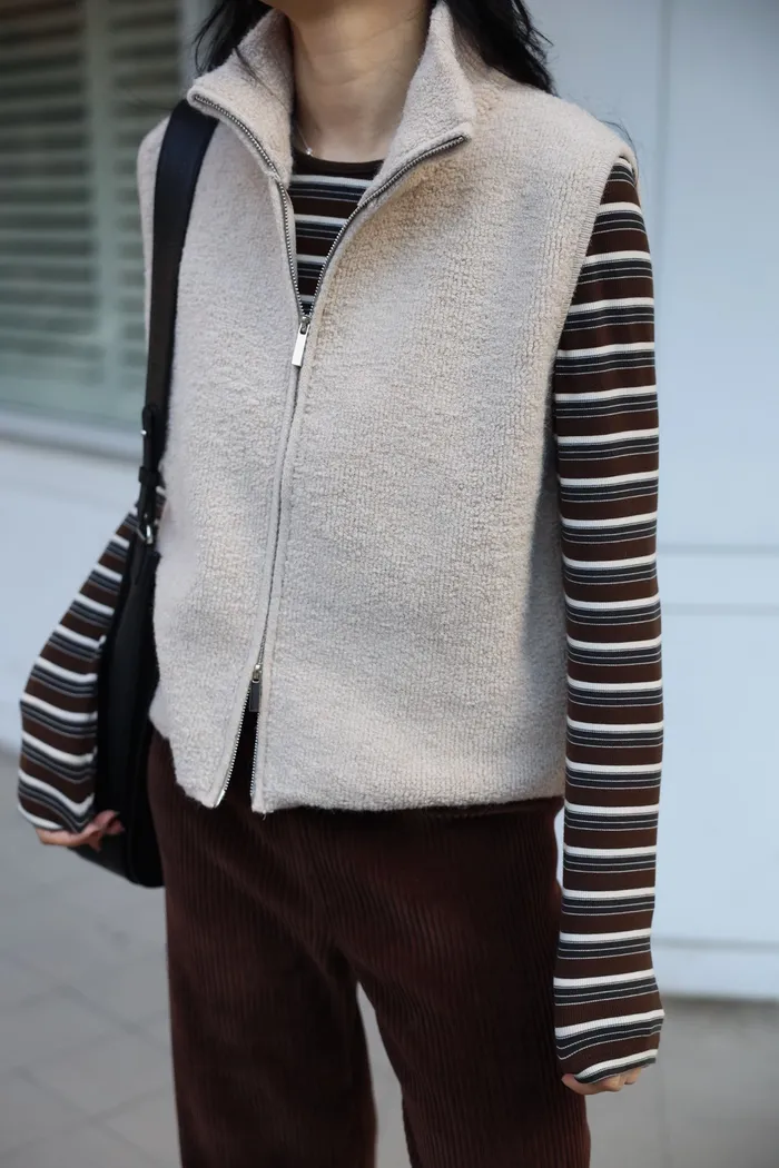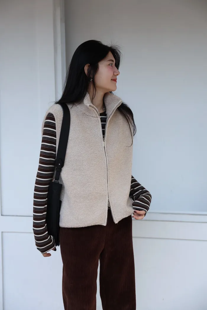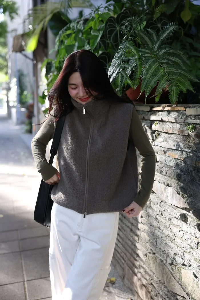 DL03 羊毛立領雙拉鏈針織背心(米白/杏/卡其綠/墨)