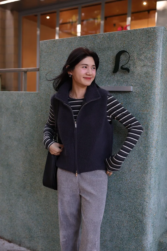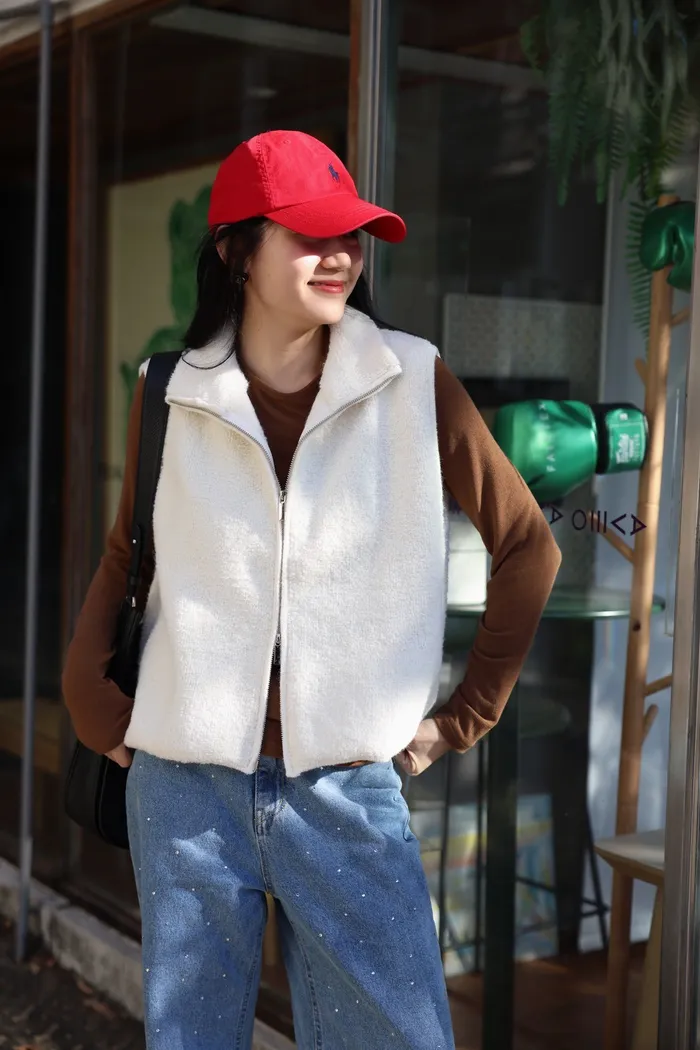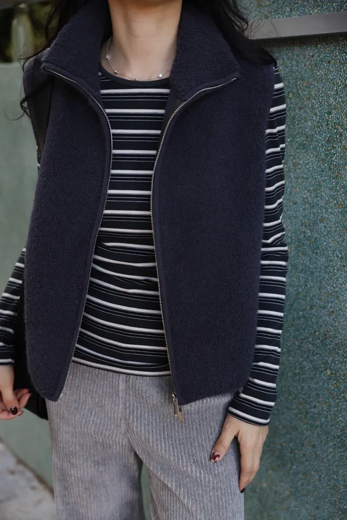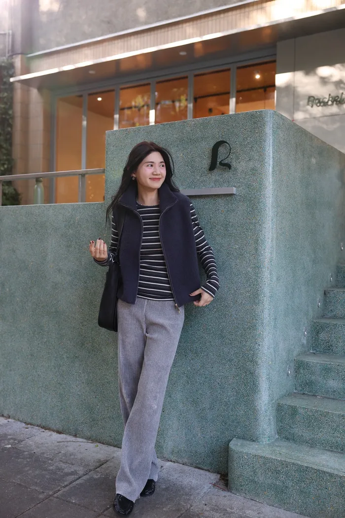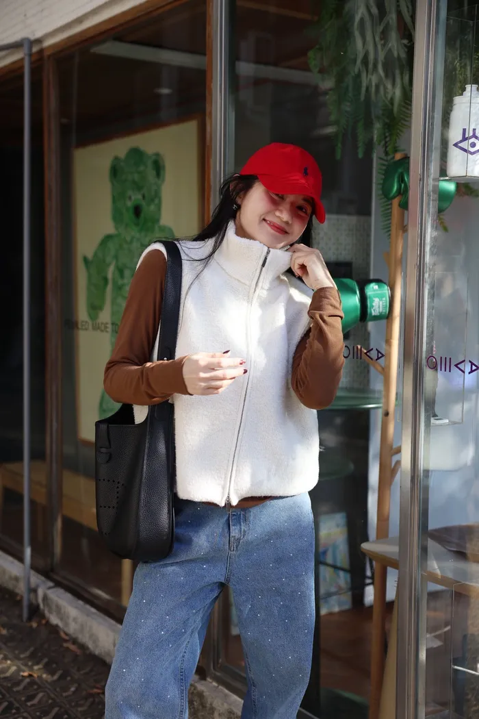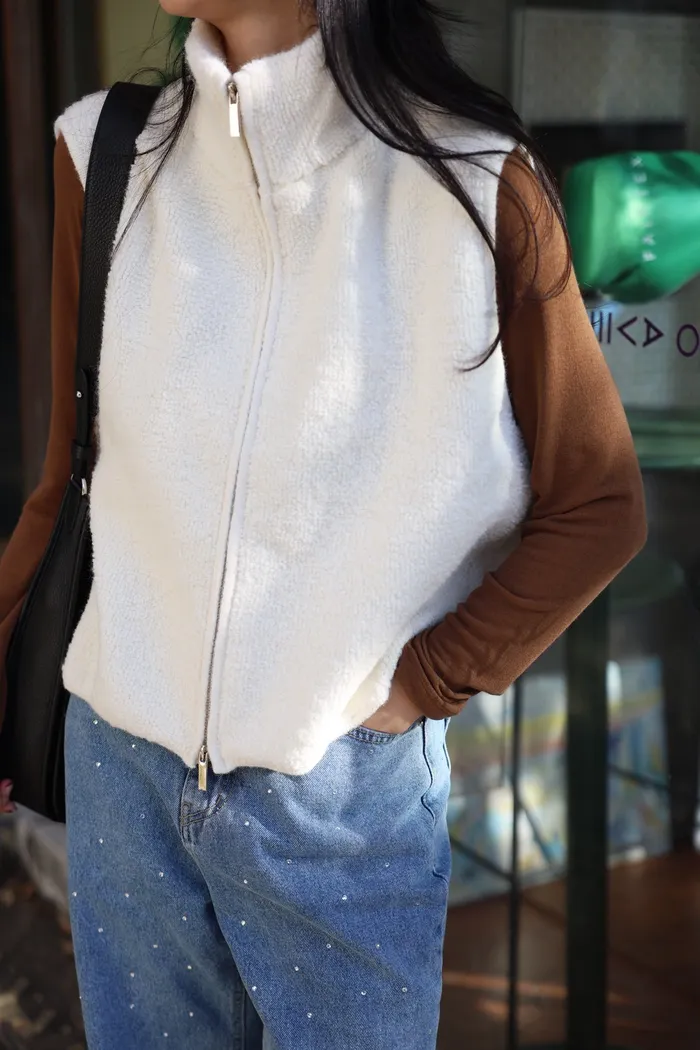 DL03 羊毛立領雙拉鏈針織背心(米白/杏/卡其綠/墨)