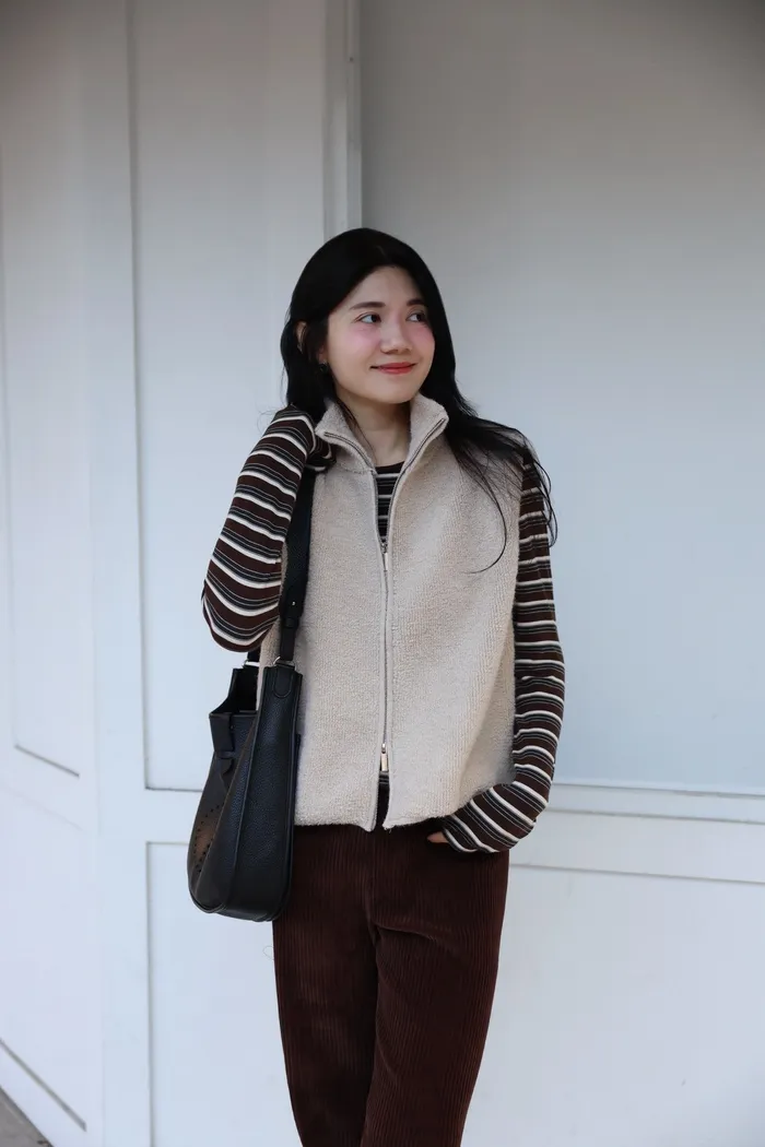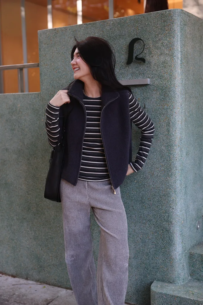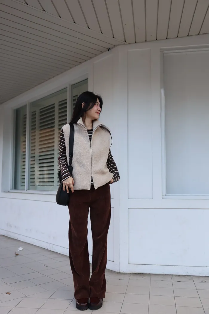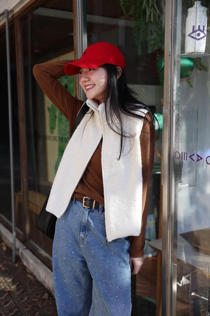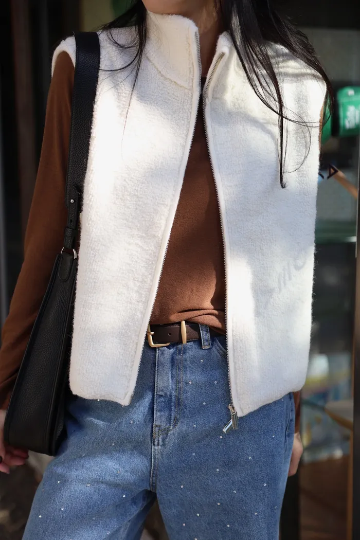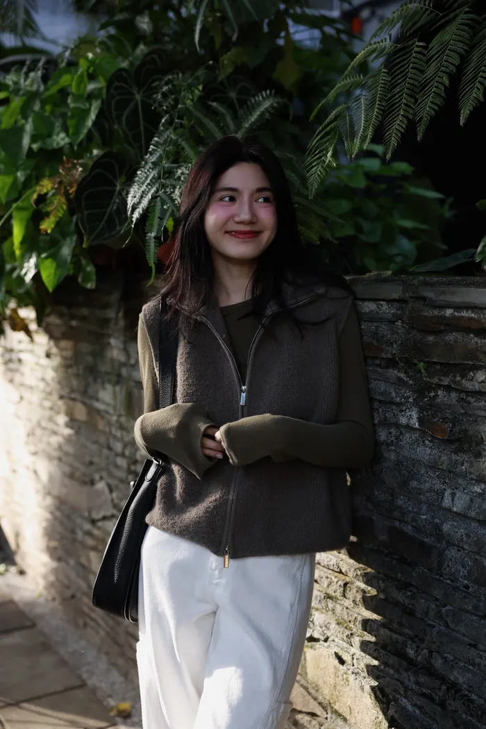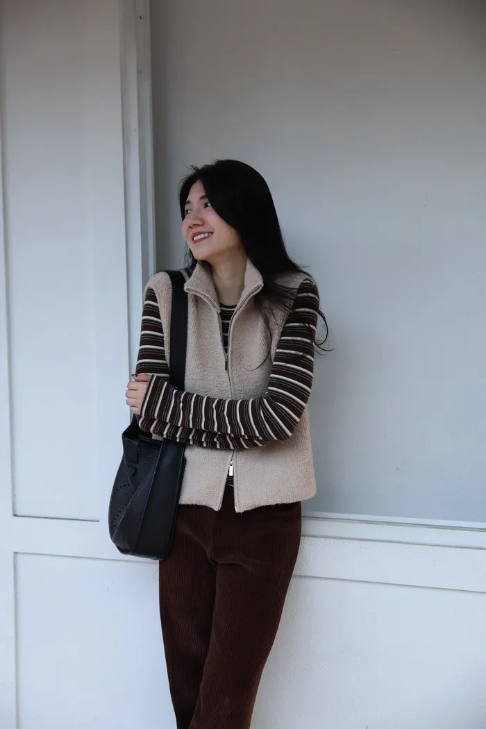 DL03 羊毛立領雙拉鏈針織背心(米白/杏/卡其綠/墨)