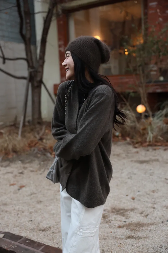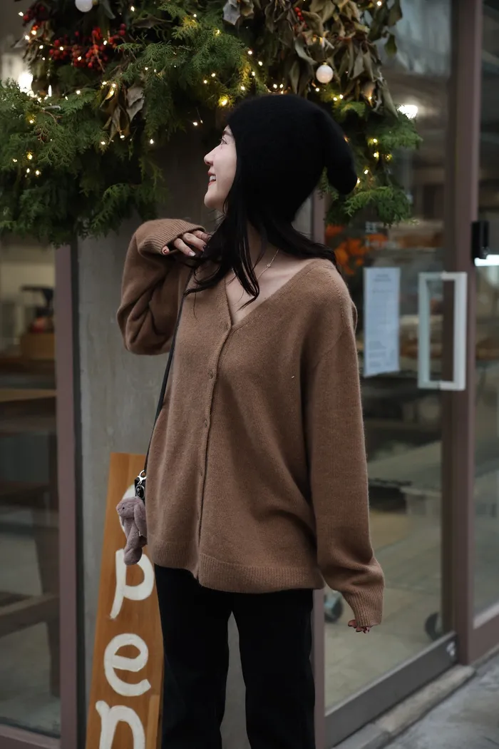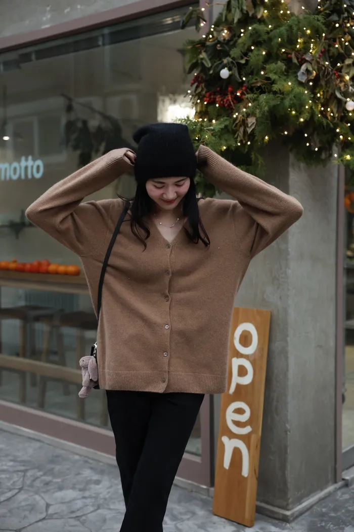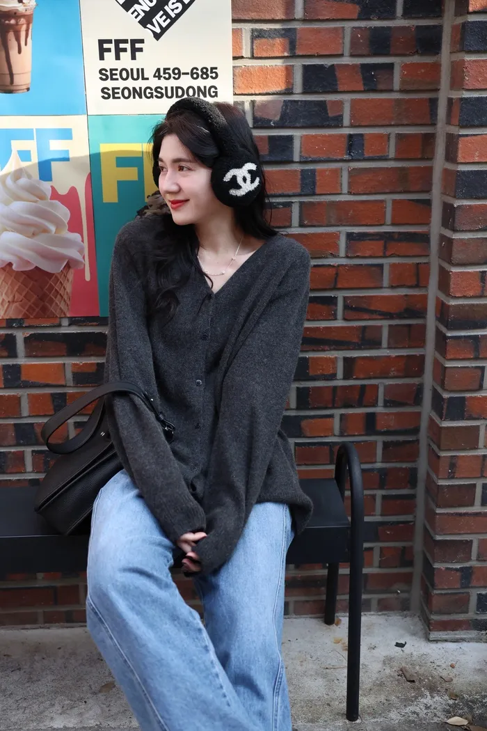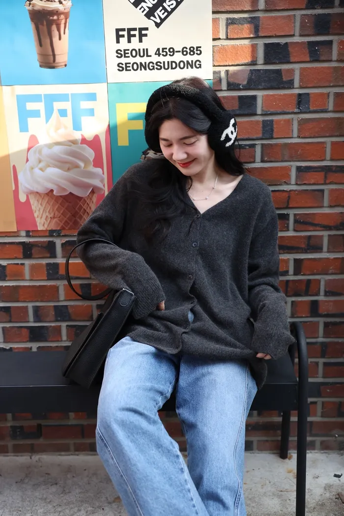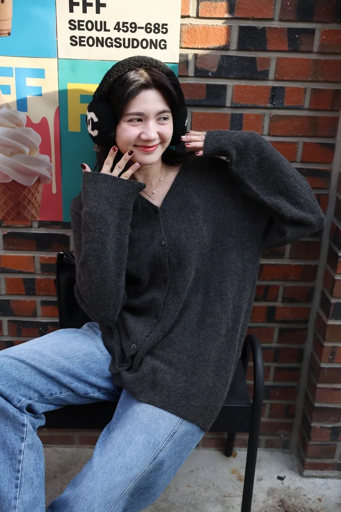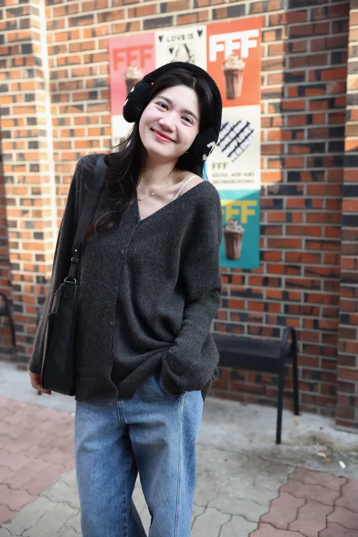DX25 親膚浣熊毛排扣針織兩穿罩衫(深灰/深藍/駝/咖)