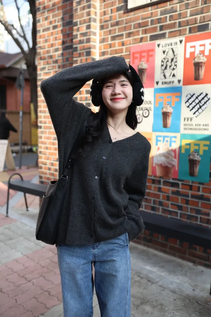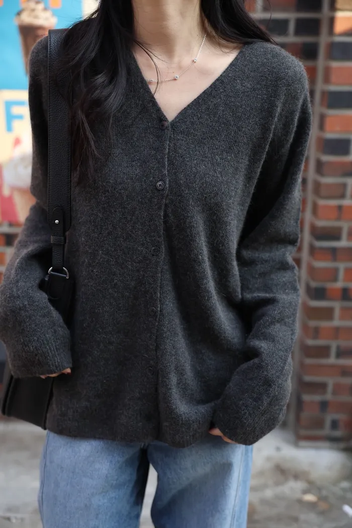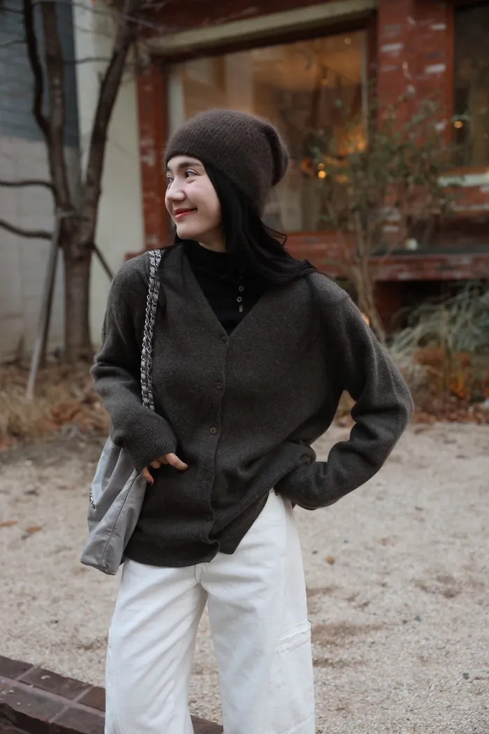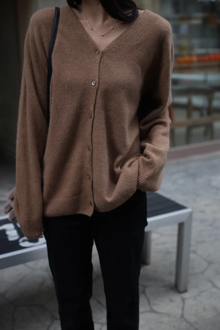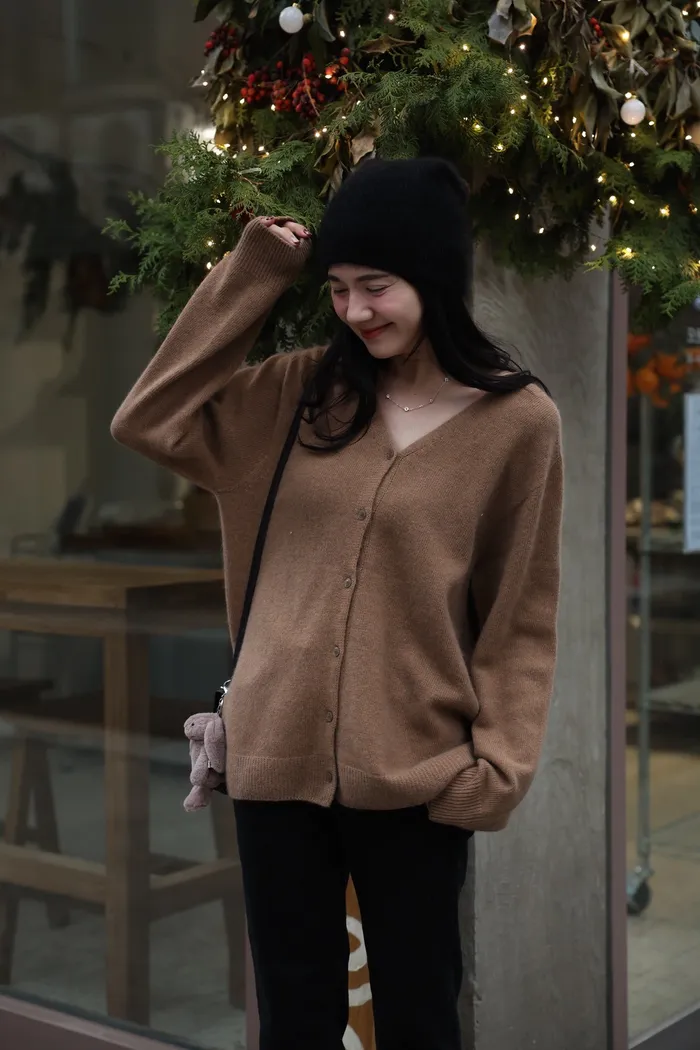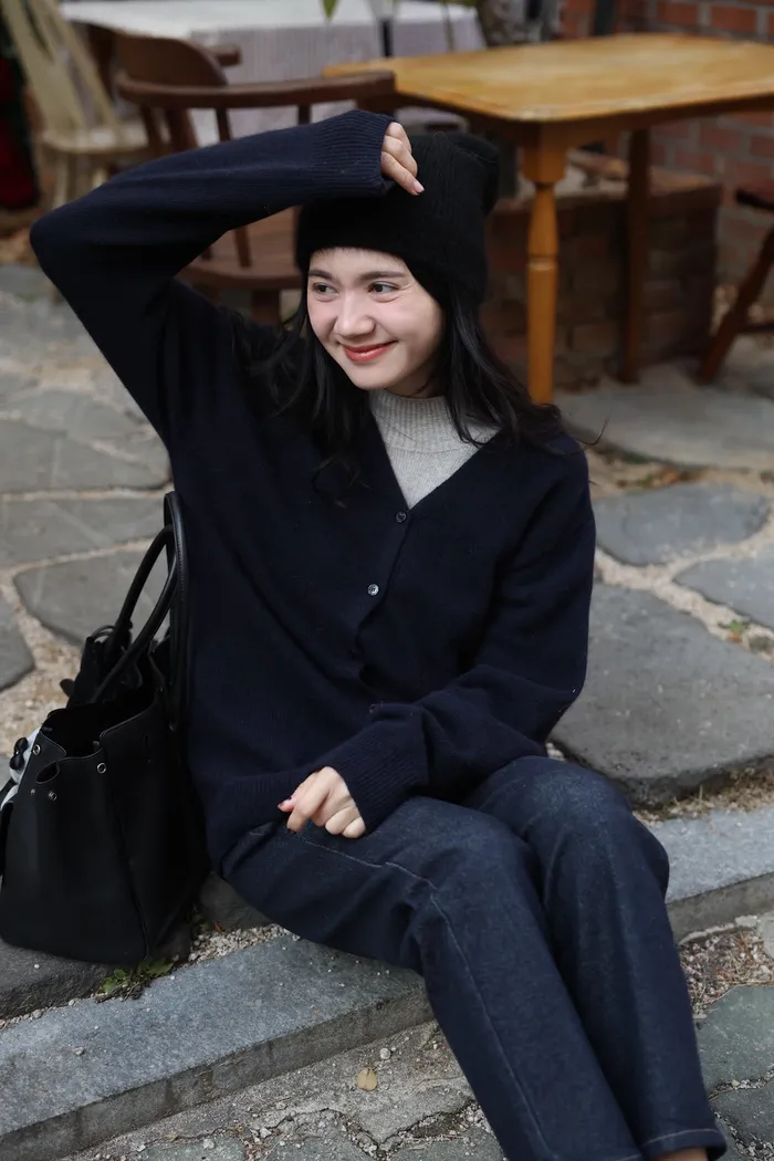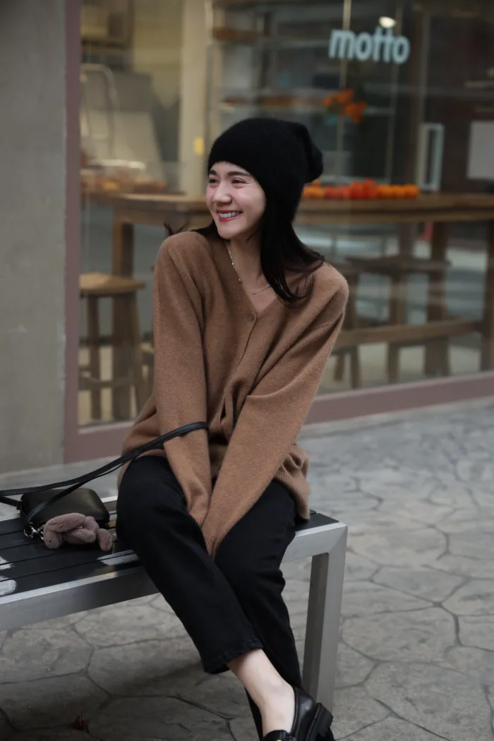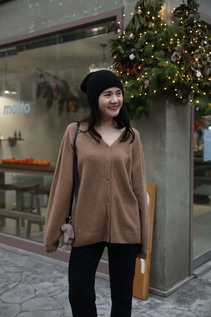 DX25 親膚浣熊毛排扣針織兩穿罩衫(深灰/深藍/駝/咖)