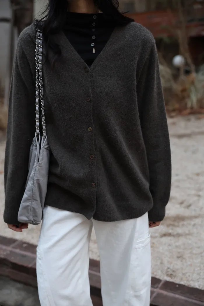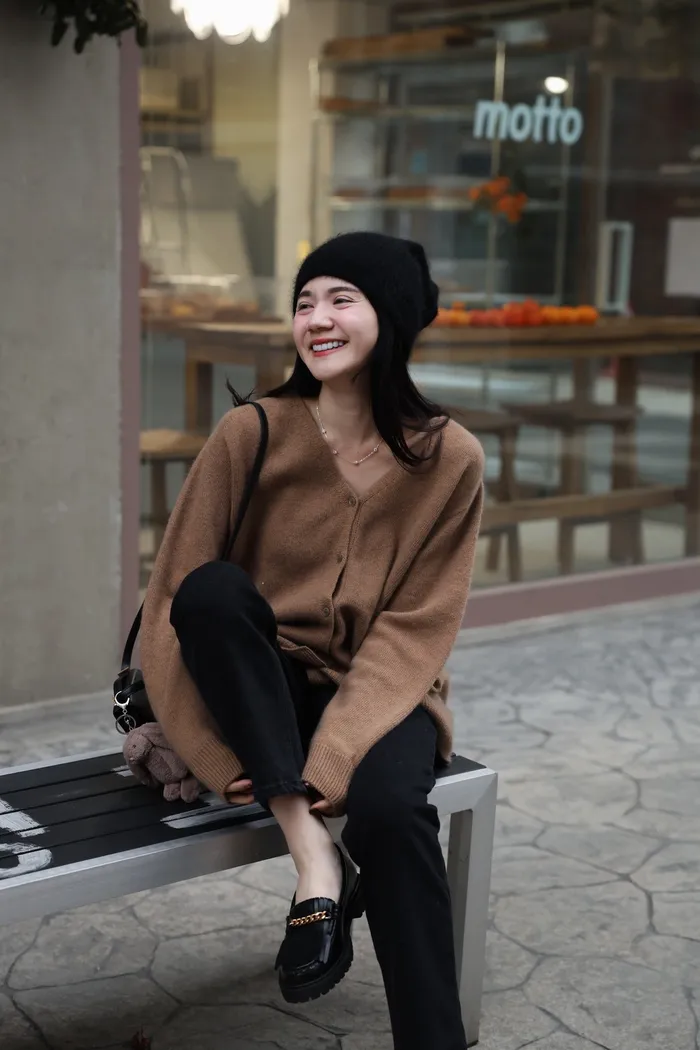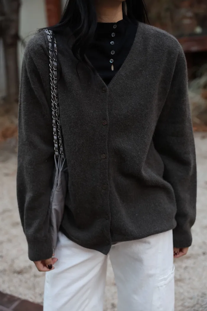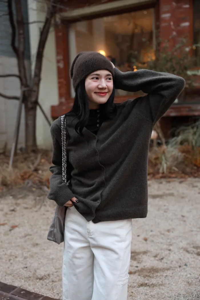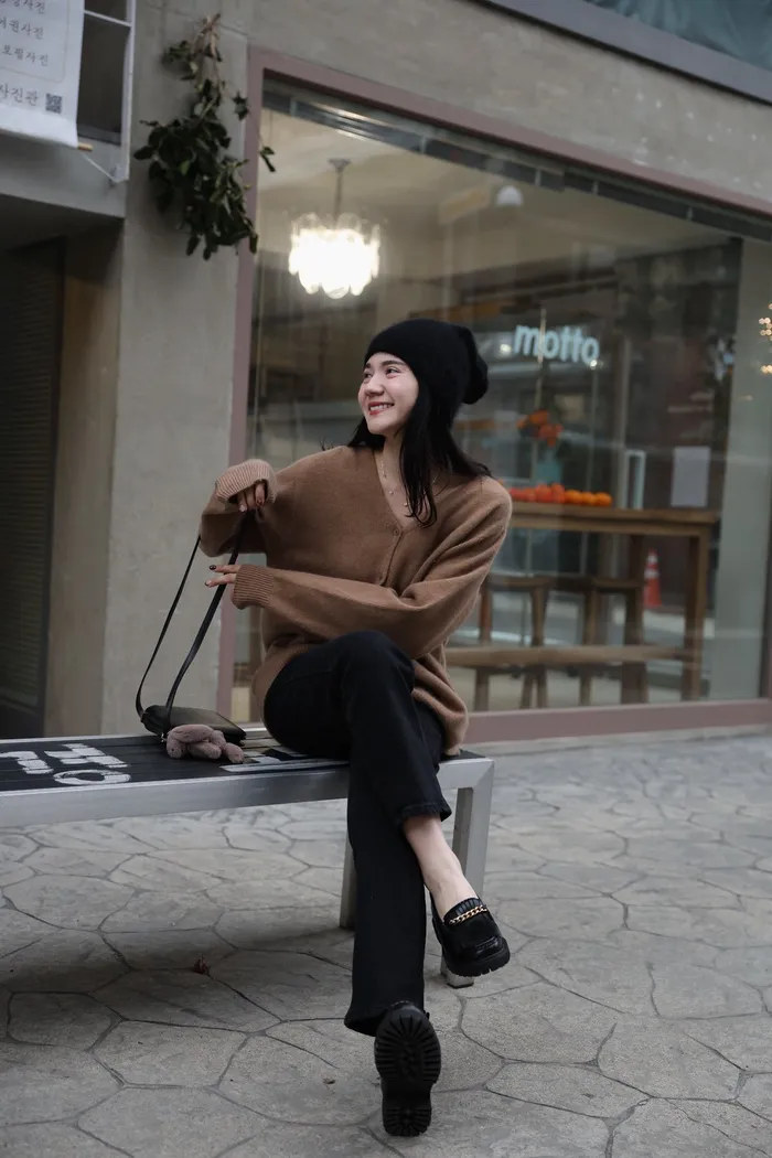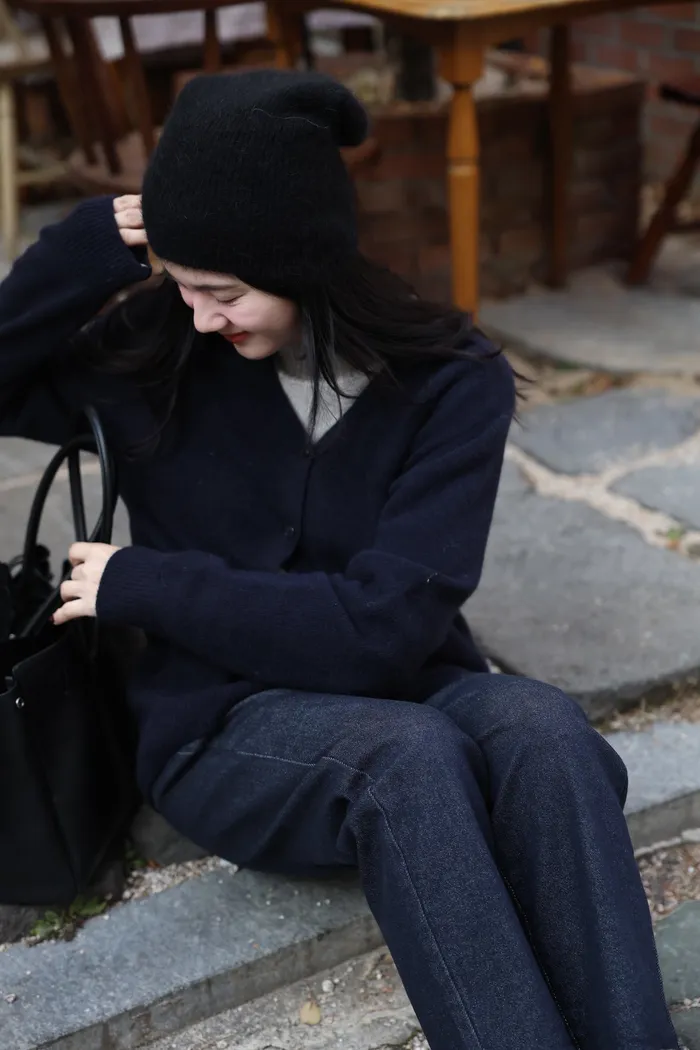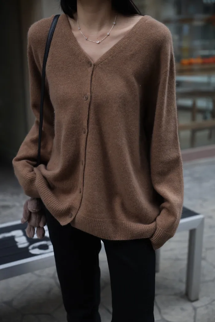 DX25 親膚浣熊毛排扣針織兩穿罩衫(深灰/深藍/駝/咖)