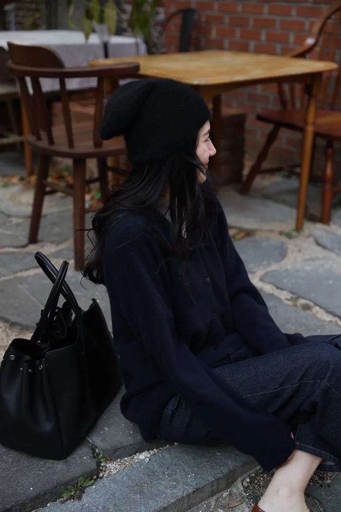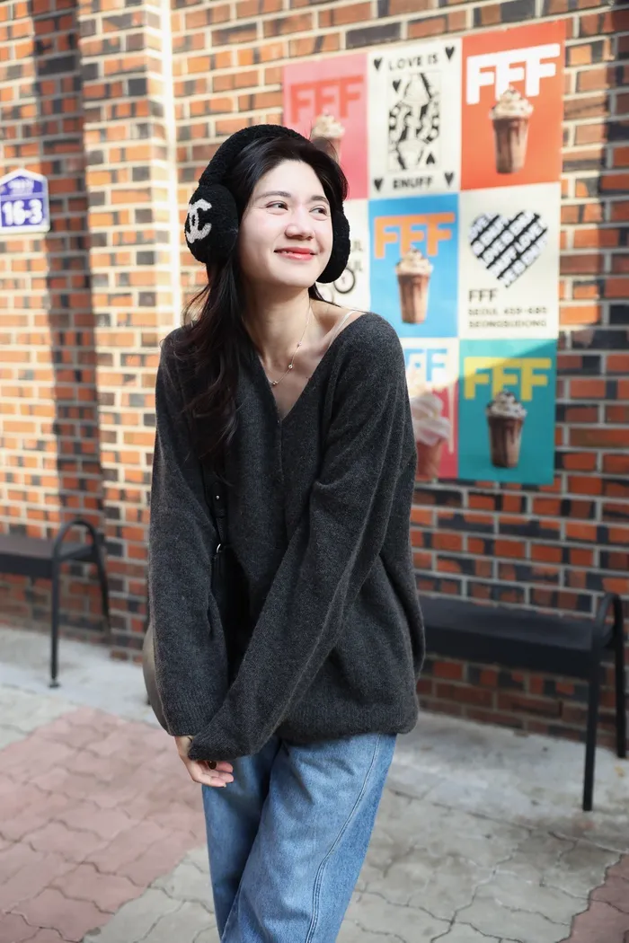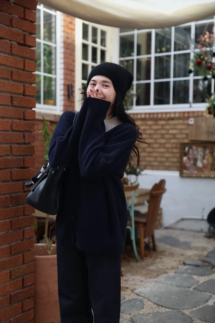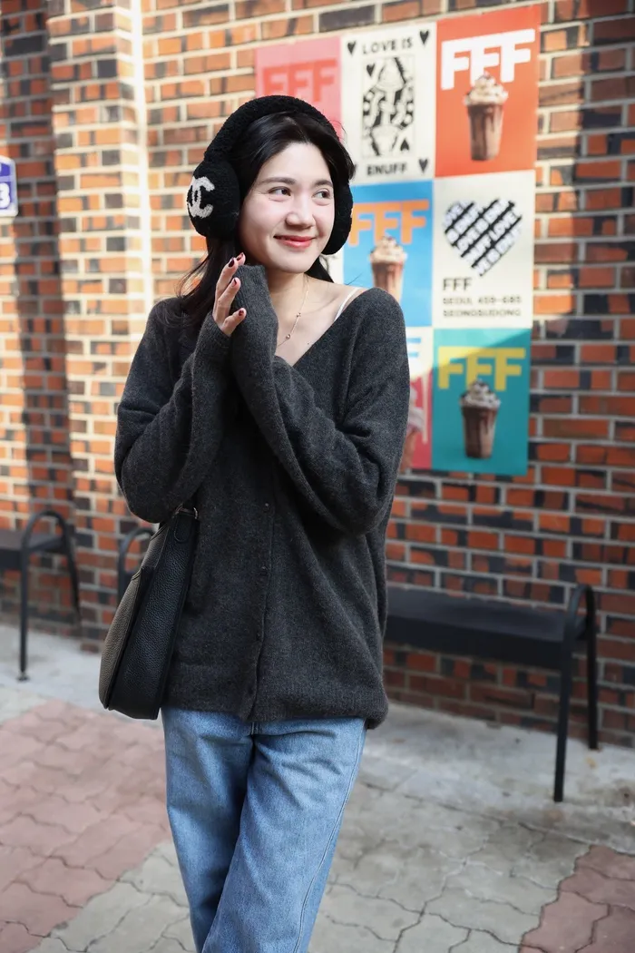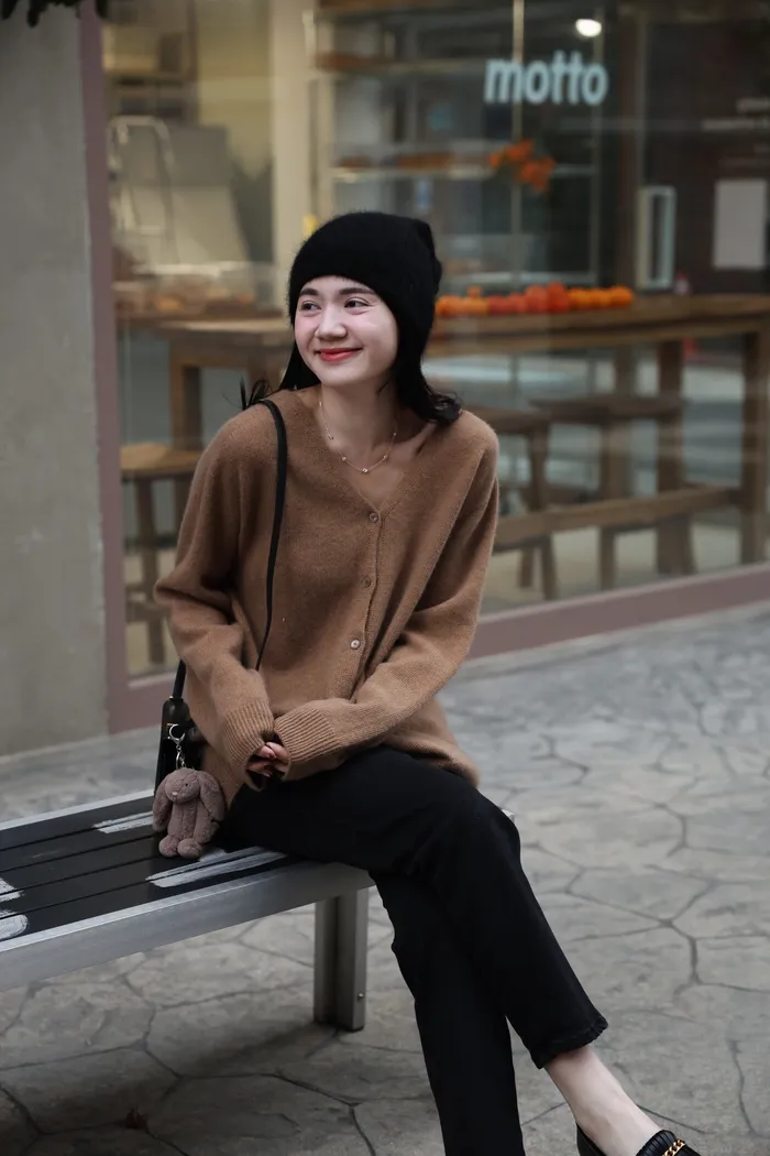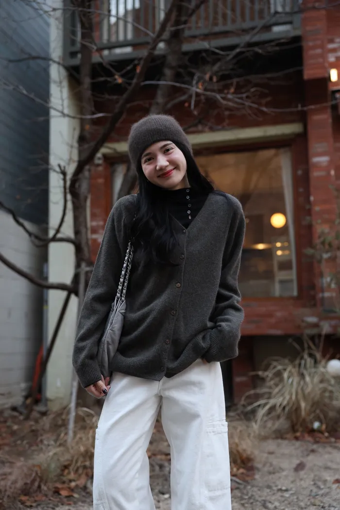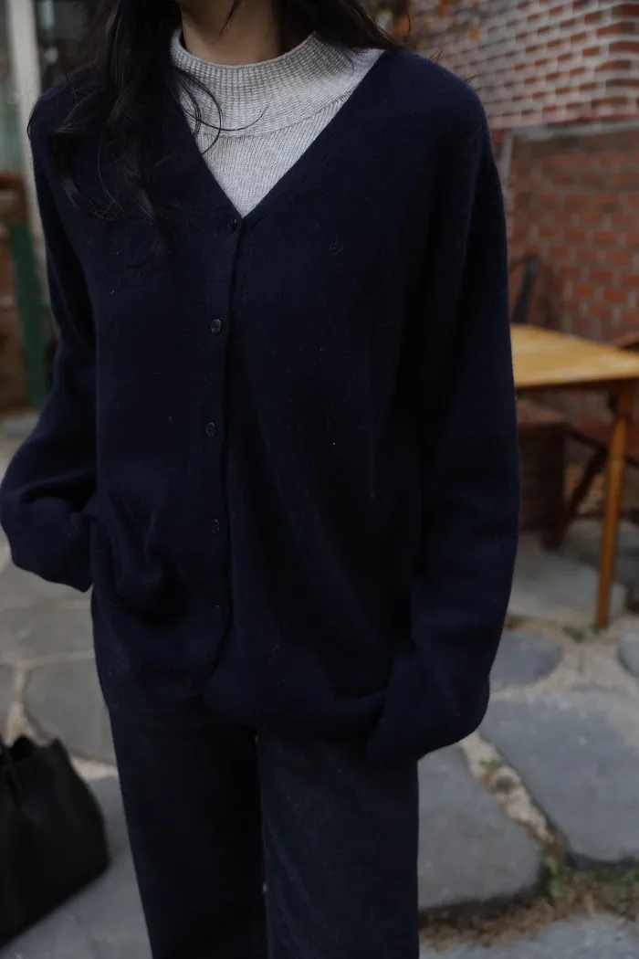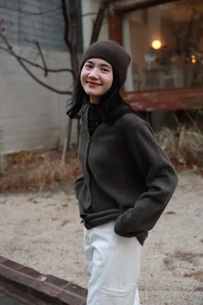 DX25 親膚浣熊毛排扣針織兩穿罩衫(深灰/深藍/駝/咖)