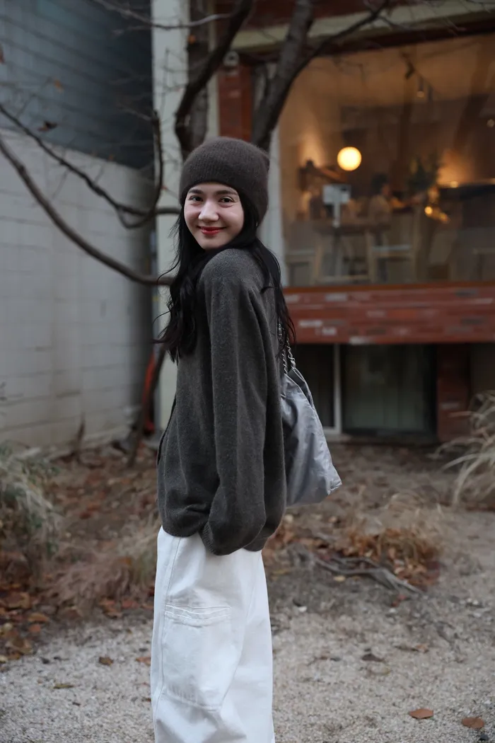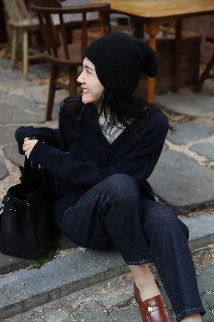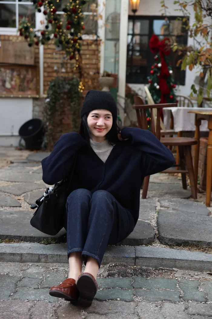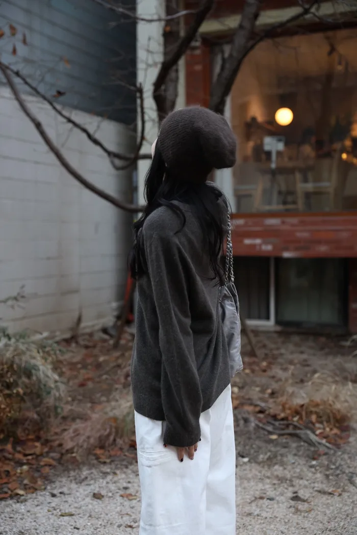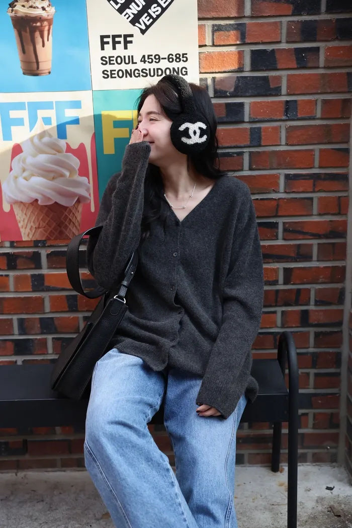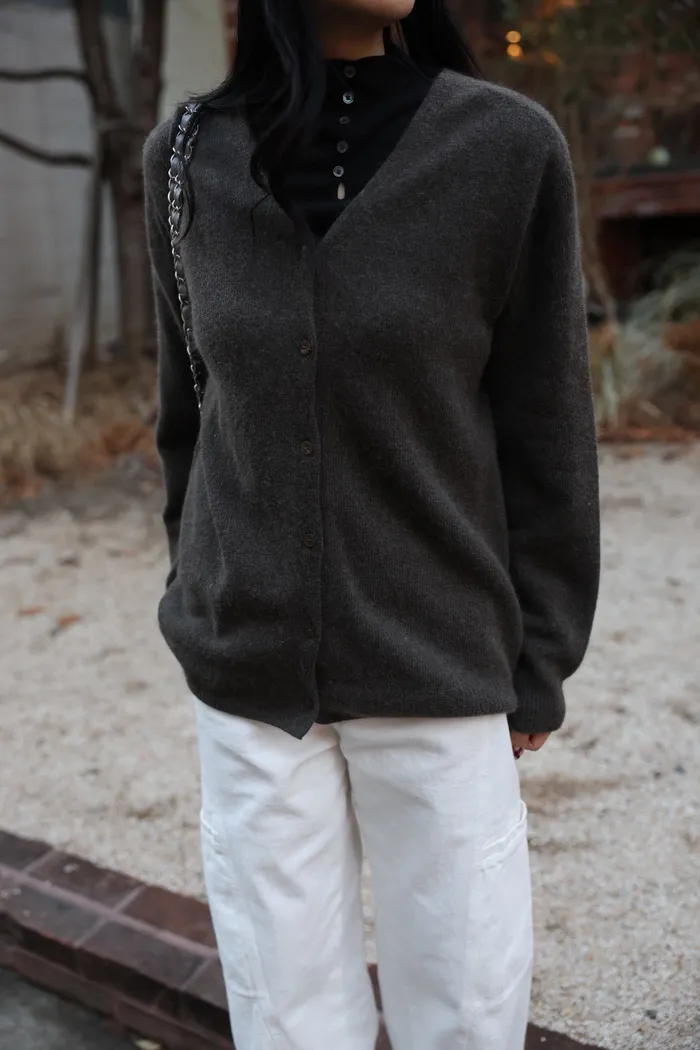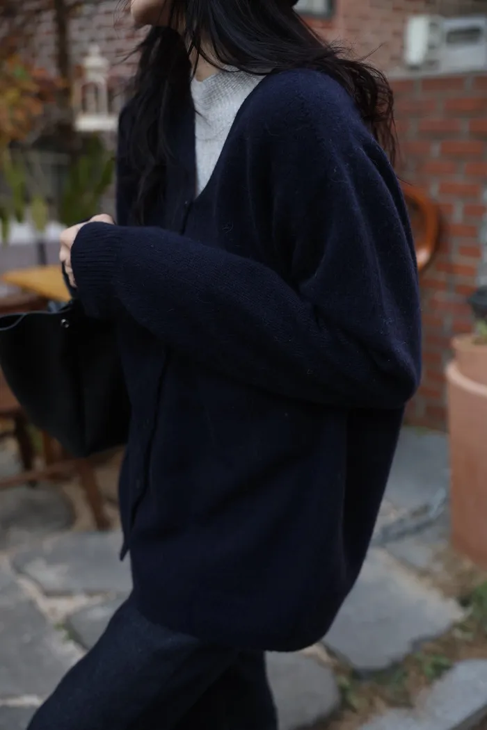 DX25 親膚浣熊毛排扣針織兩穿罩衫(深灰/深藍/駝/咖)