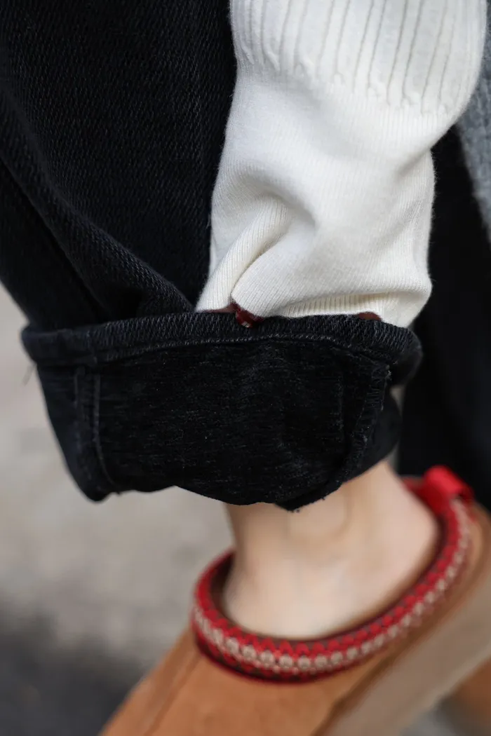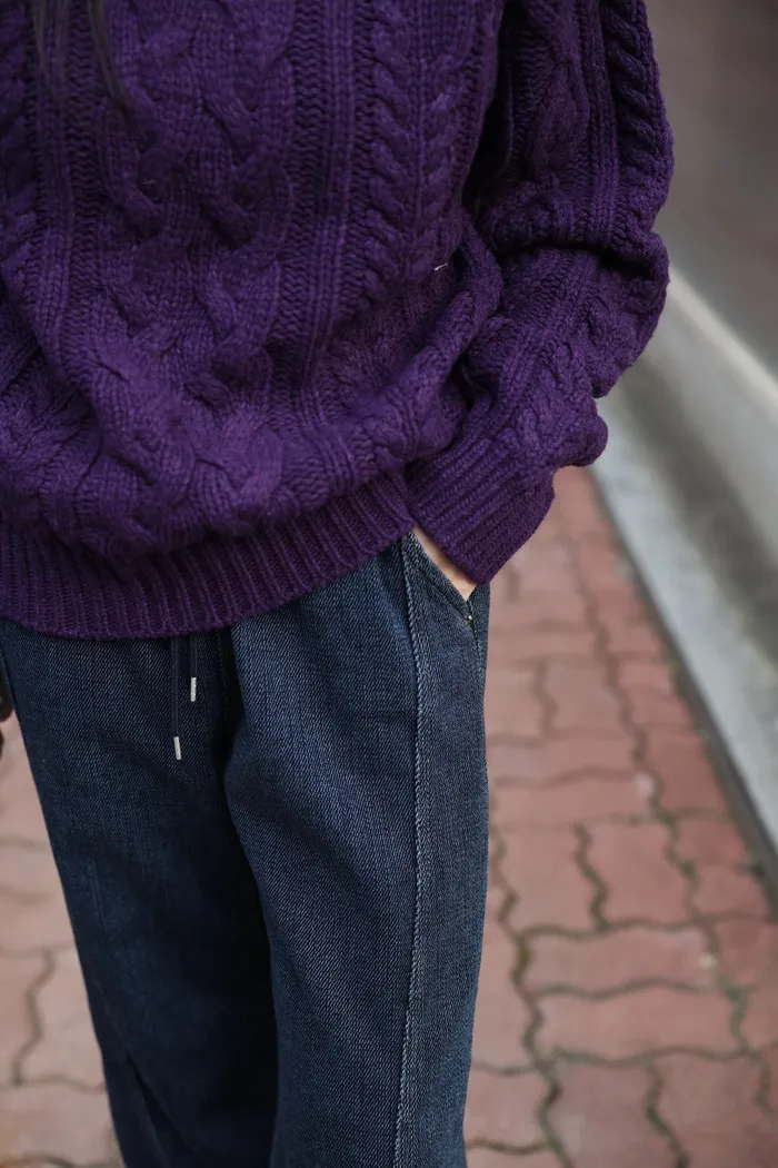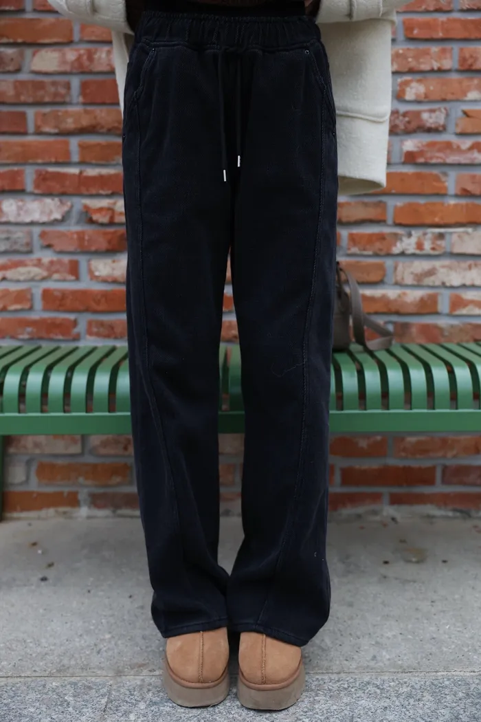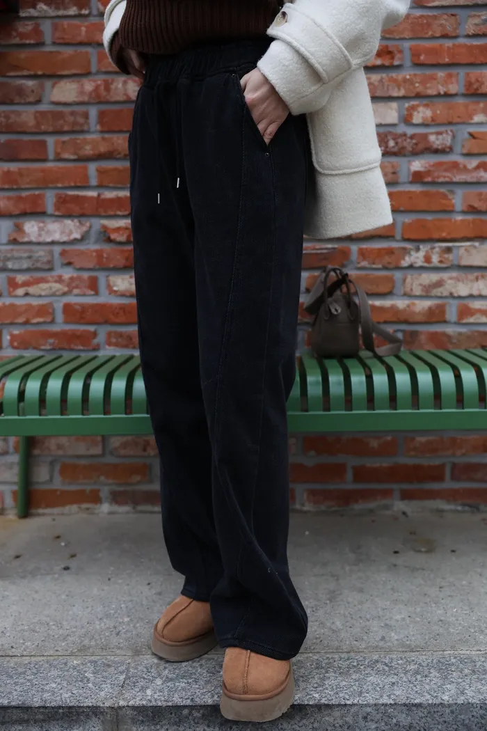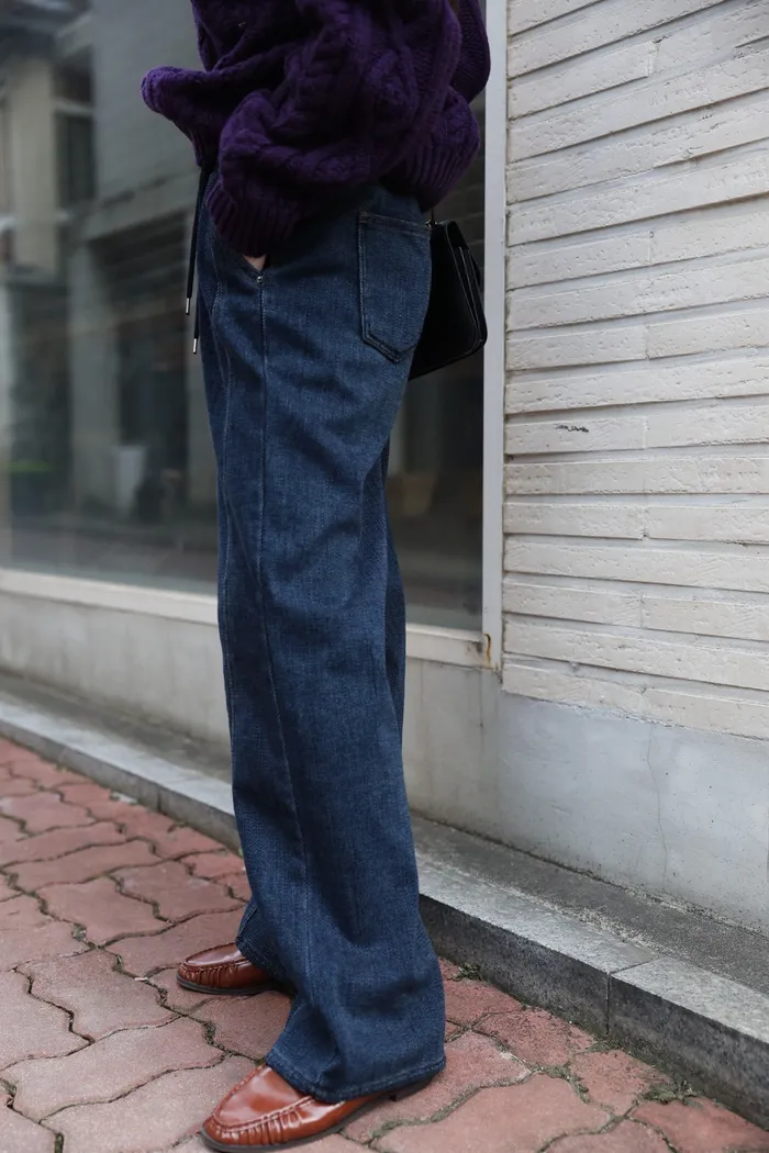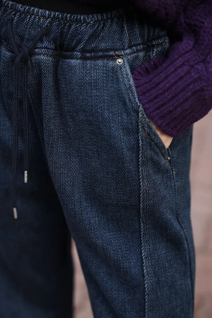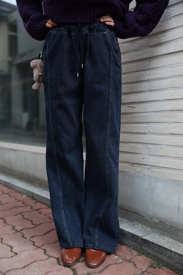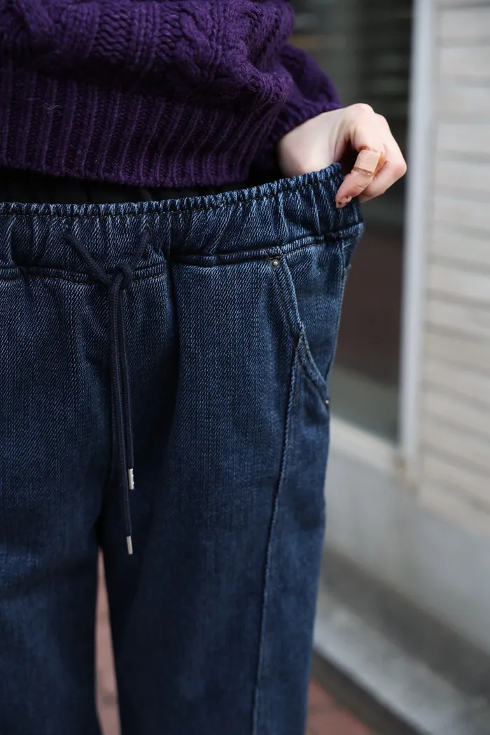 JA01 超瘦羅紋鬆緊抽繩刷毛牛仔褲 (墨/深藍)(F/L)