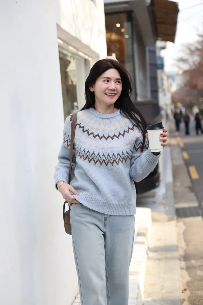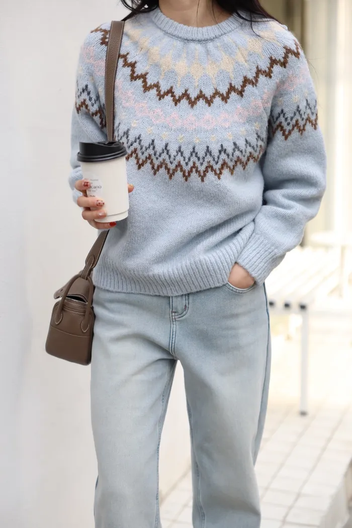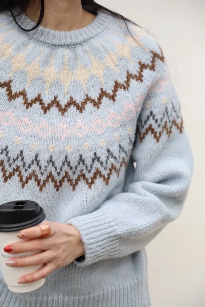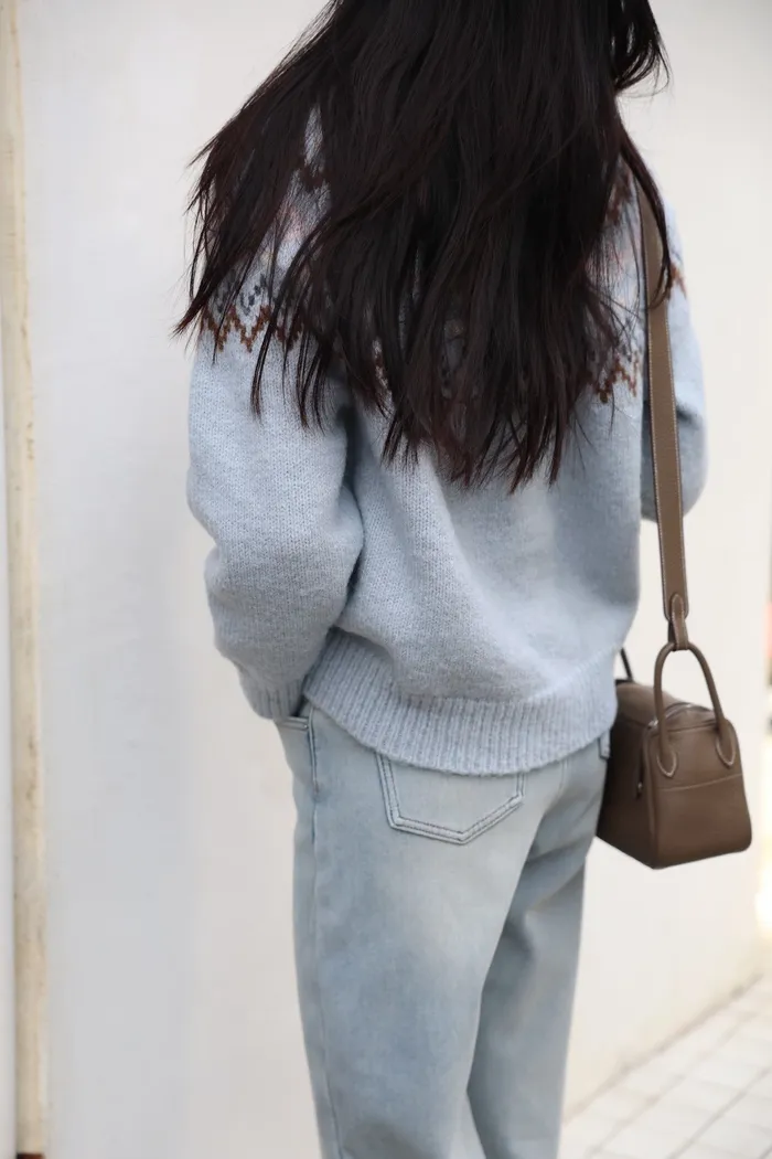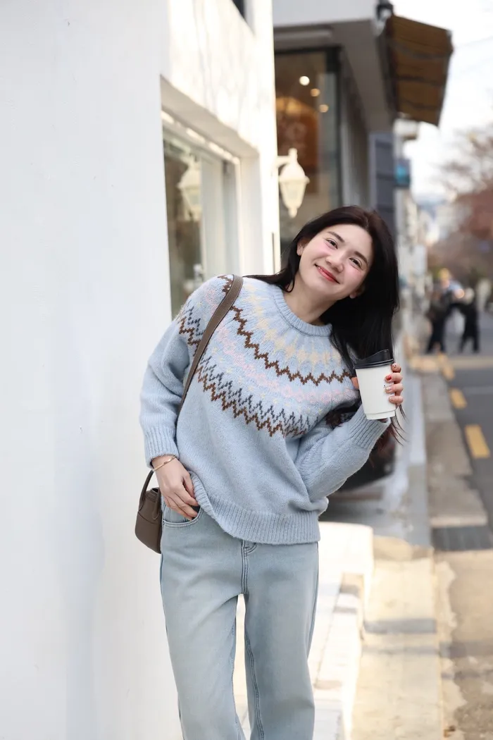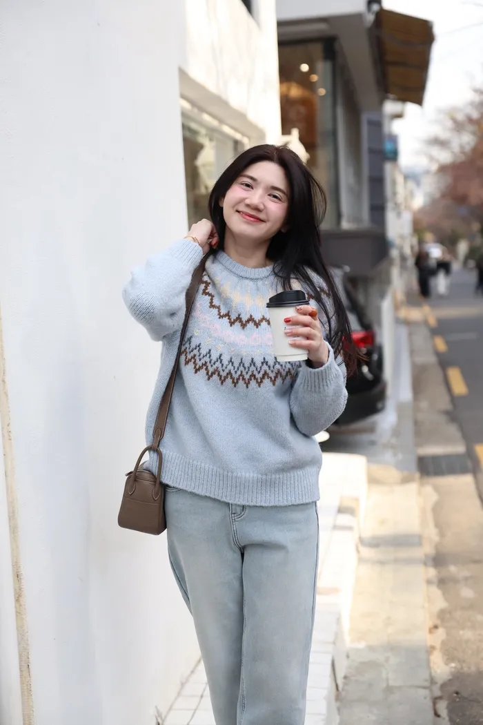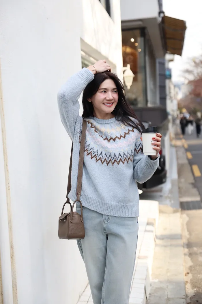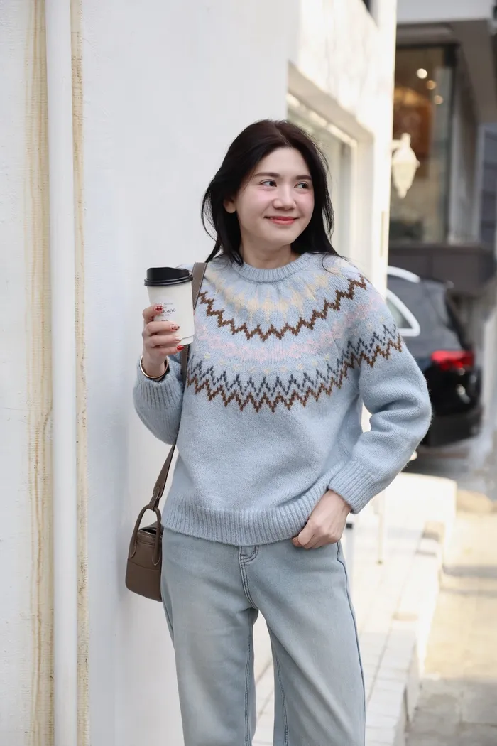 JA03親膚溫柔冬天氣氛感針織上衣(米白/淺藍)