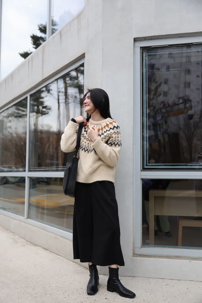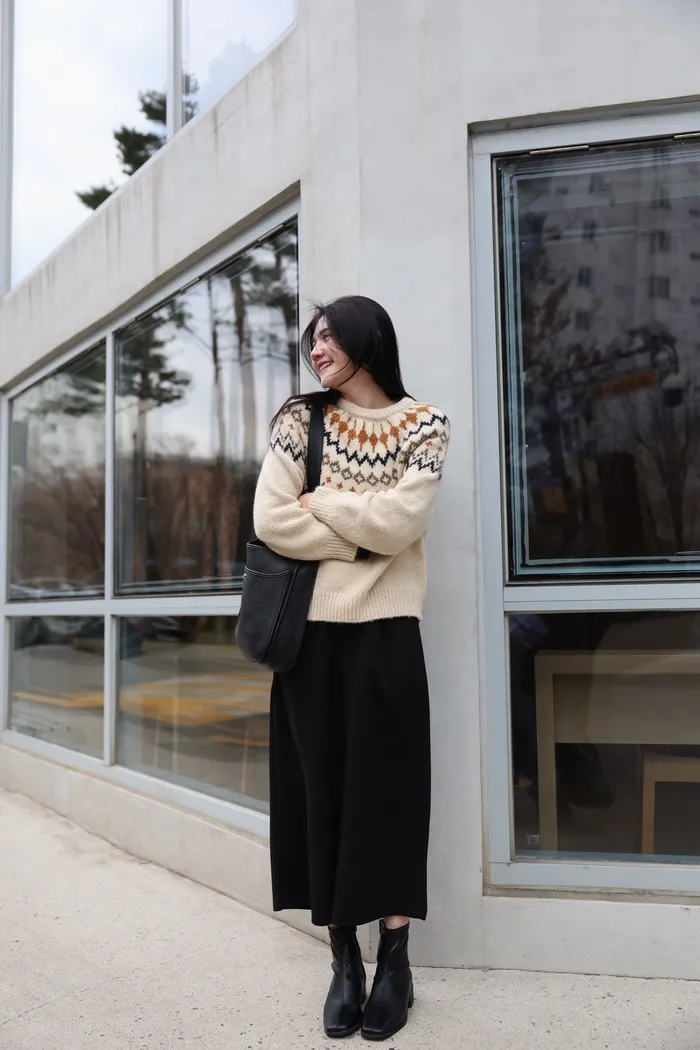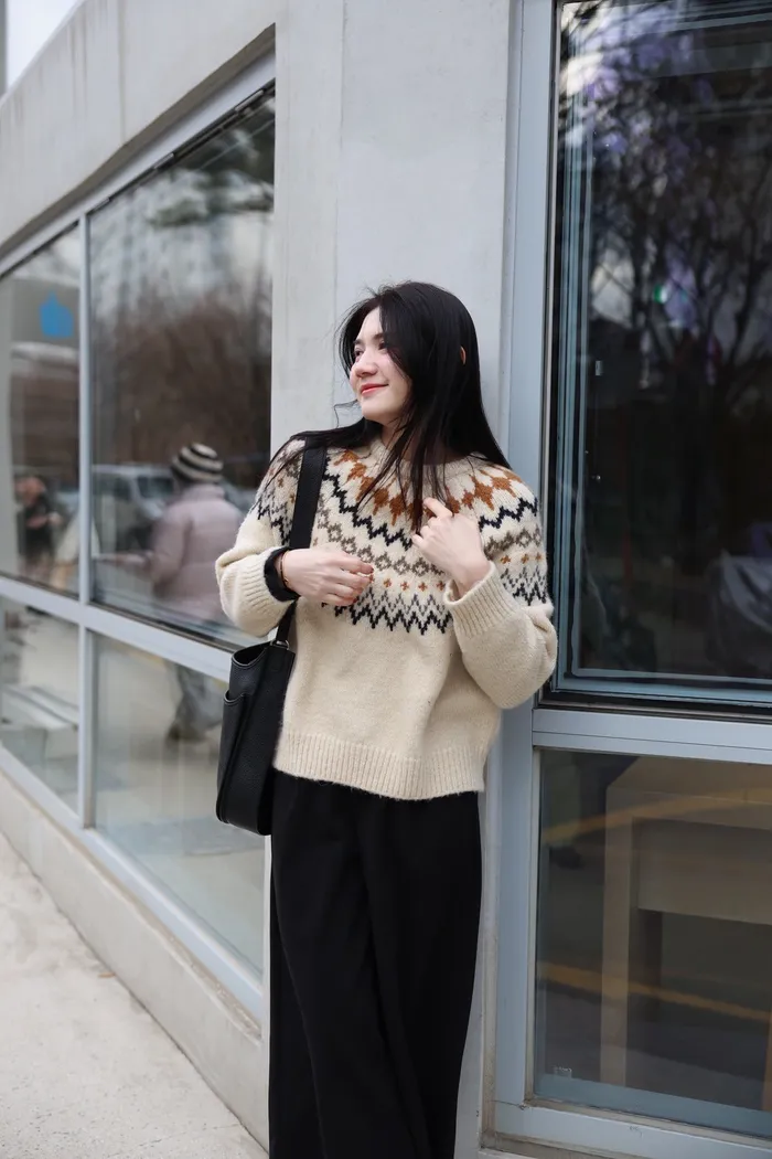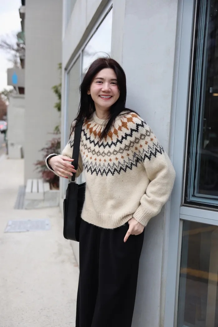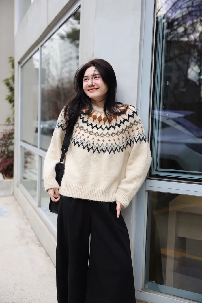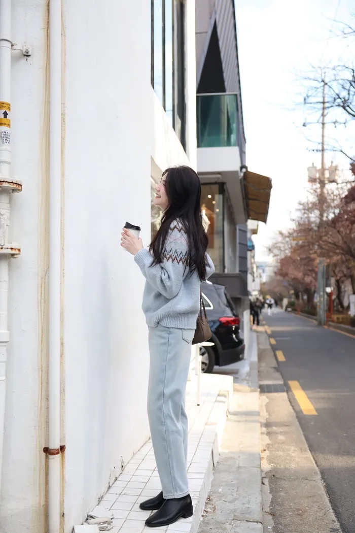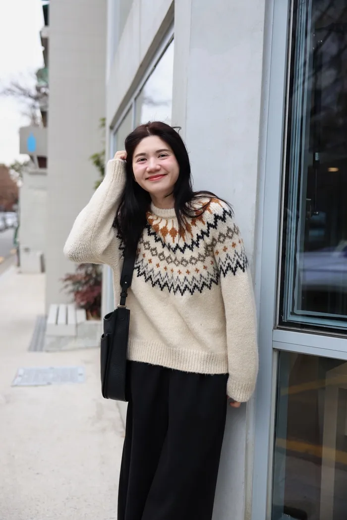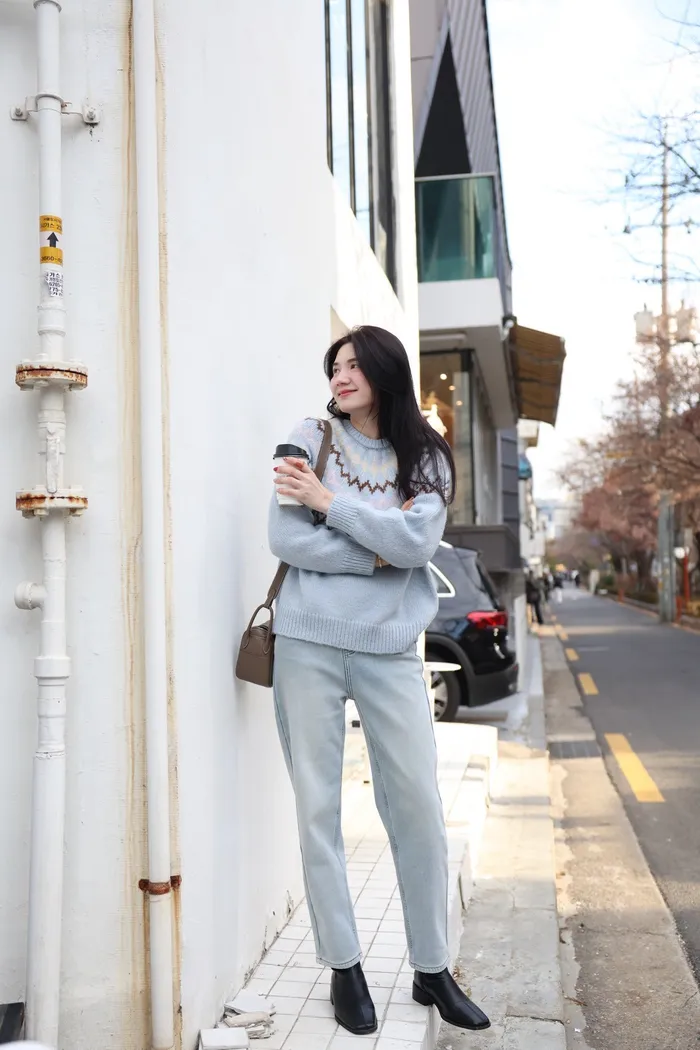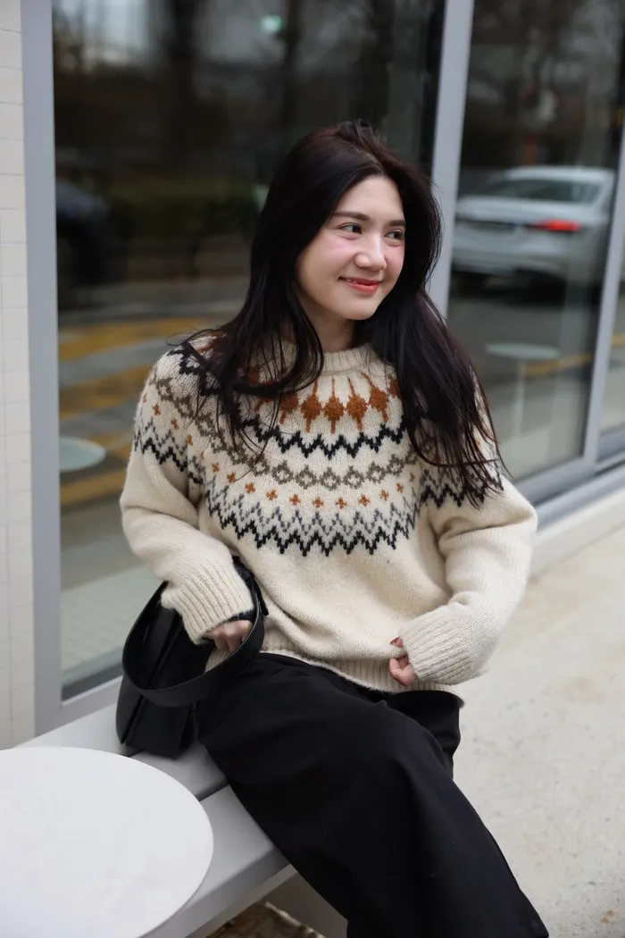 JA03親膚溫柔冬天氣氛感針織上衣(米白/淺藍)
