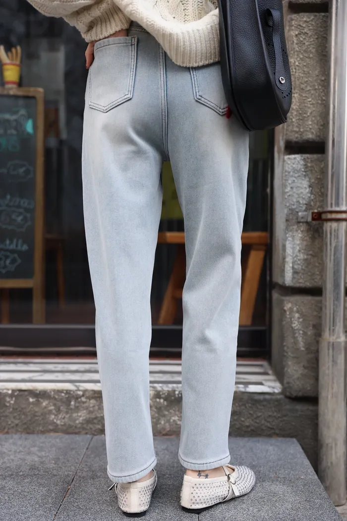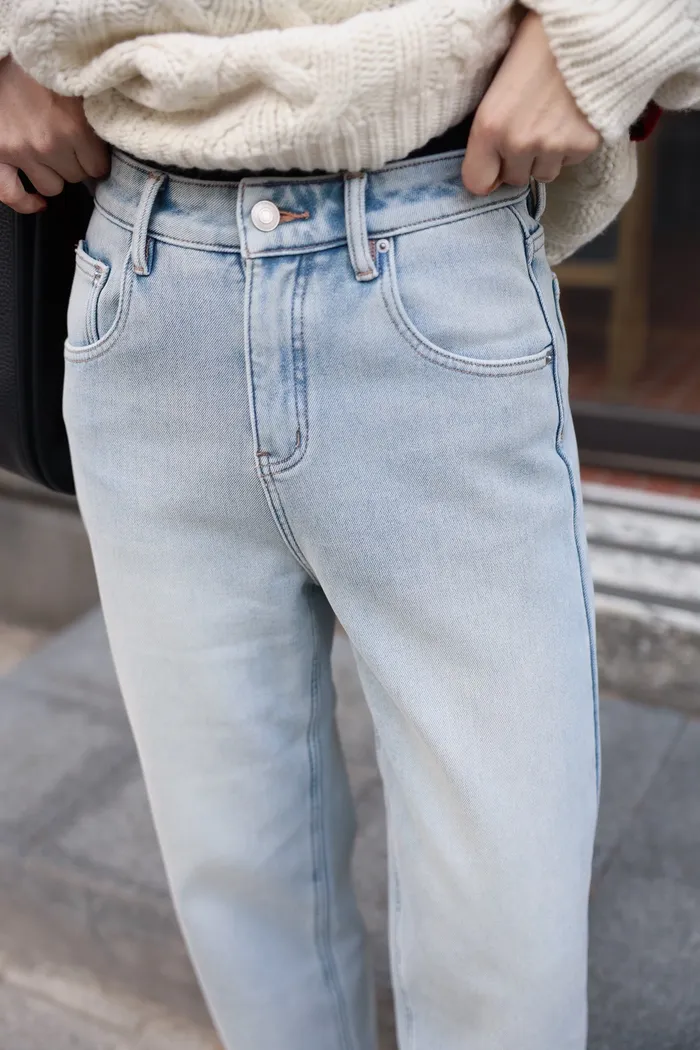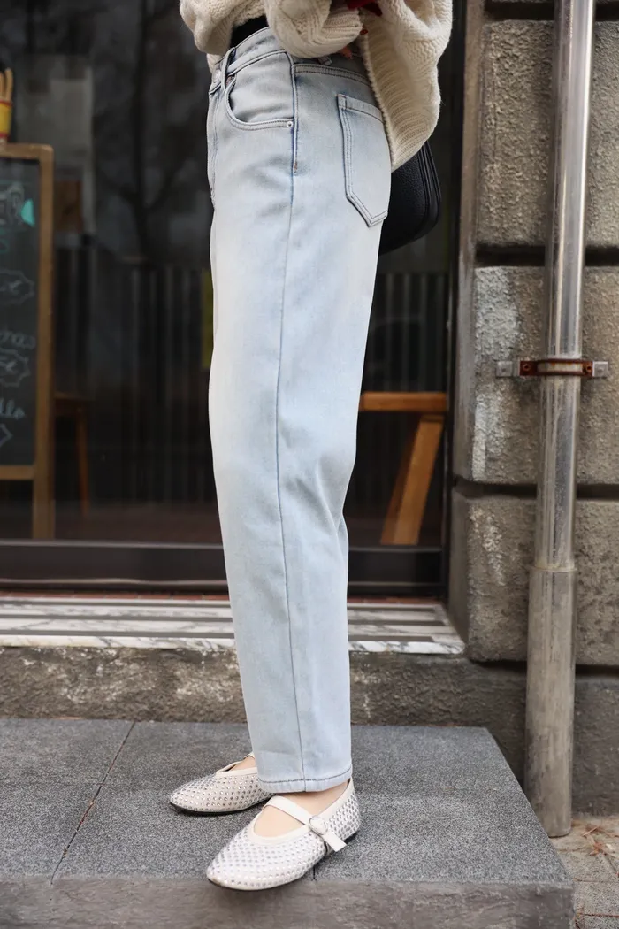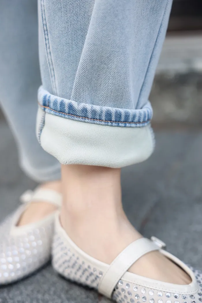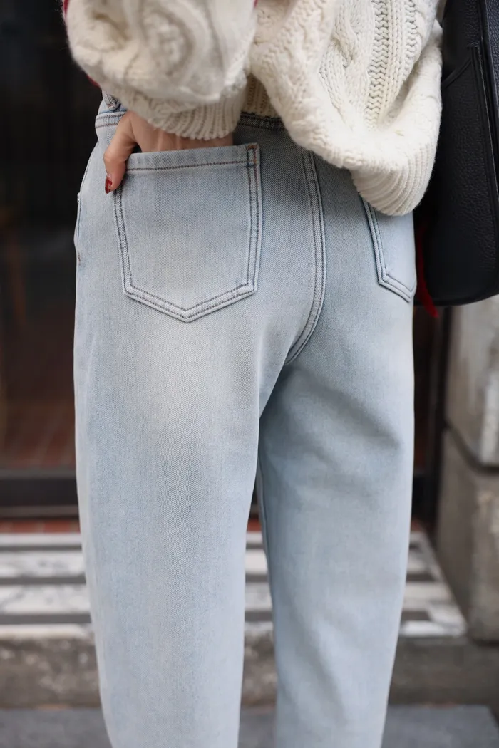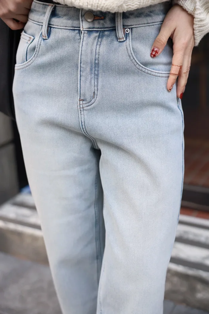 JA08 冬天最美淺藍彈性超好內刷毛牛仔褲(S/M/L)