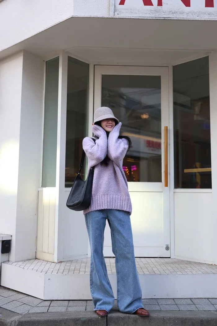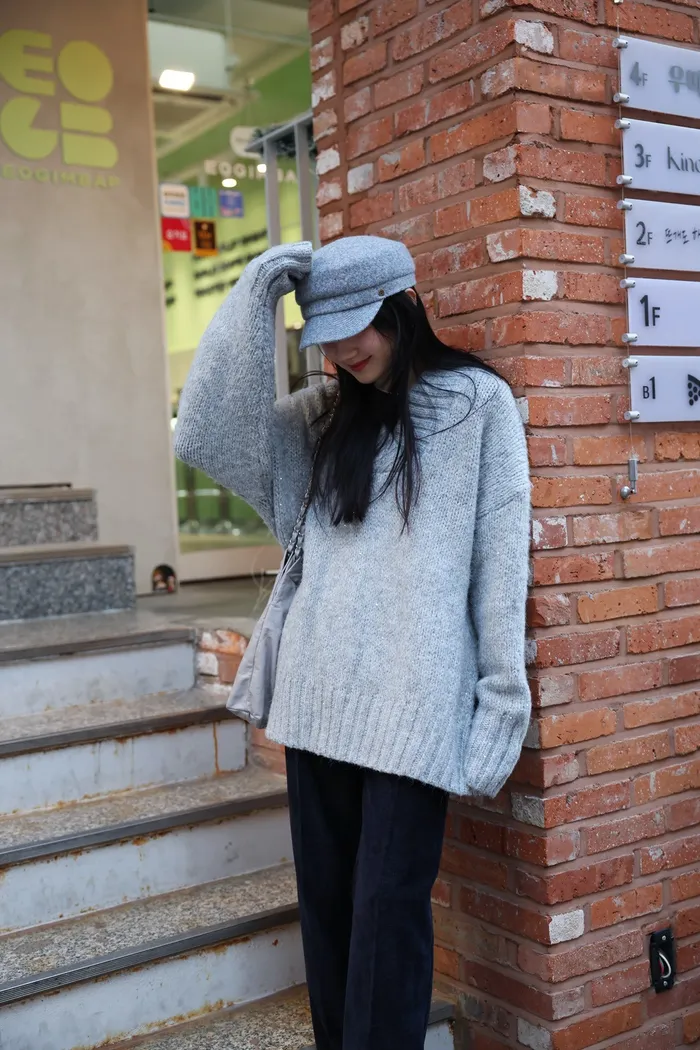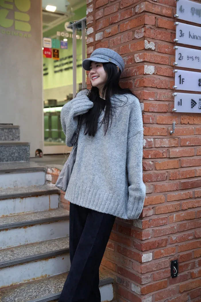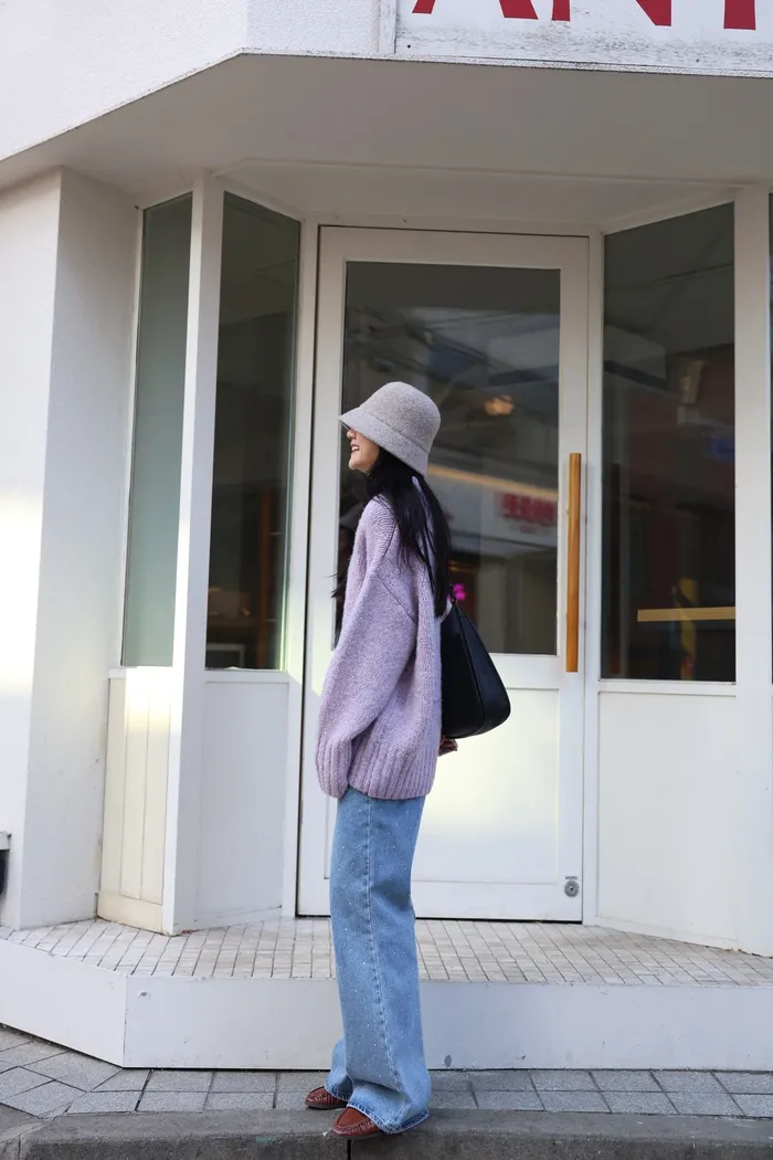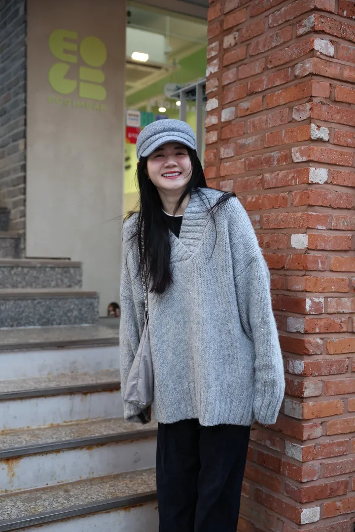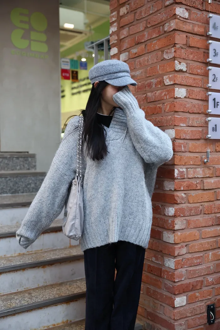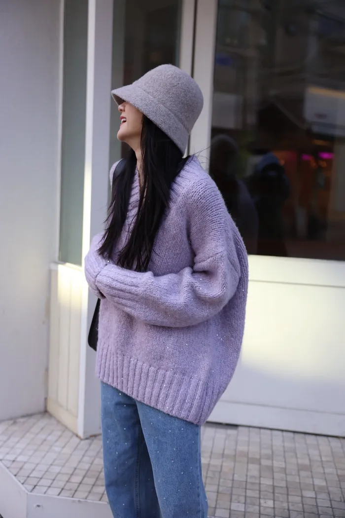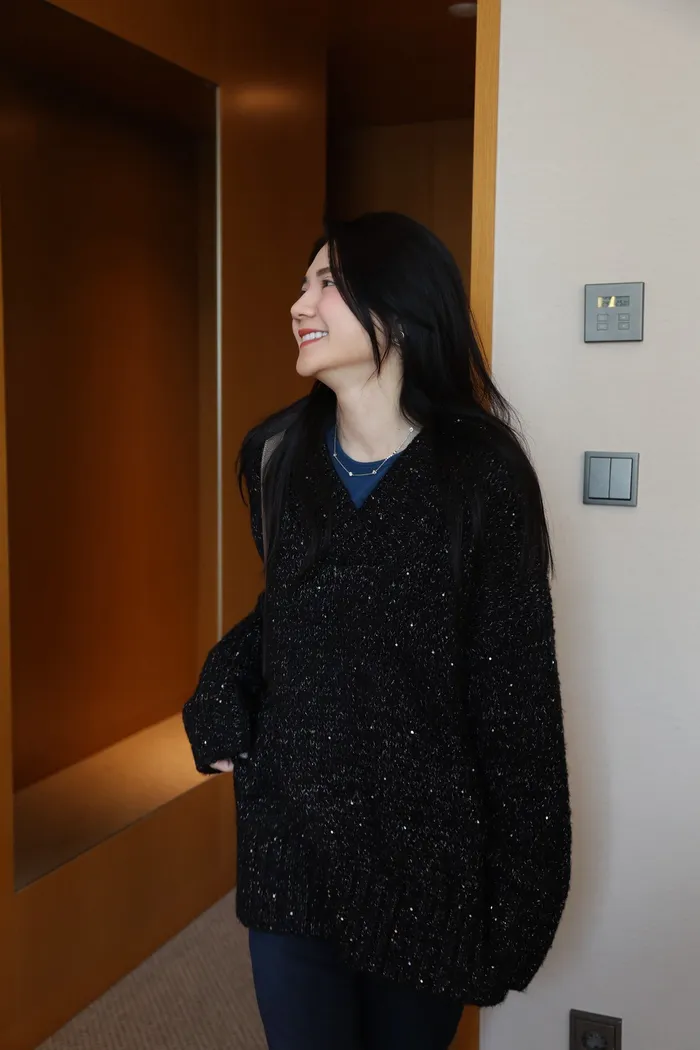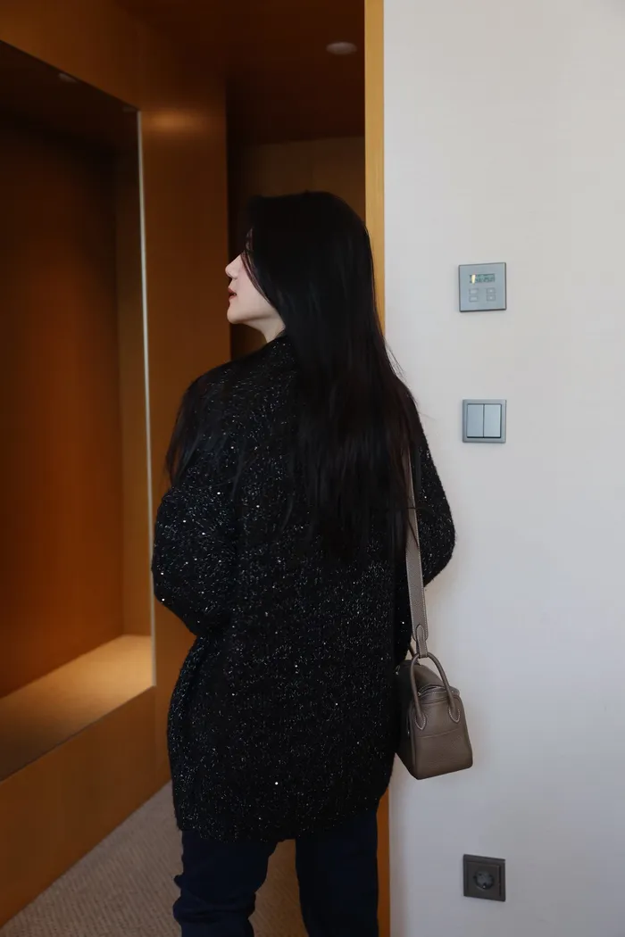 JA10 閃亮V領羊毛長版針織上衣(粉紫/灰/墨)