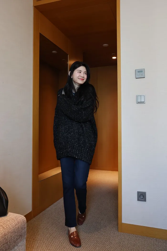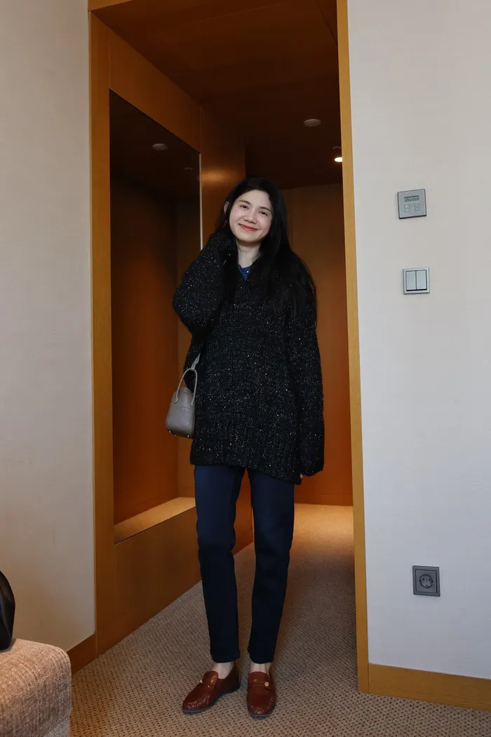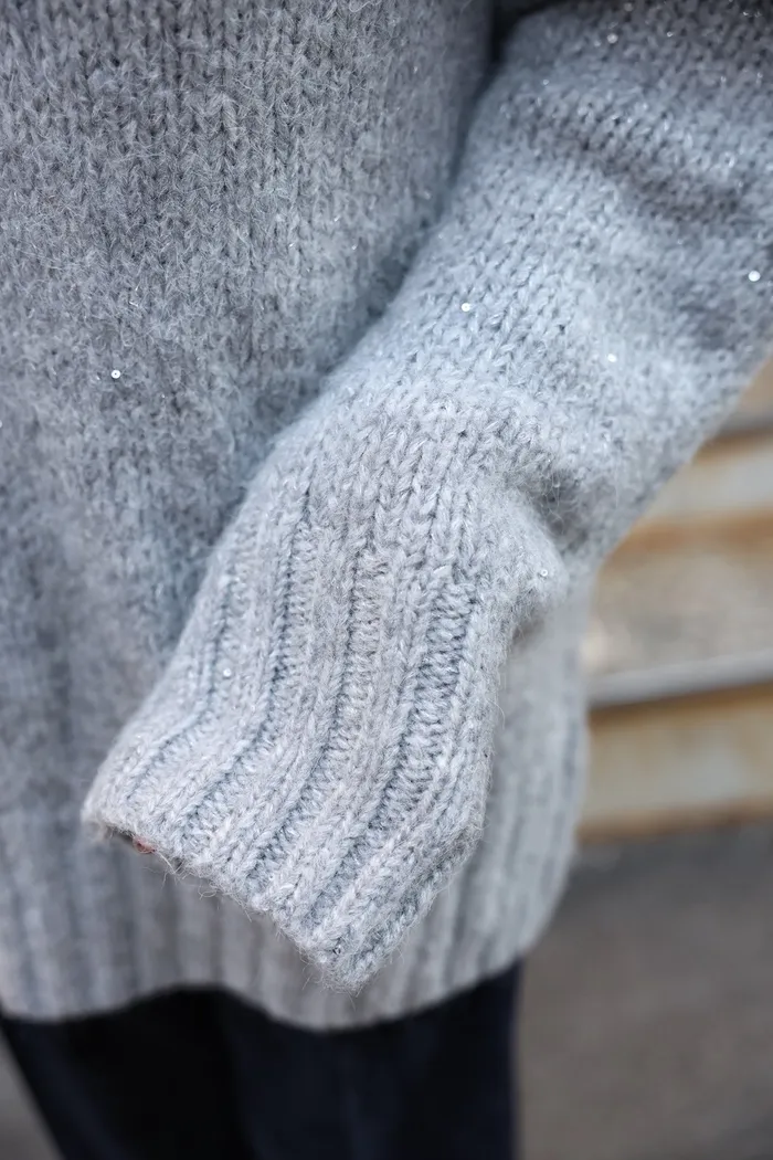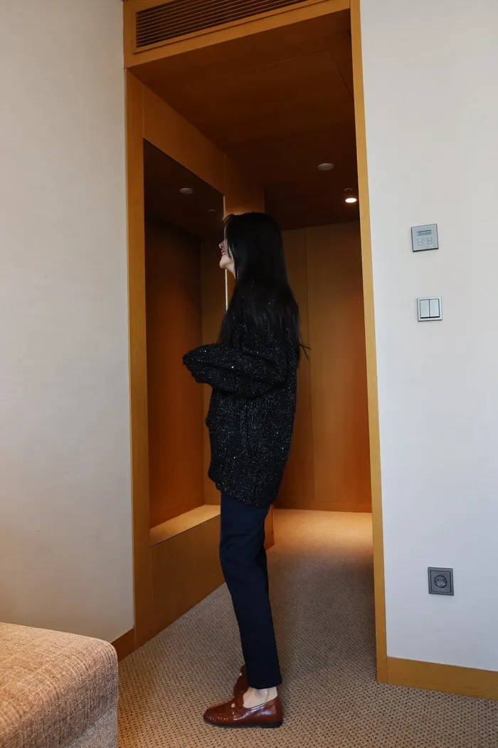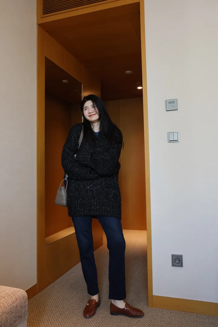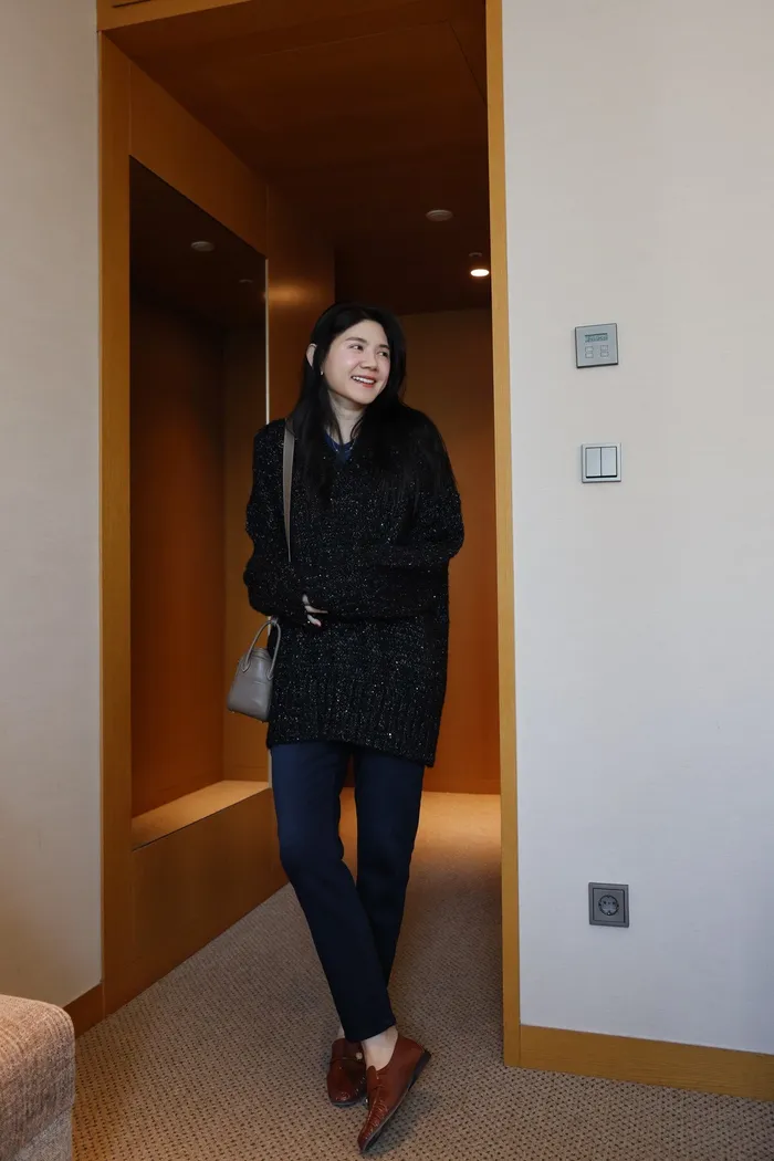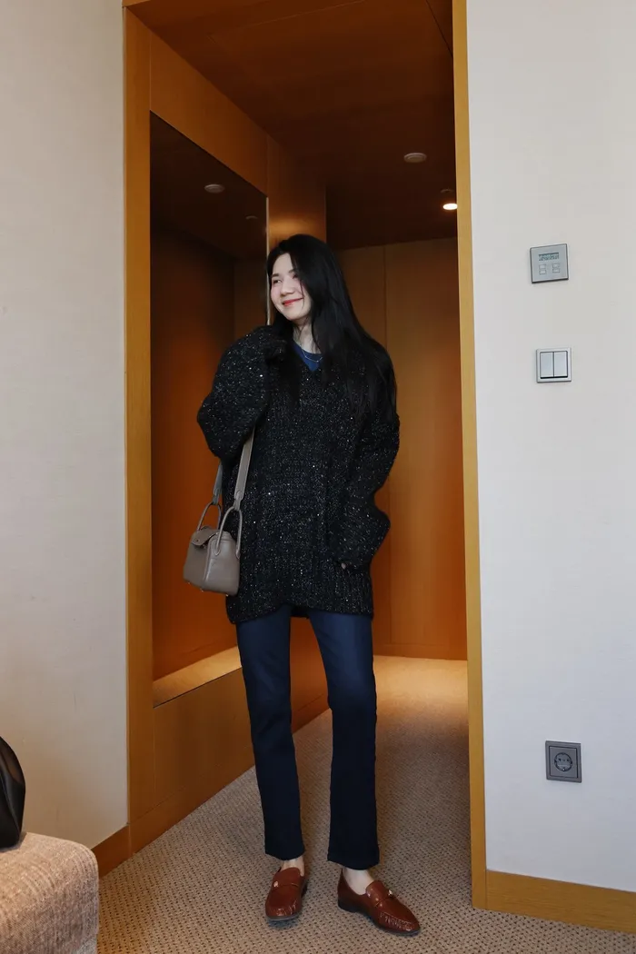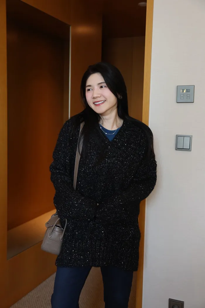JA10 閃亮V領羊毛長版針織上衣(粉紫/灰/墨)