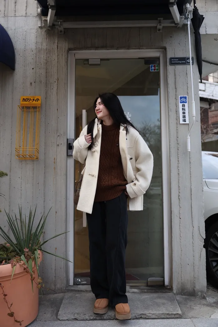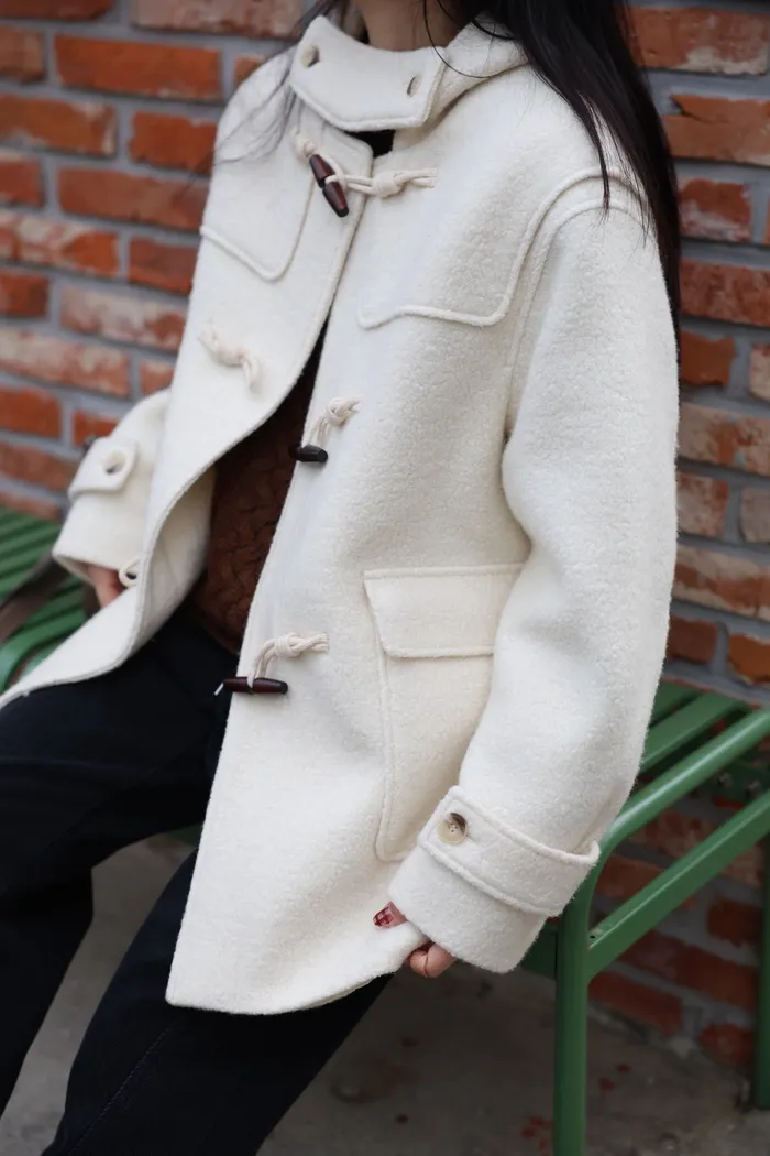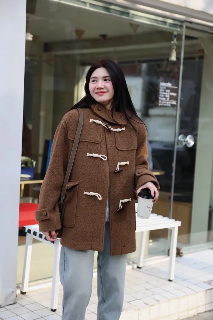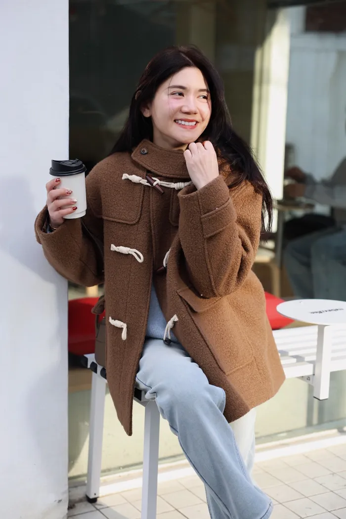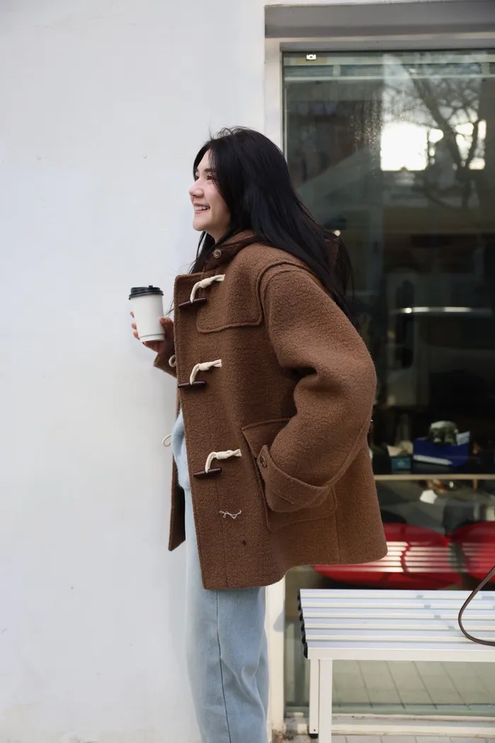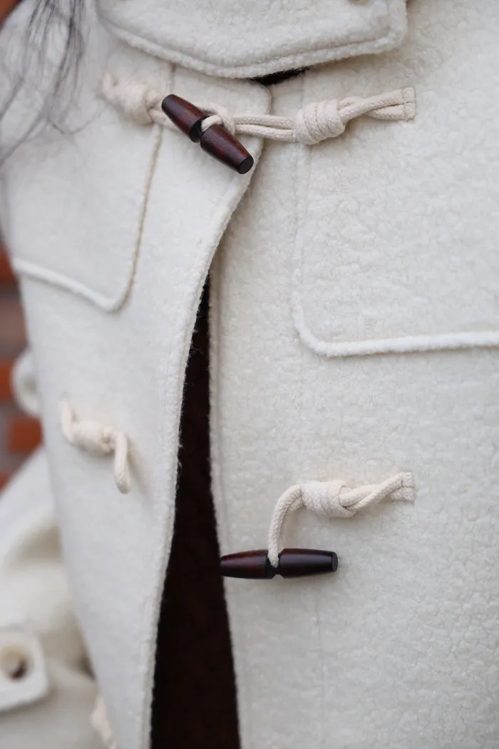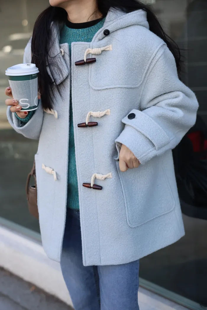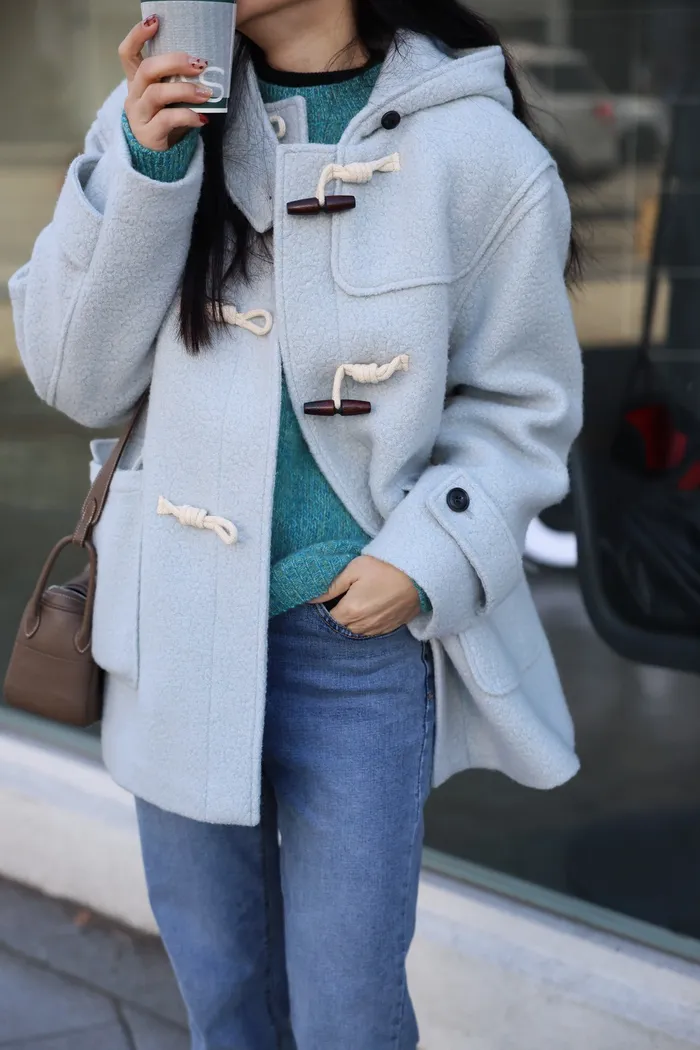 JA12 羊羔毛Q泰迪牛角釦連帽大衣(米白/淺藍/咖)