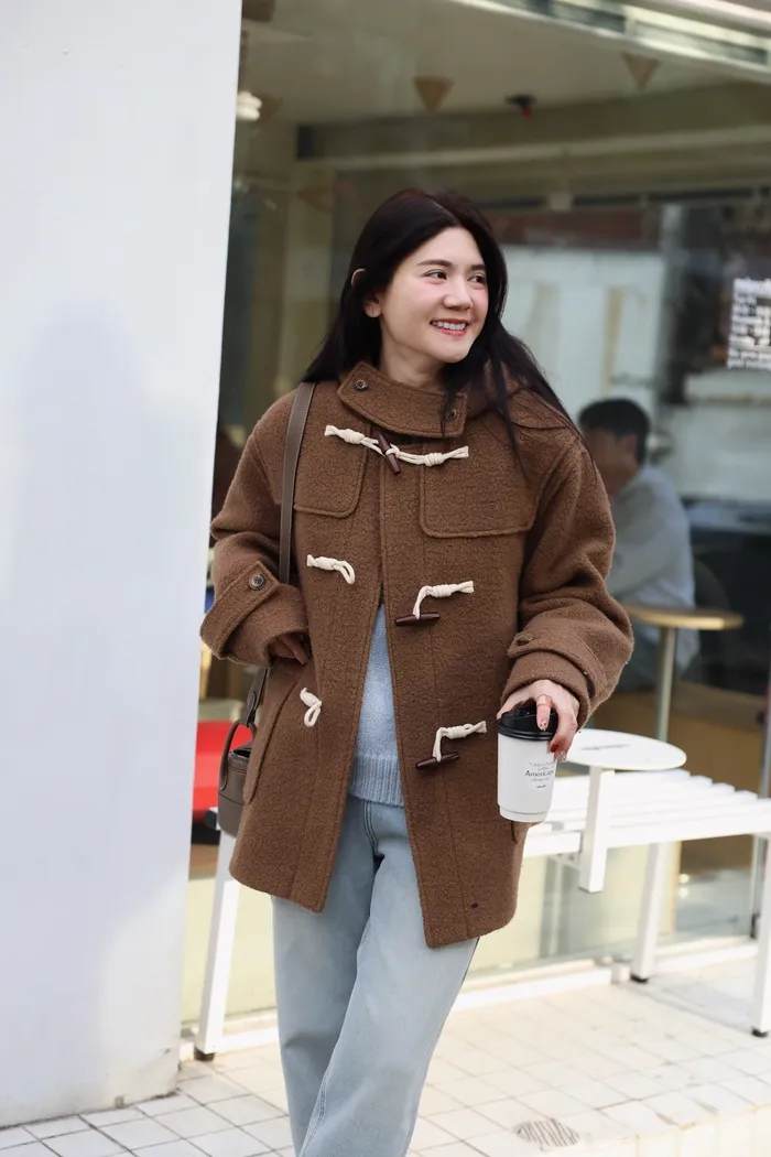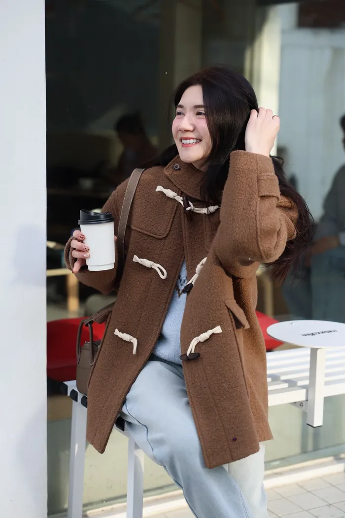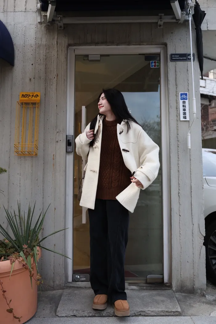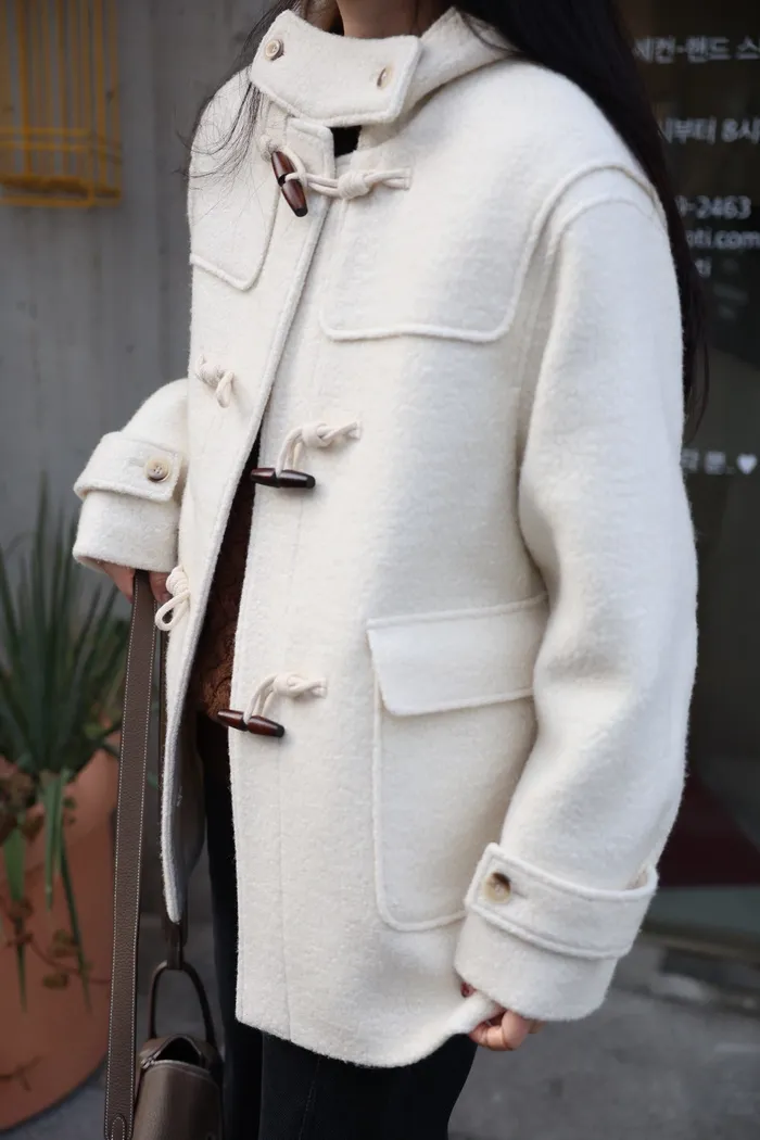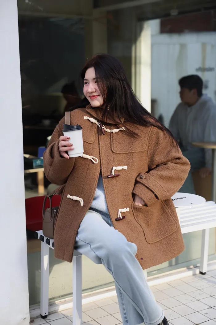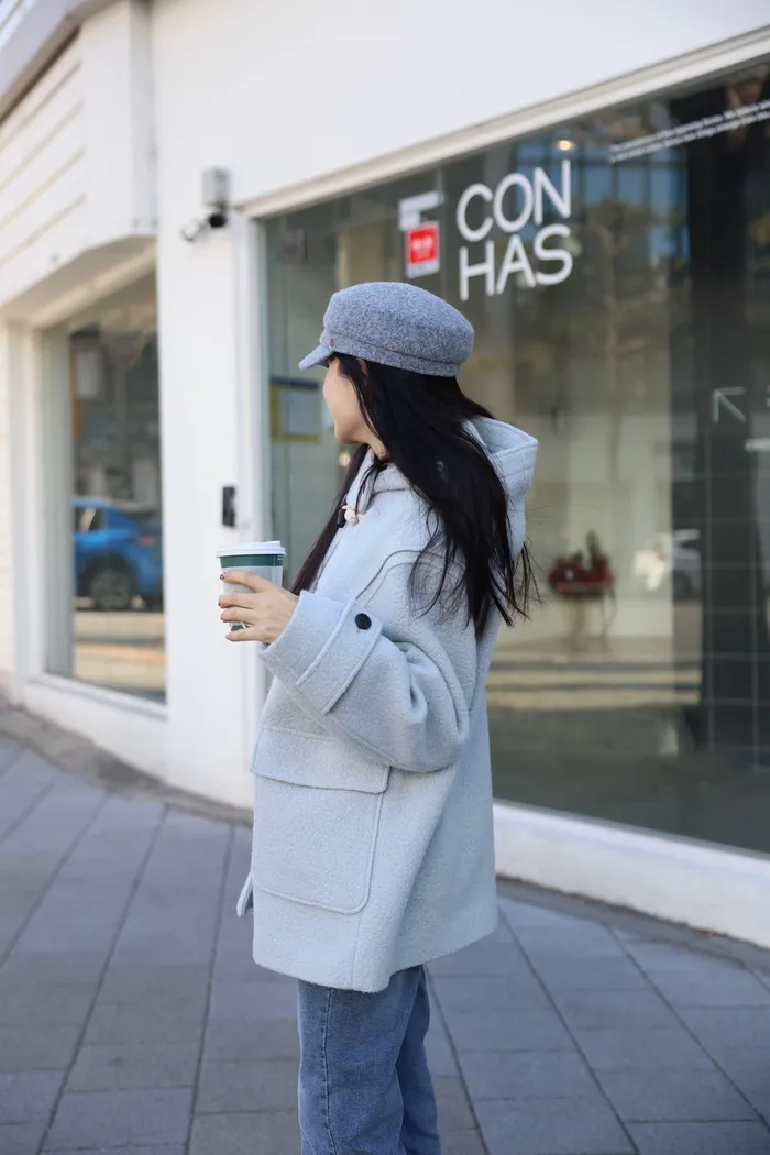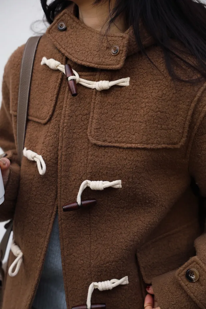 JA12 羊羔毛Q泰迪牛角釦連帽大衣(米白/淺藍/咖)