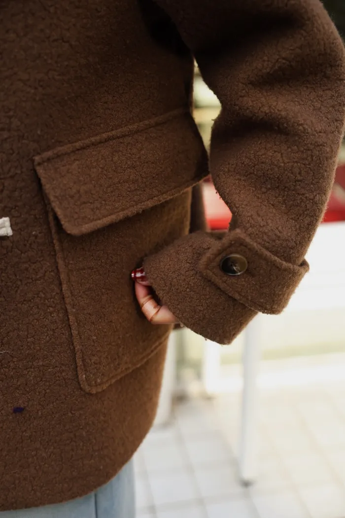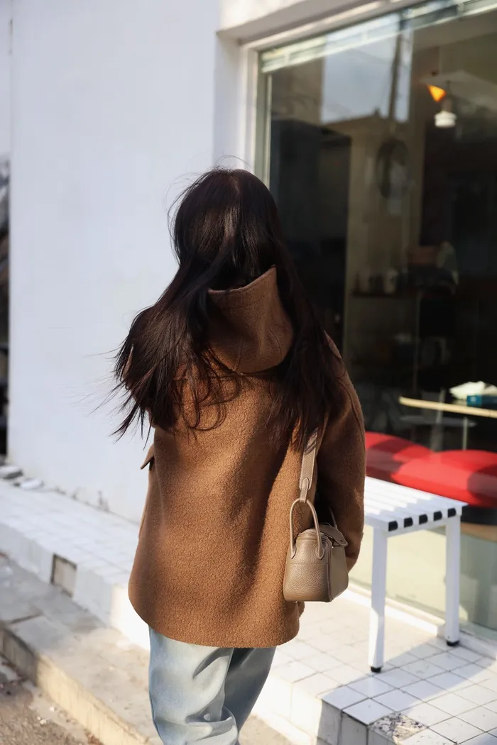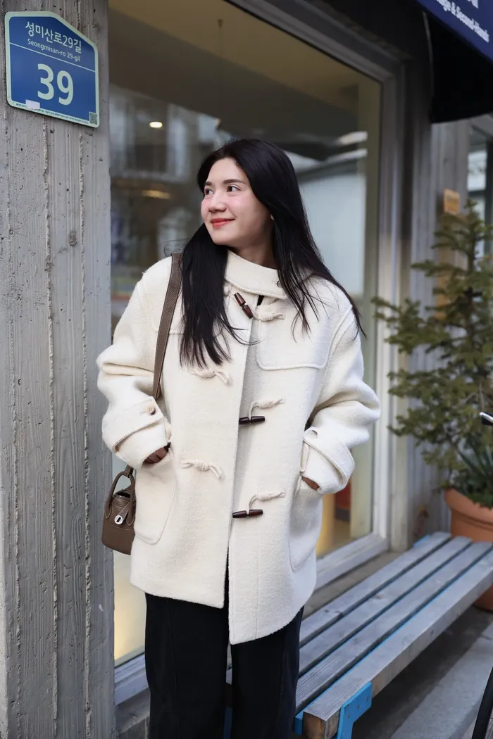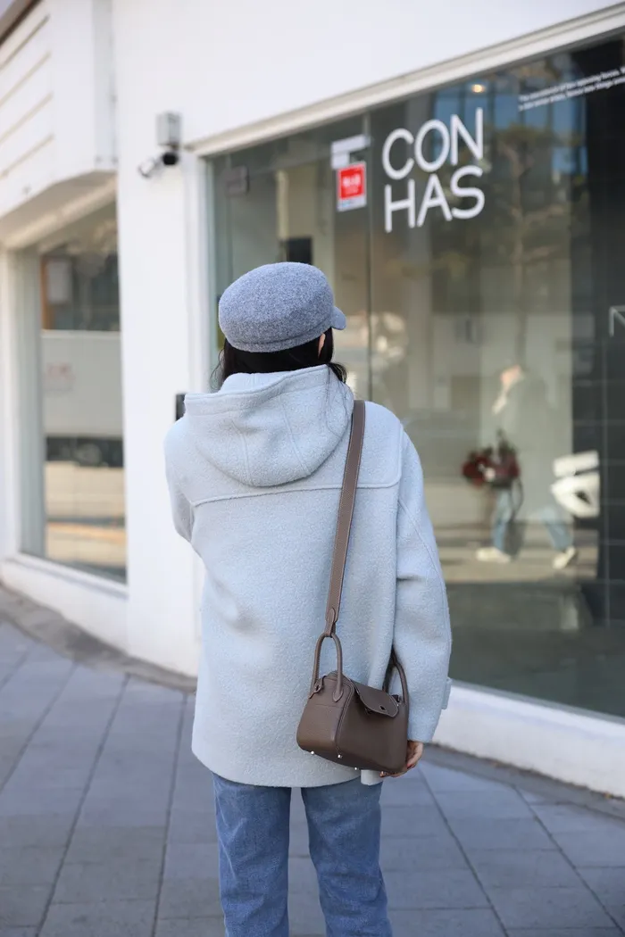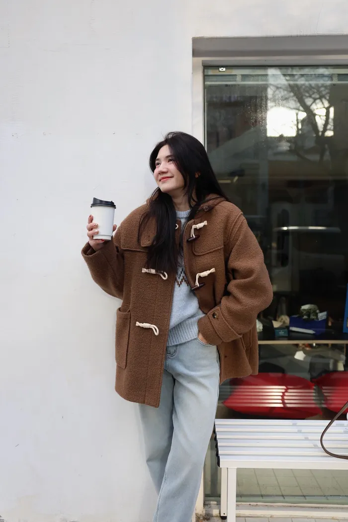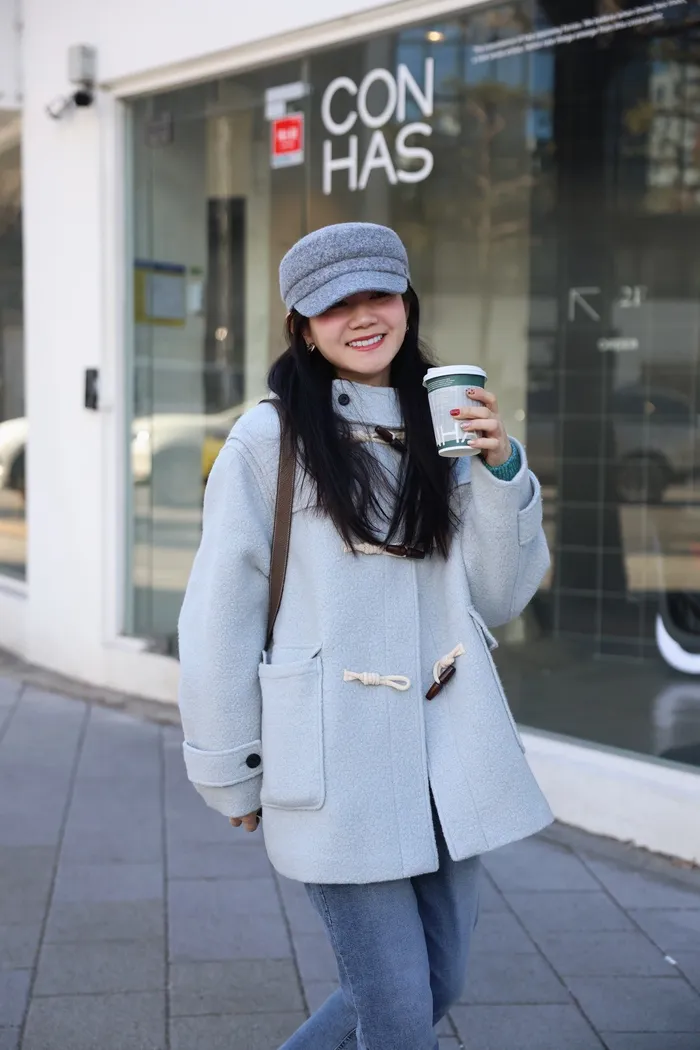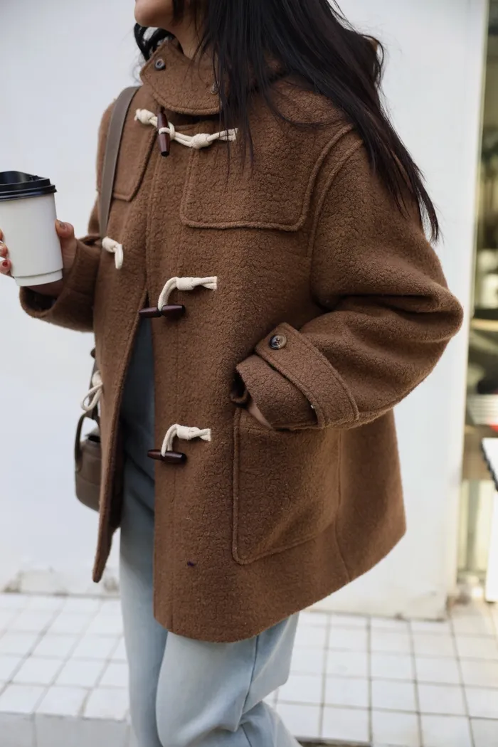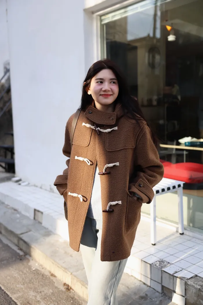 JA12 羊羔毛Q泰迪牛角釦連帽大衣(米白/淺藍/咖)
