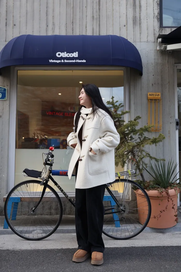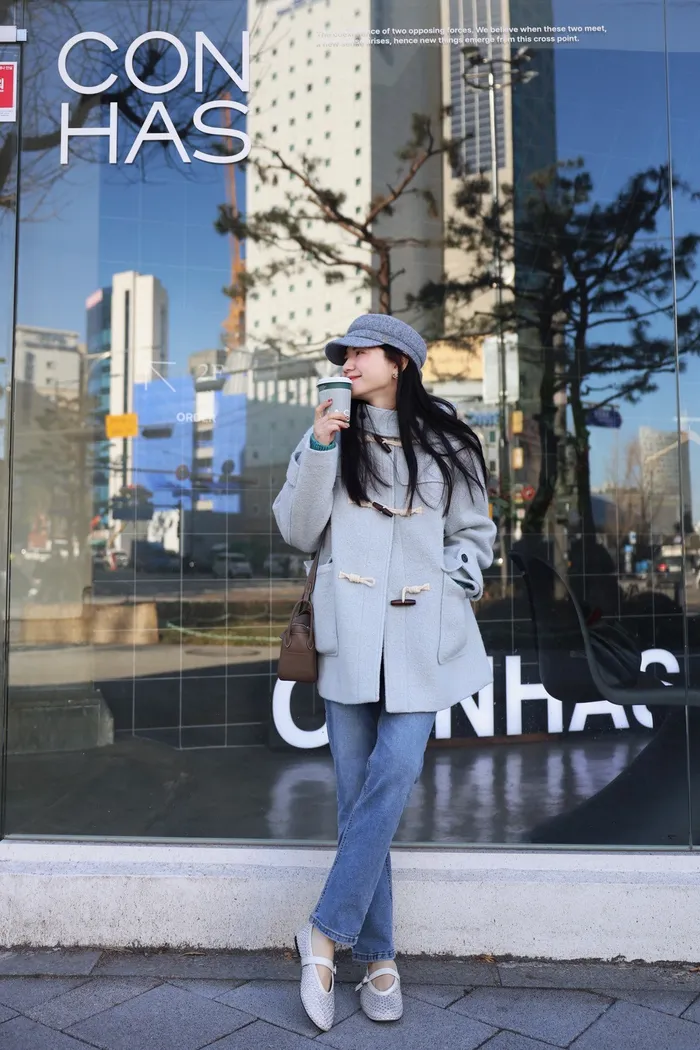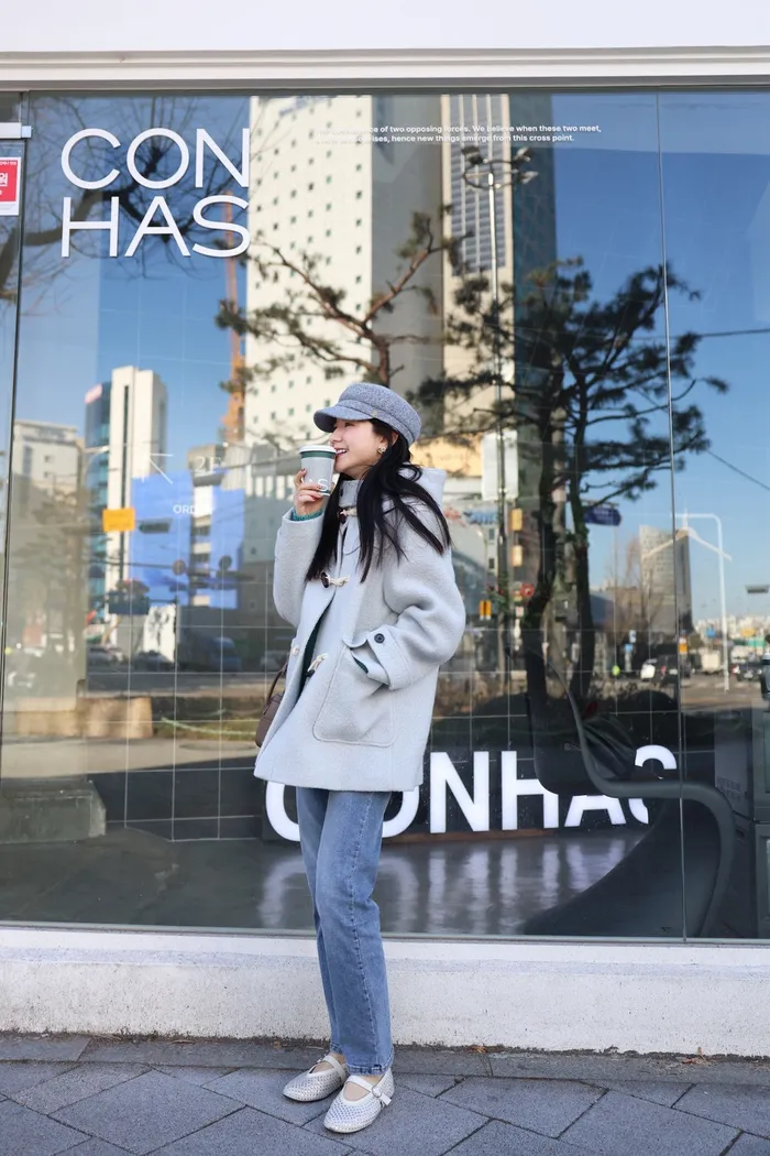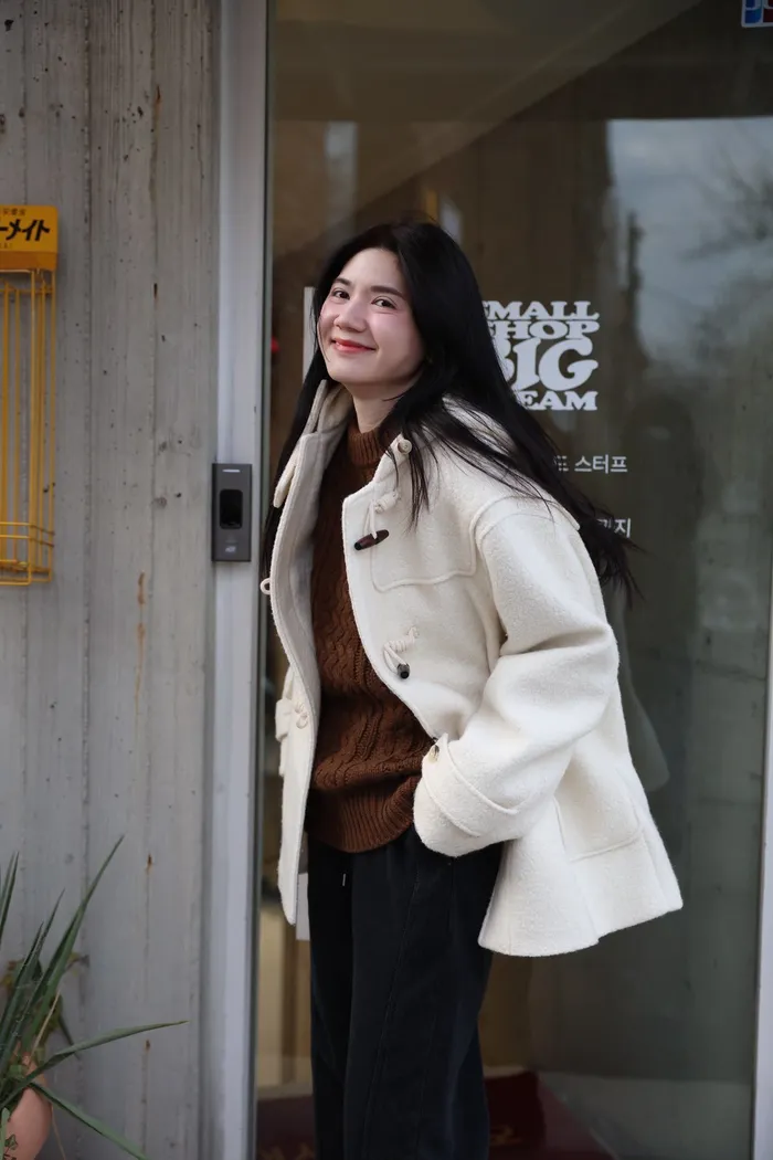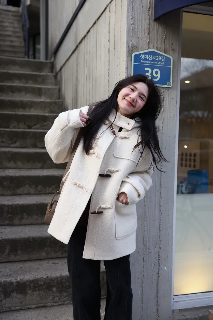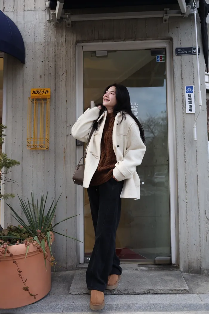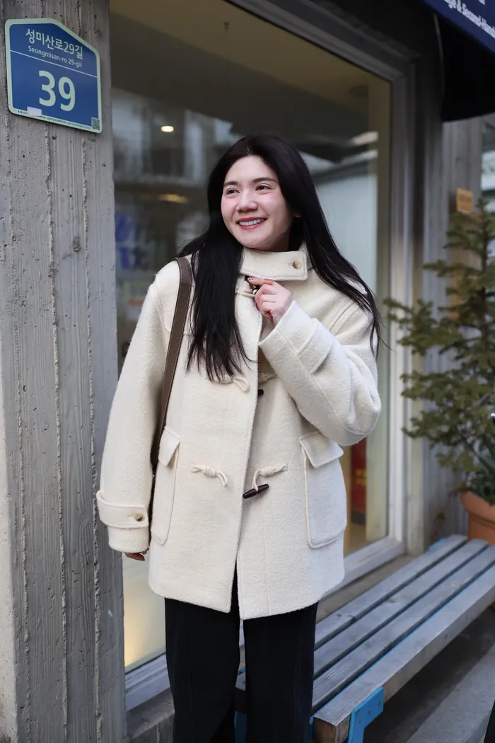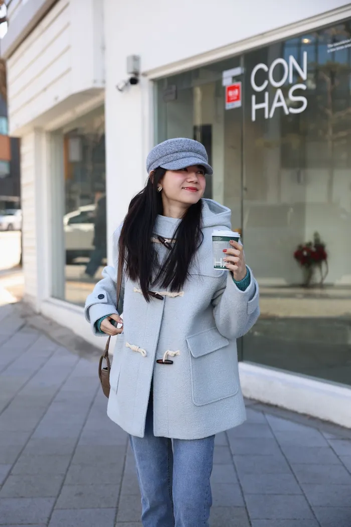 JA12 羊羔毛Q泰迪牛角釦連帽大衣(米白/淺藍/咖)