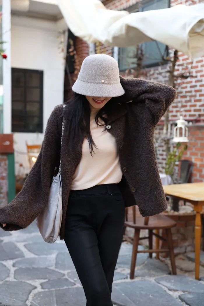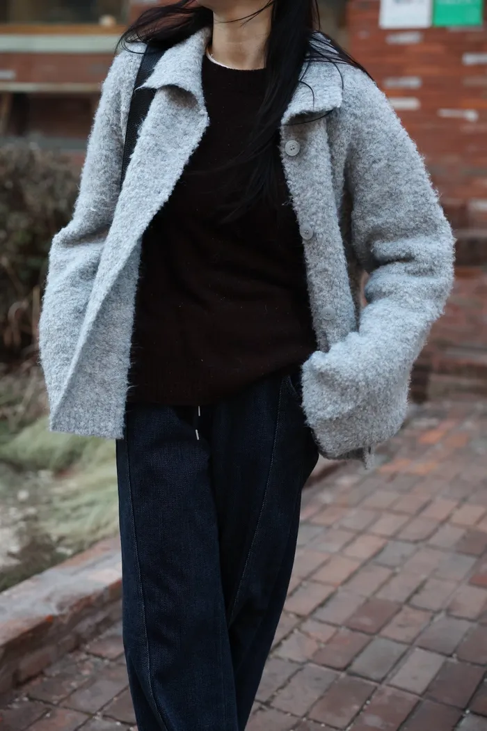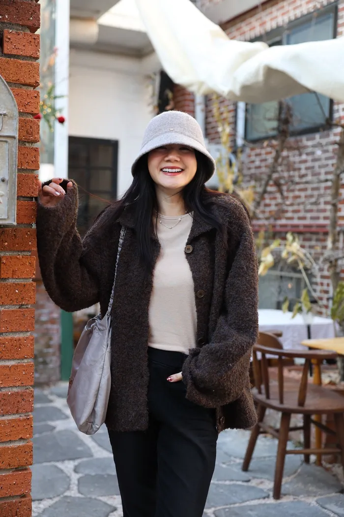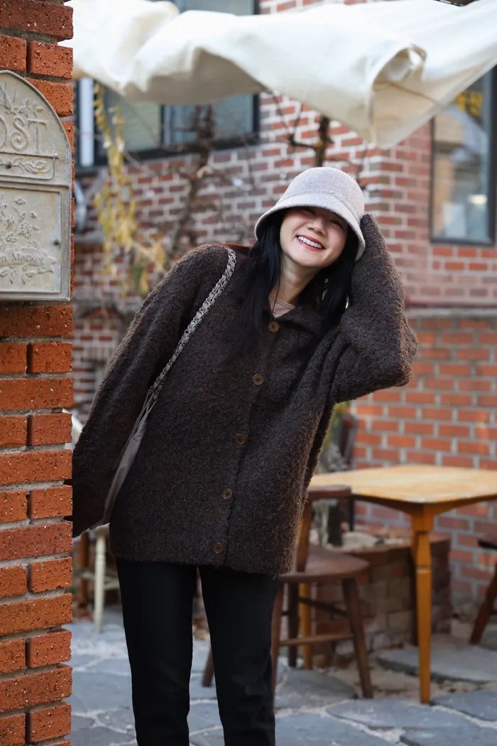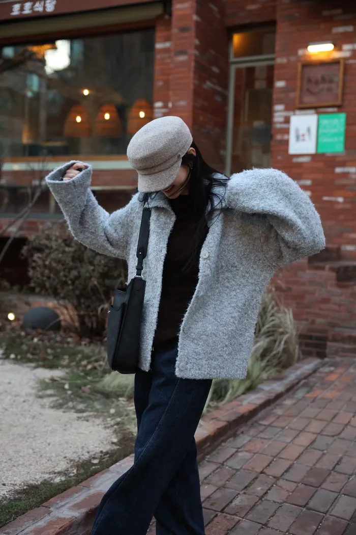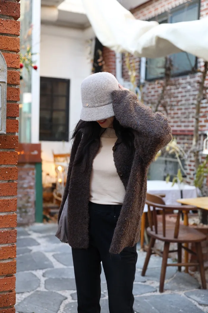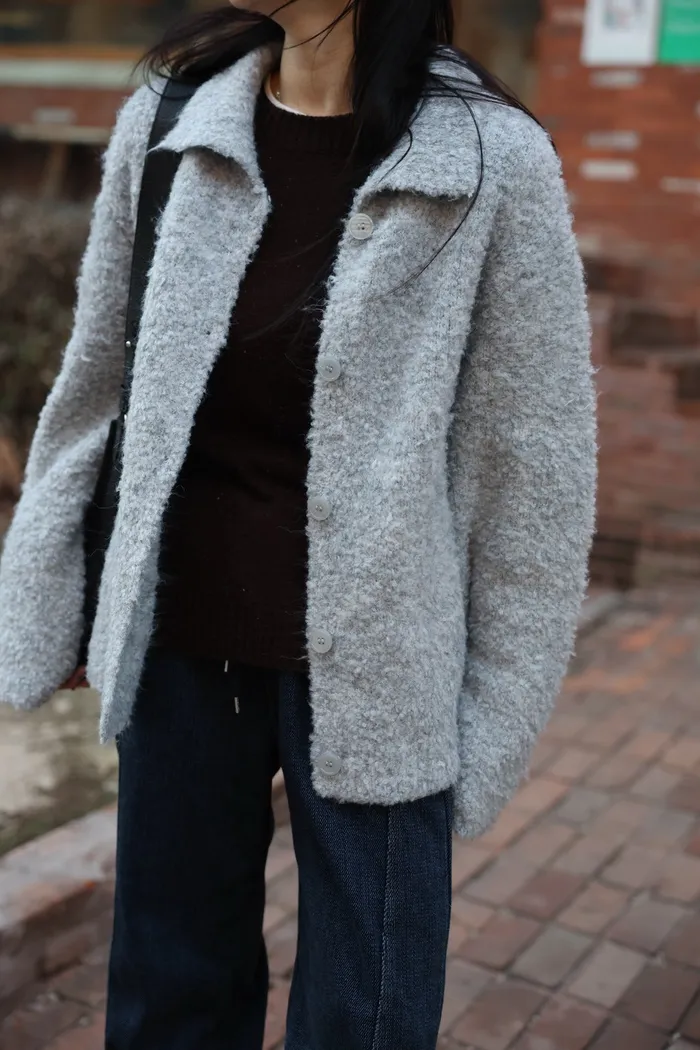 JA15 質感鬆軟混羊毛排扣罩衫(咖/灰)