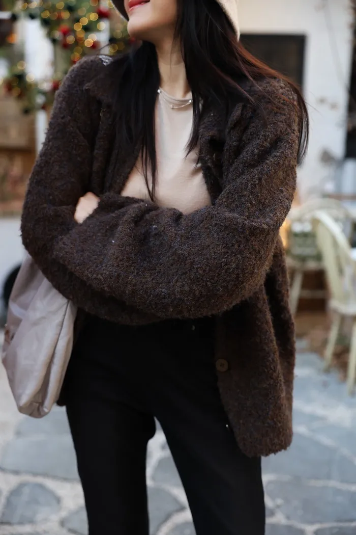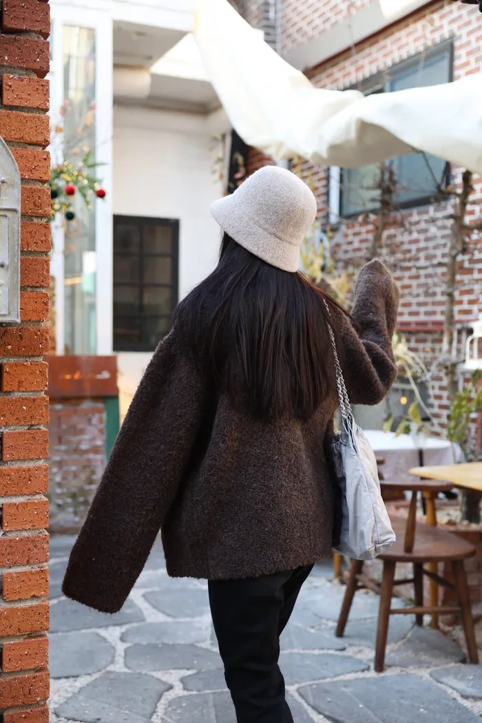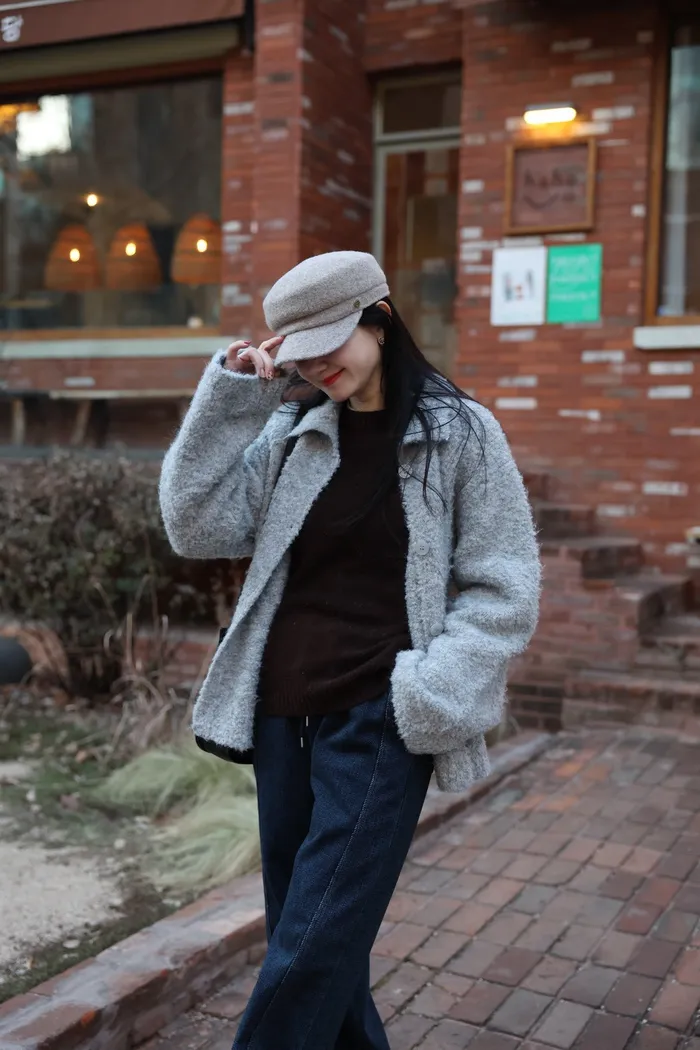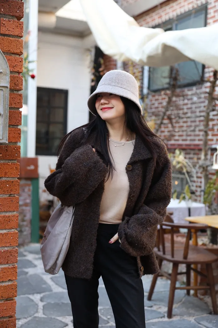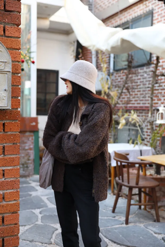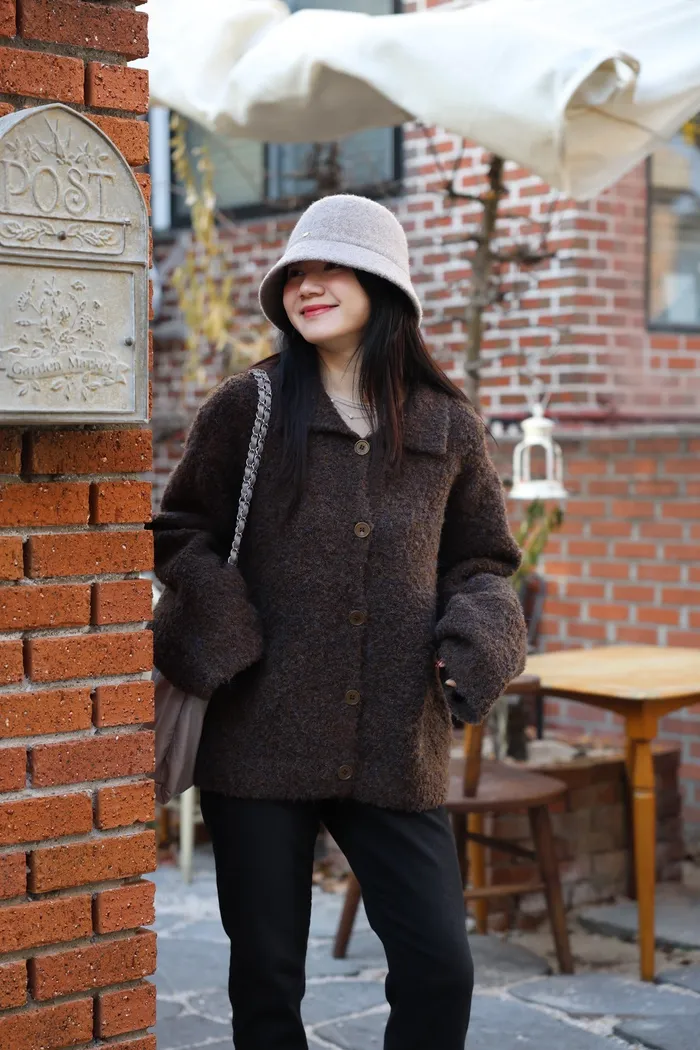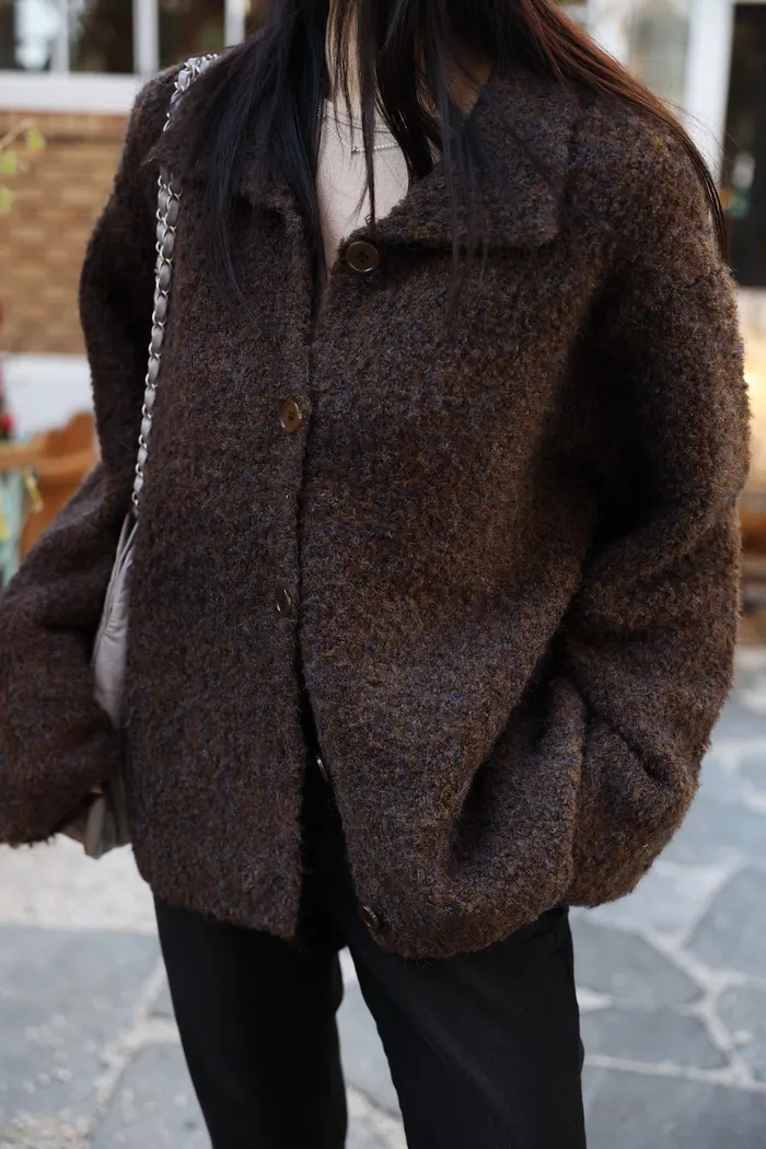 JA15 質感鬆軟混羊毛排扣罩衫(咖/灰)