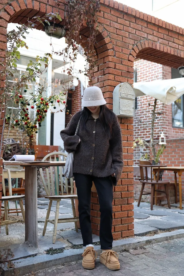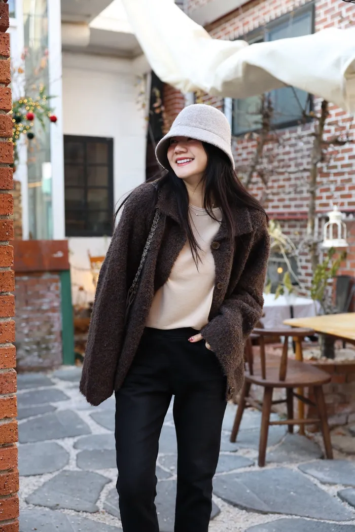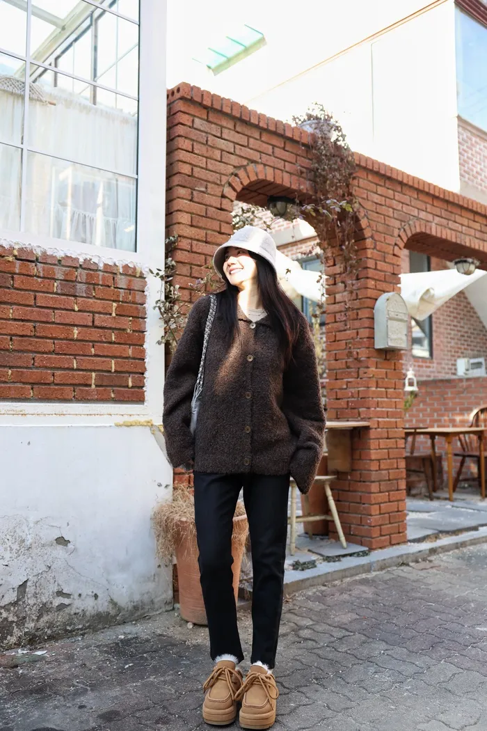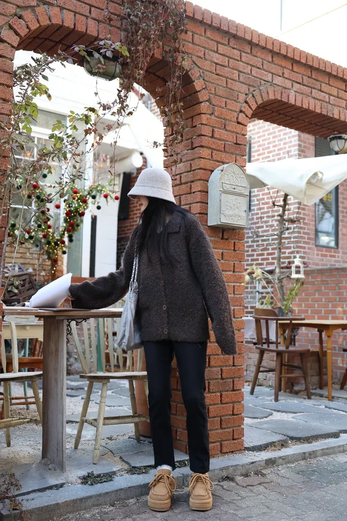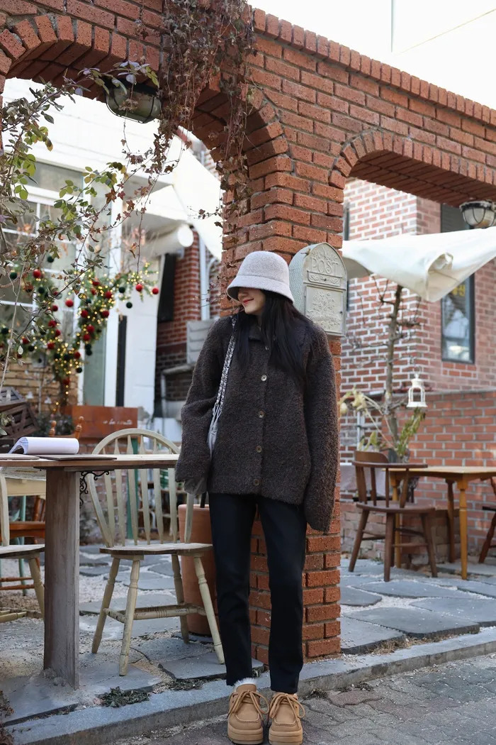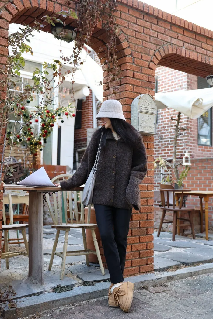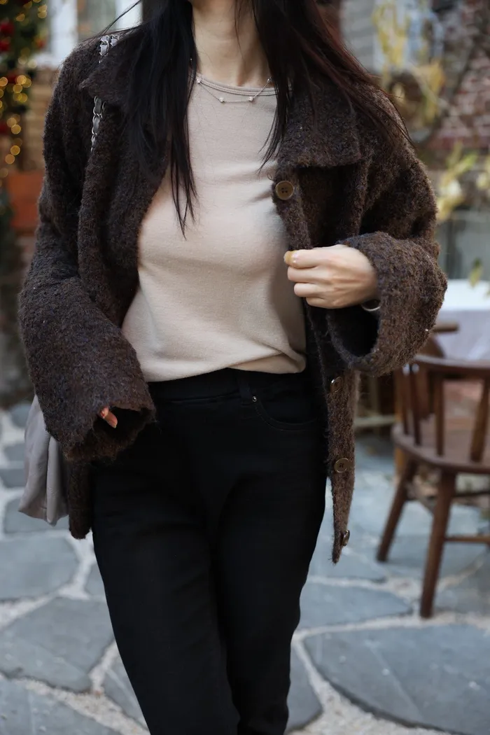 JA15 質感鬆軟混羊毛排扣罩衫(咖/灰)