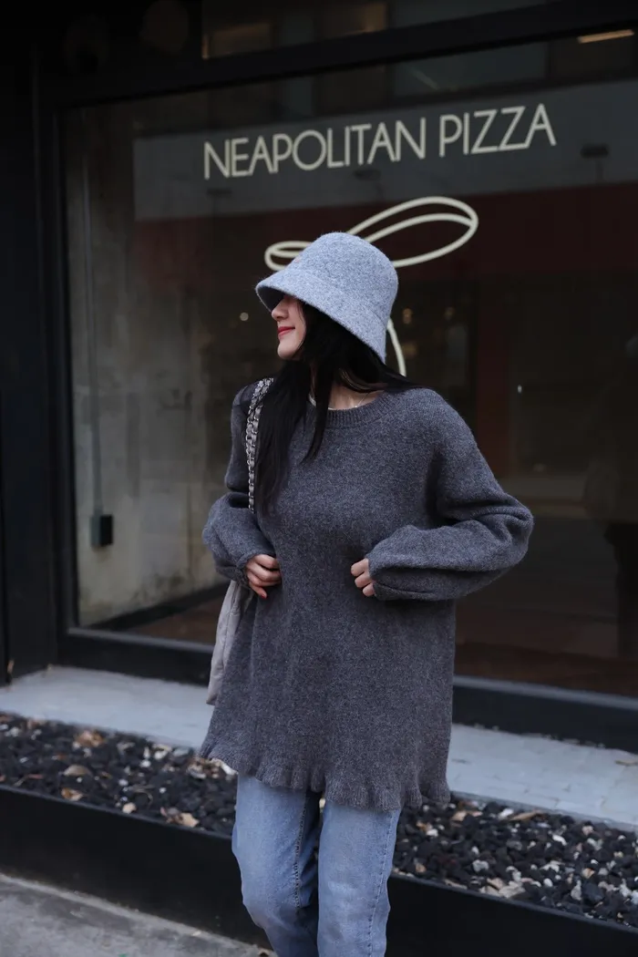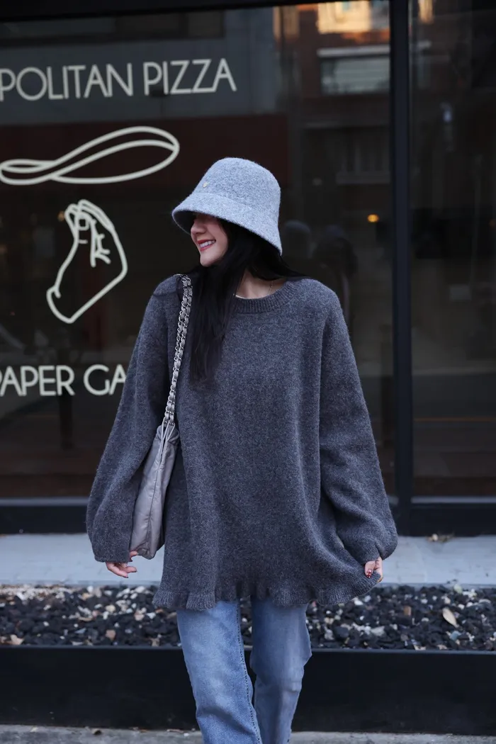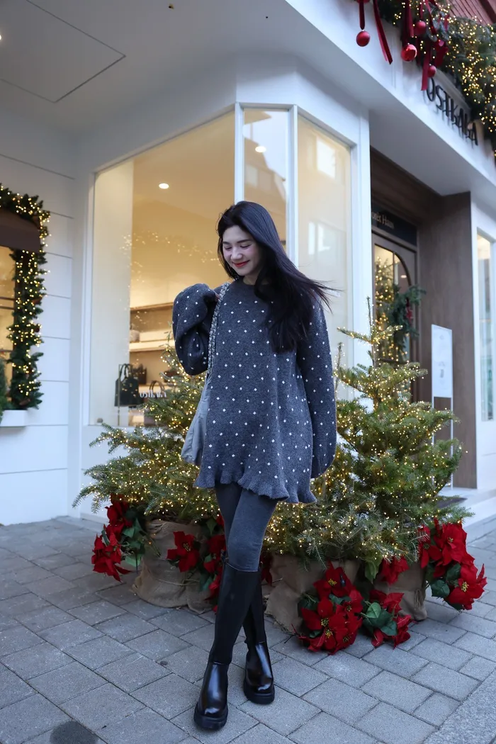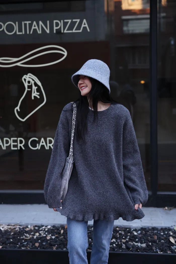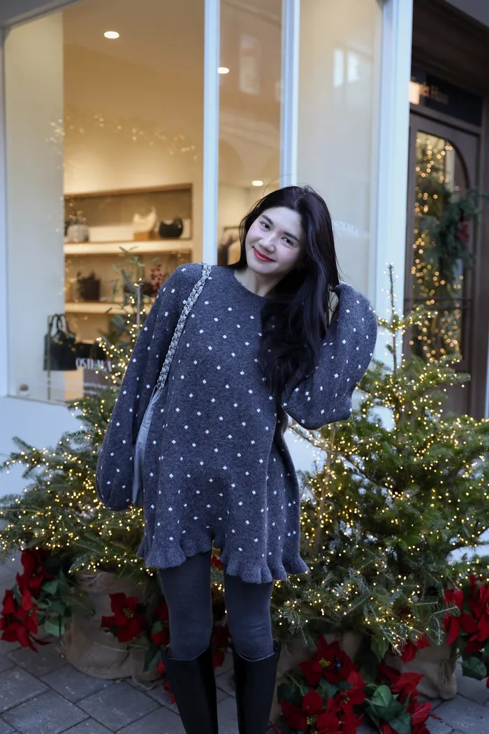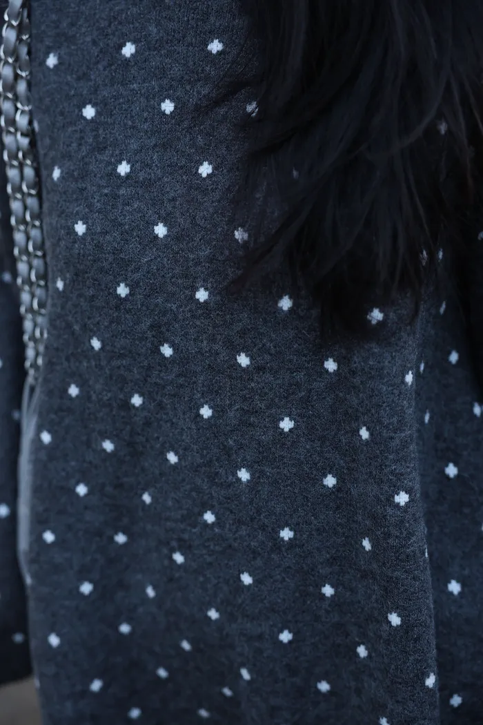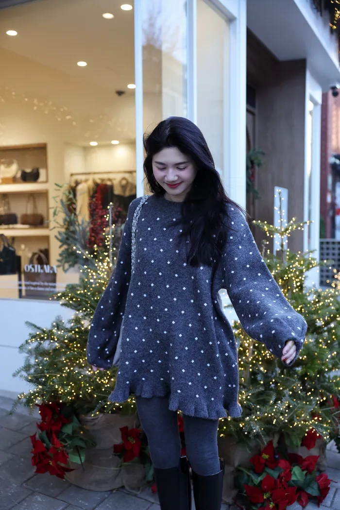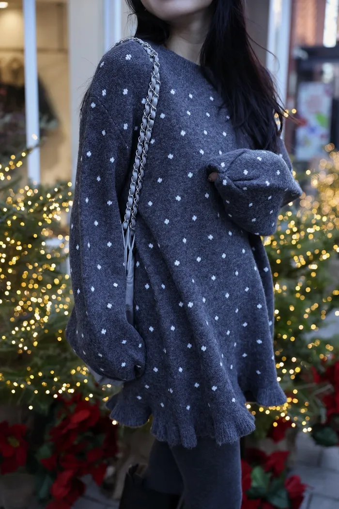 JA18 羊毛兩穿波浪長版針織上衣(點點/灰)
