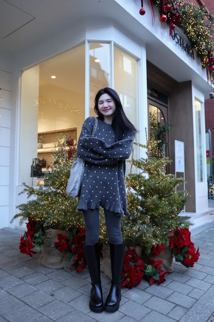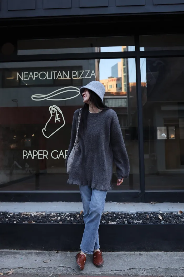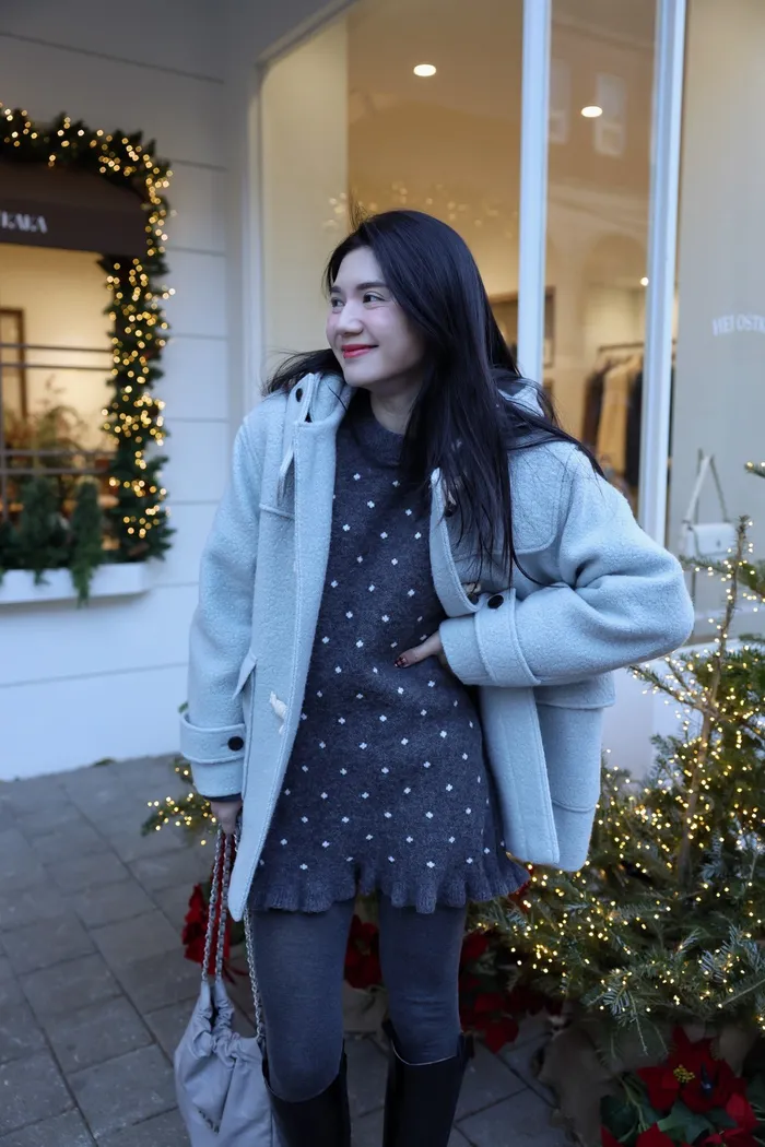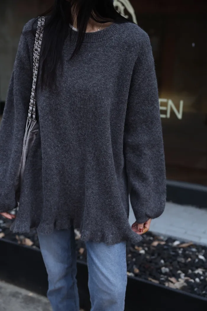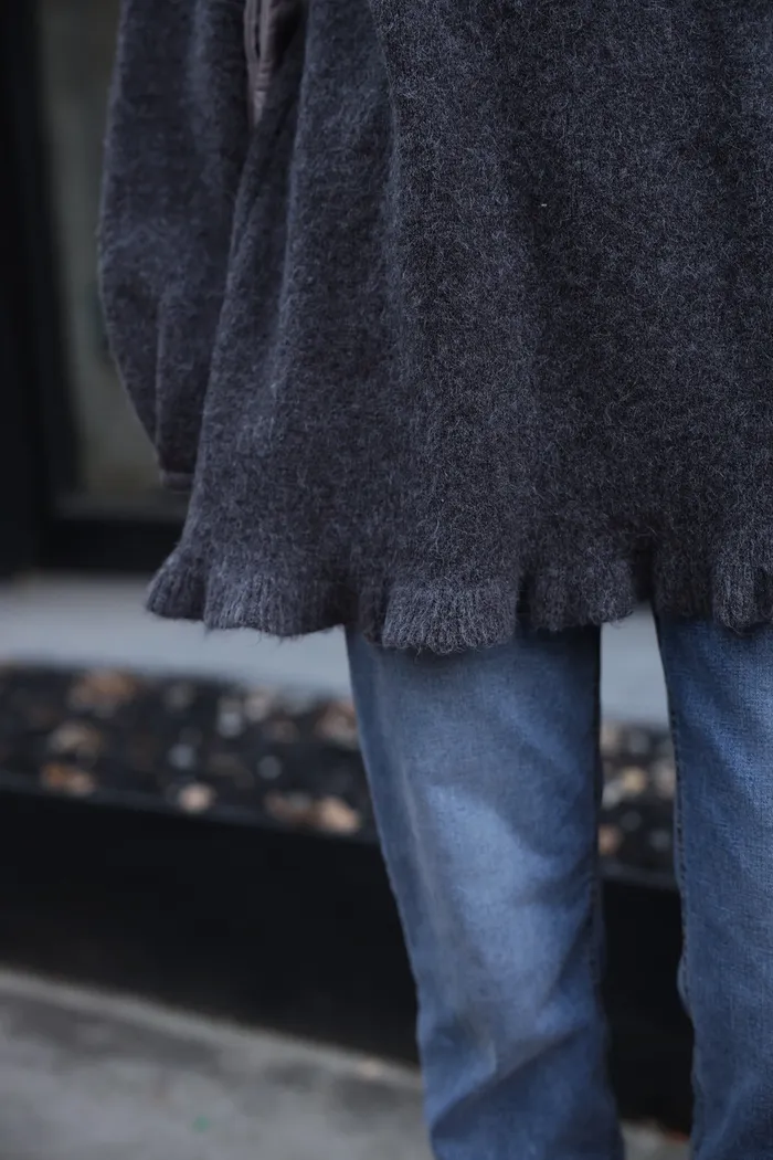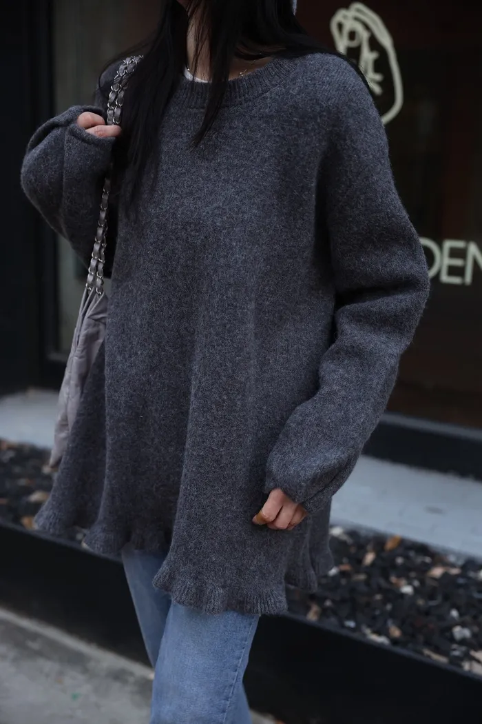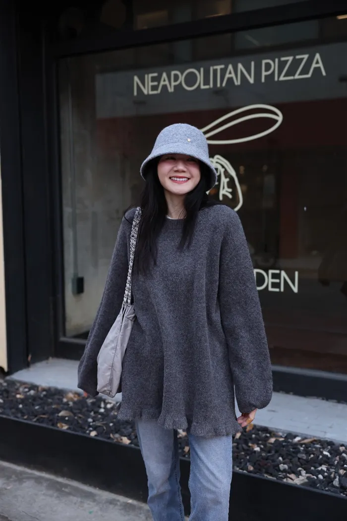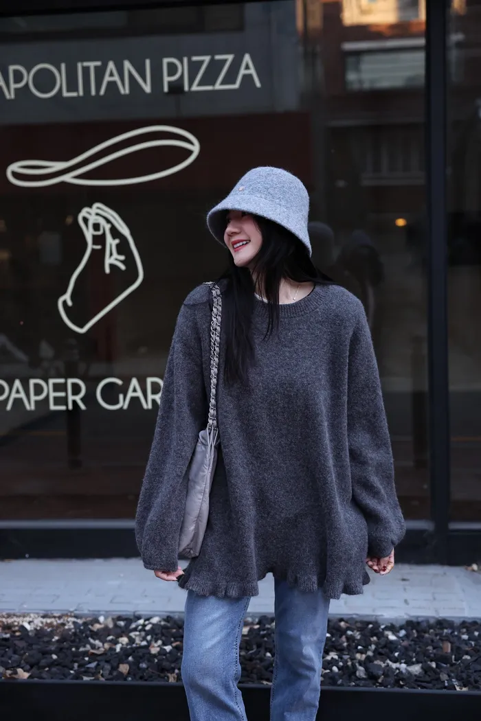 JA18 羊毛兩穿波浪長版針織上衣(點點/灰)