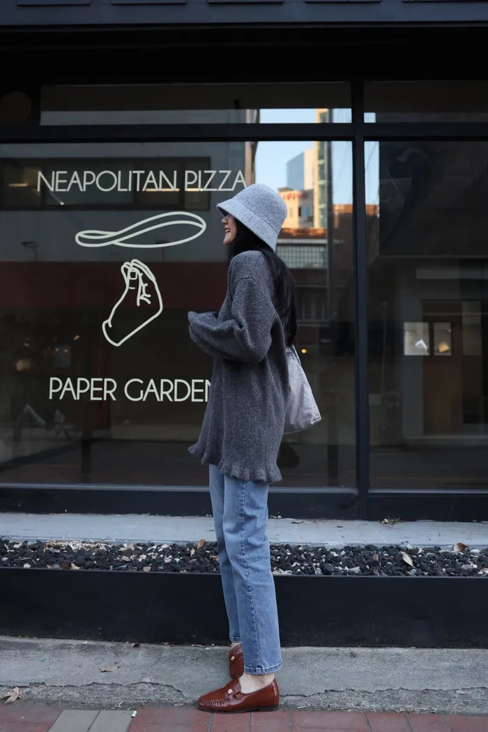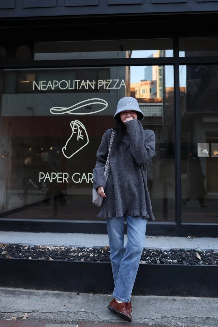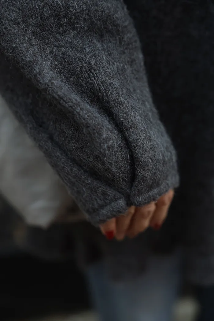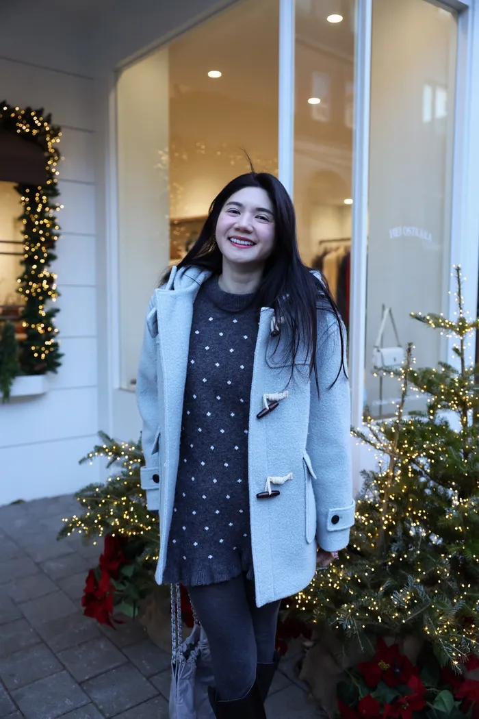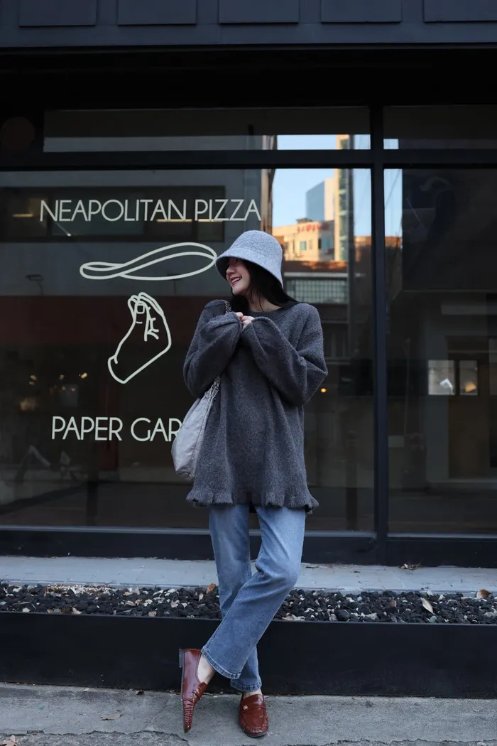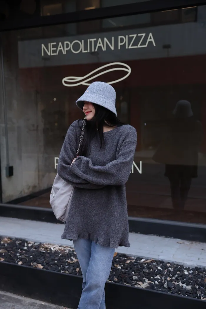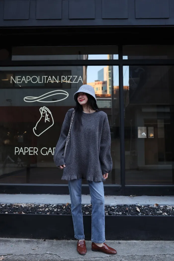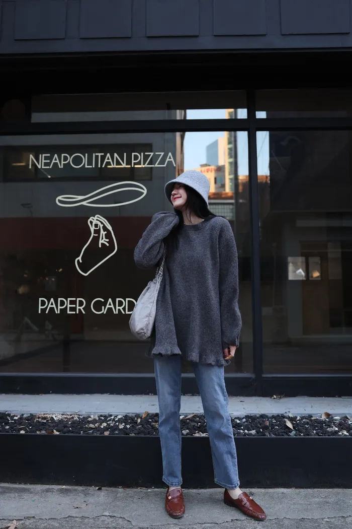JA18 羊毛兩穿波浪長版針織上衣(點點/灰)