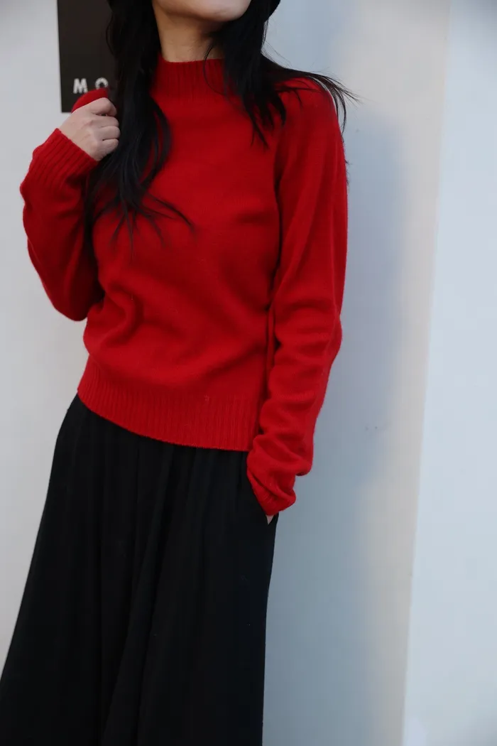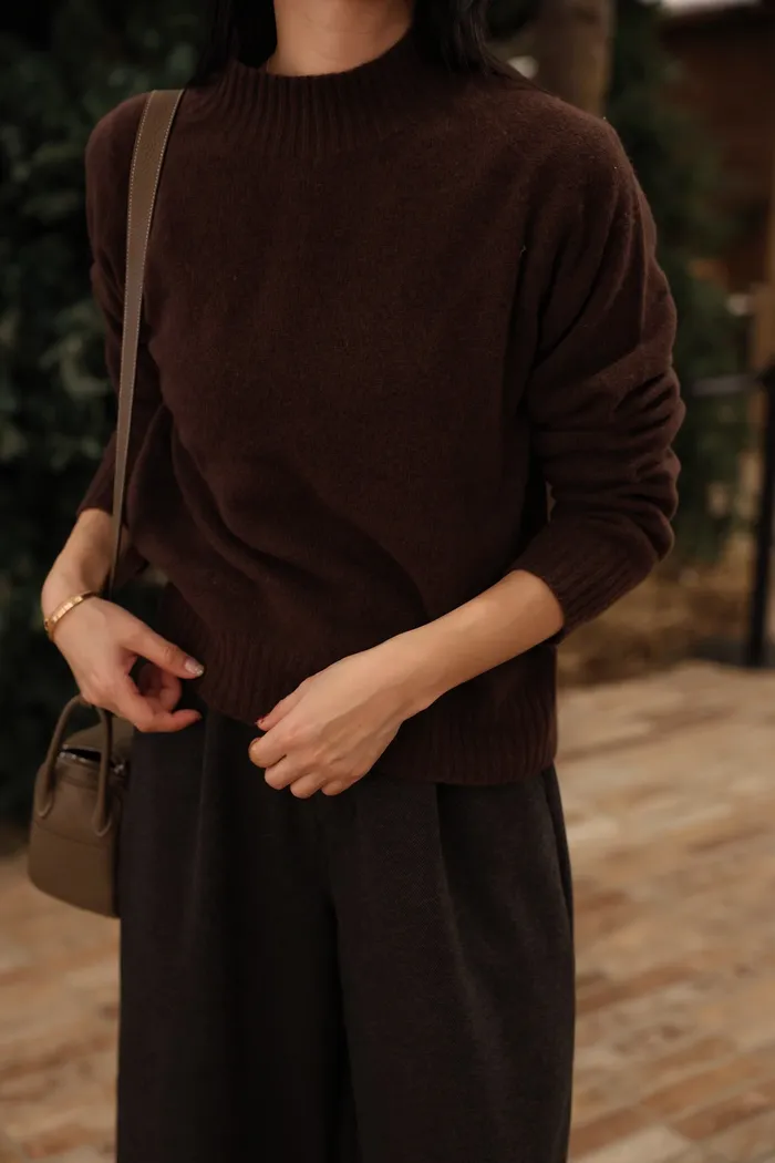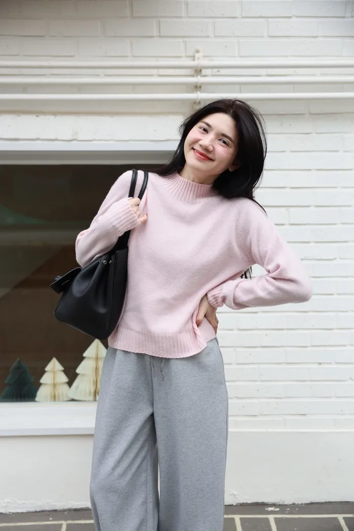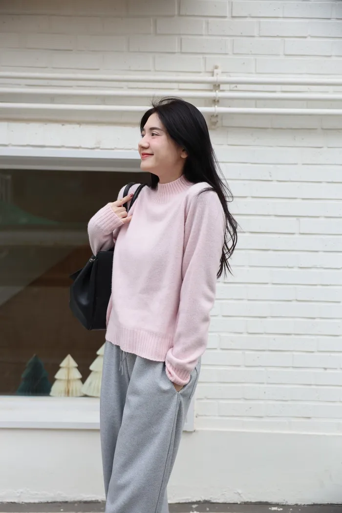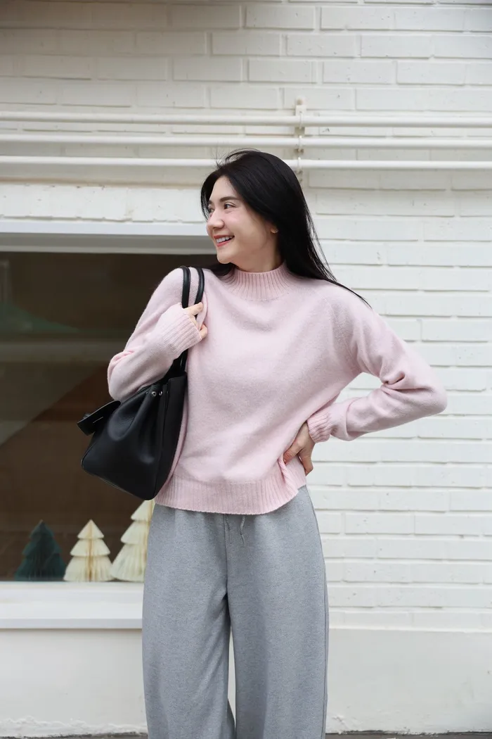 JA21 100%親膚羊毛羅紋半高領針織上衣(咖/紅/白/薄荷藍綠/卡其綠/粉)