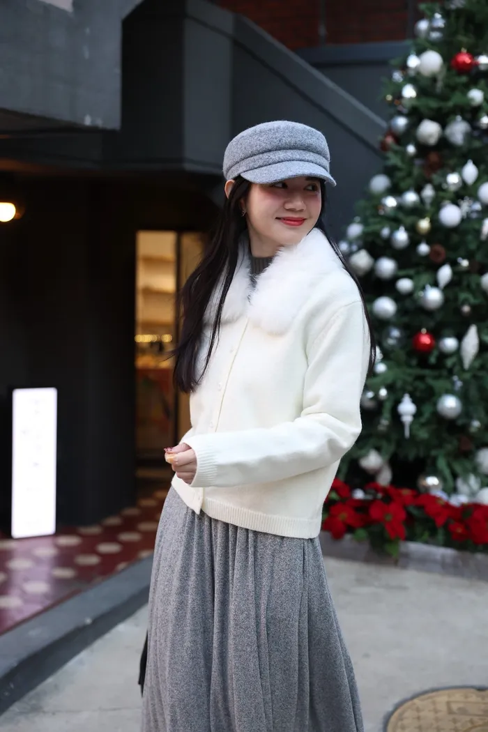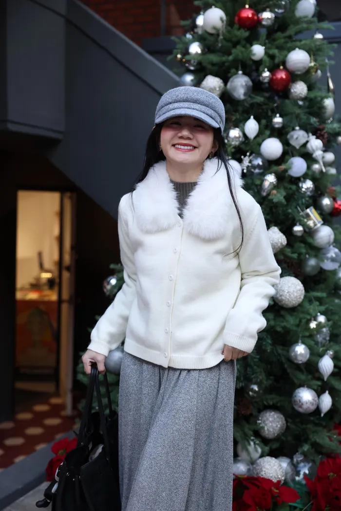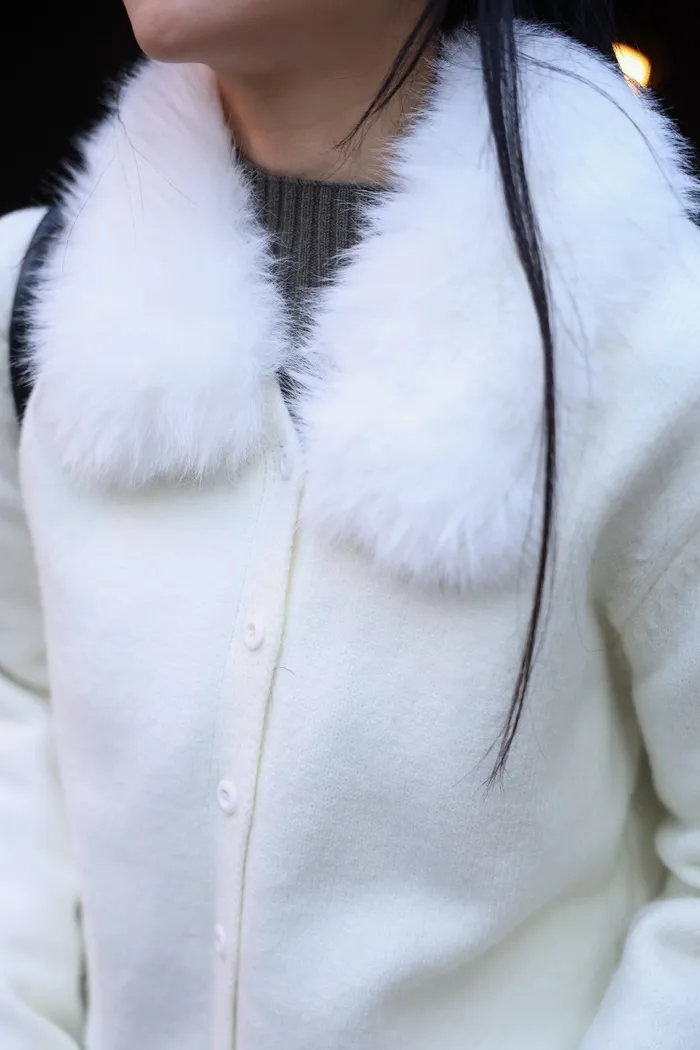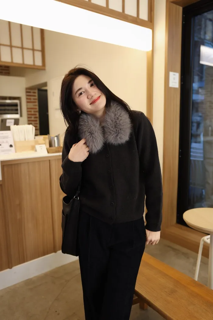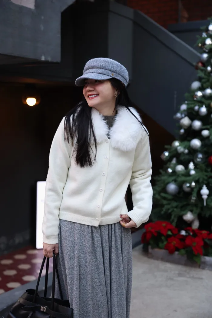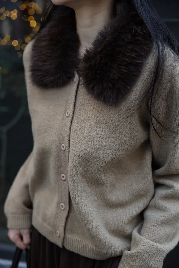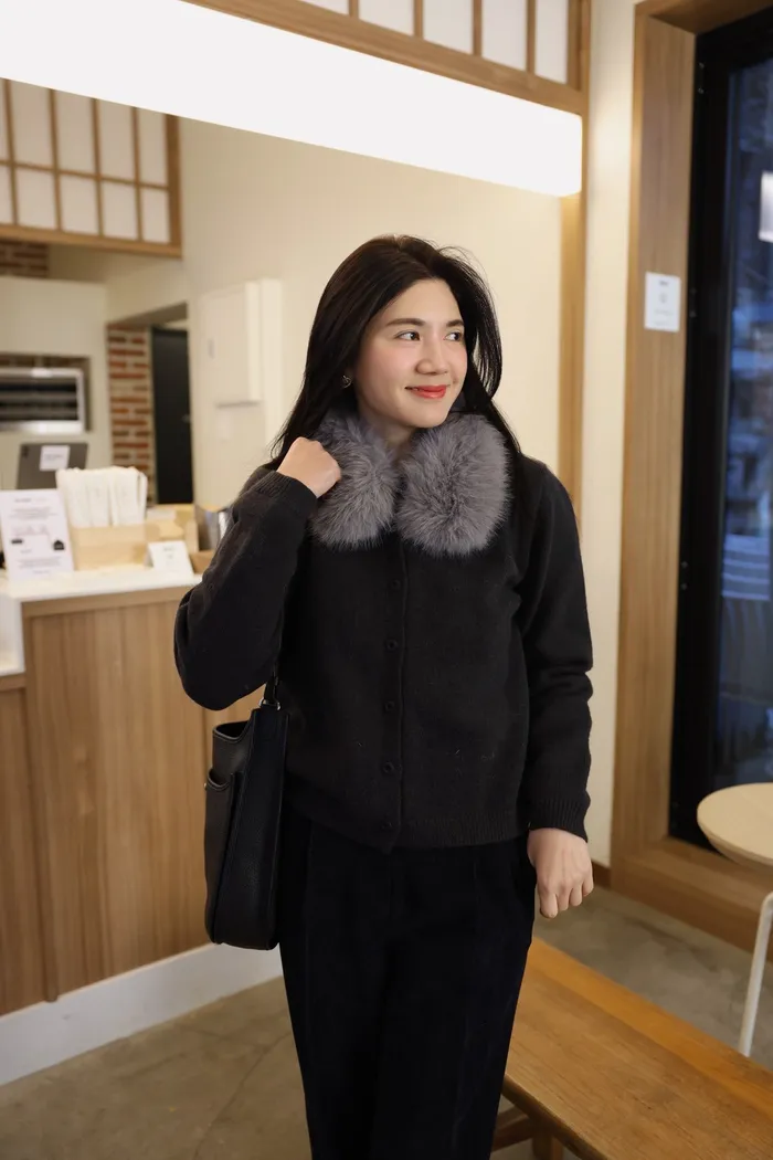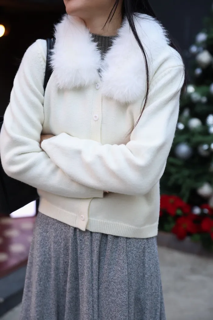 JA24 毛毛領針織兩穿排釦上衣(咖/白/灰)(毛可拆)