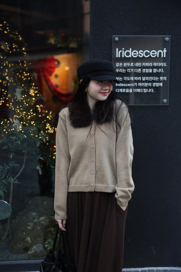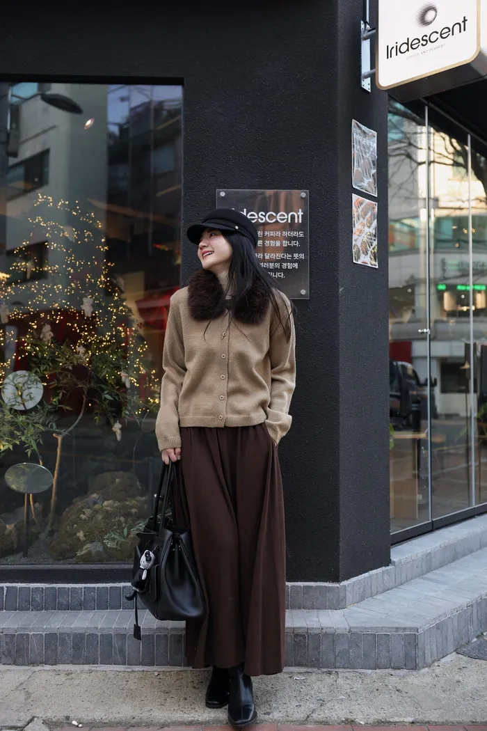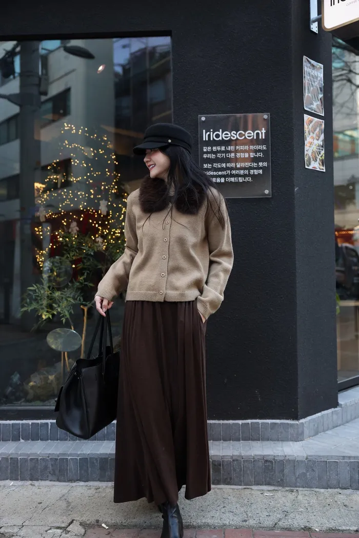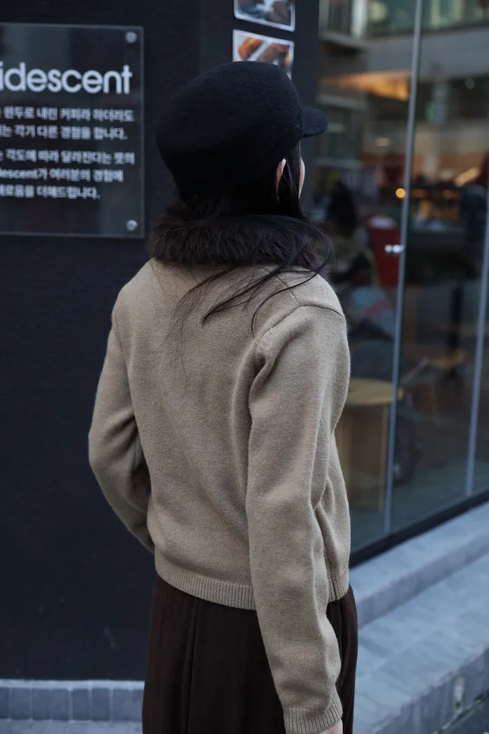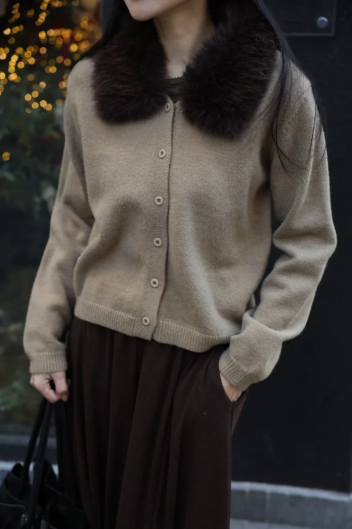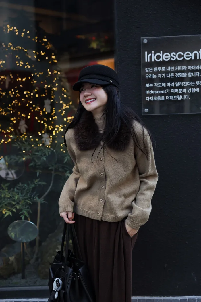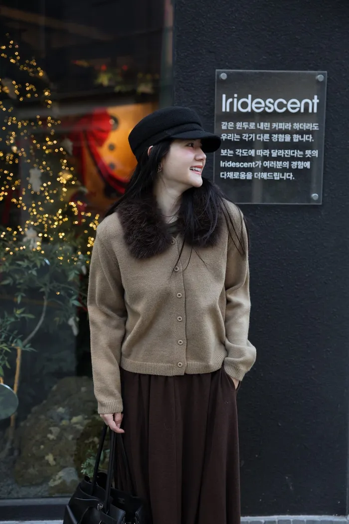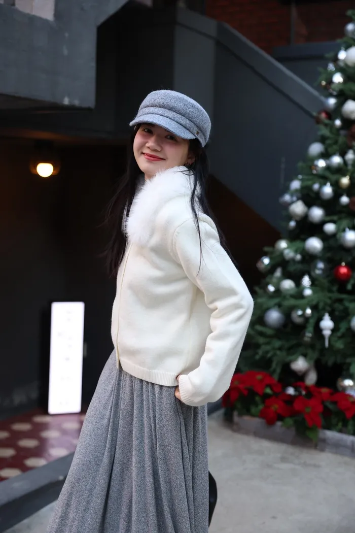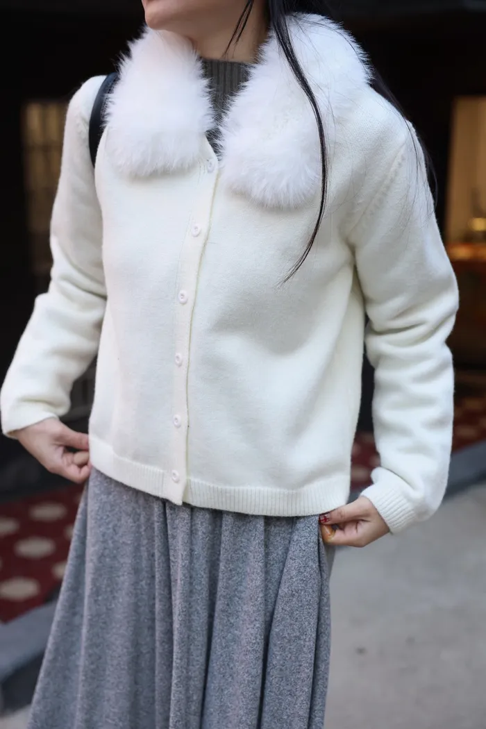 JA24 毛毛領針織兩穿排釦上衣(咖/白/灰)(毛可拆)