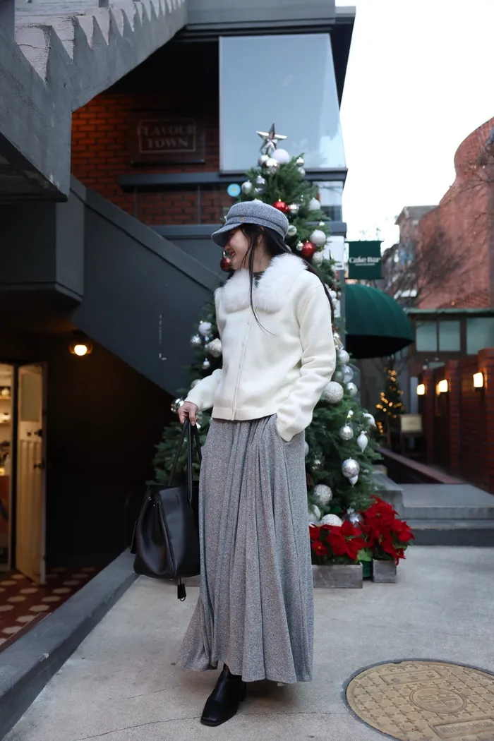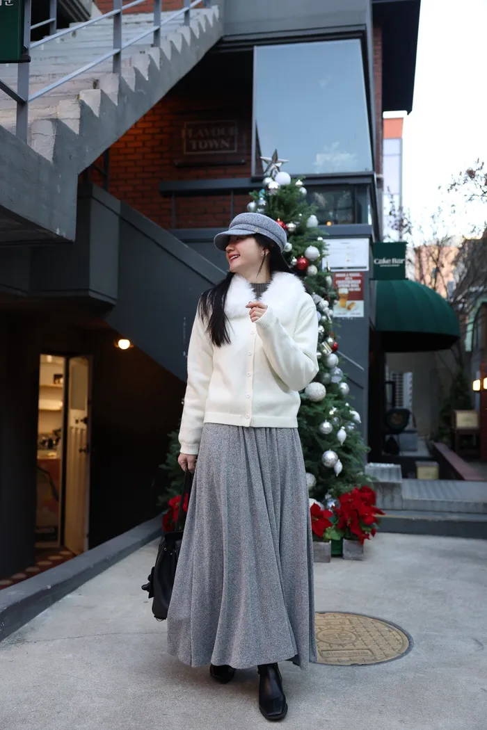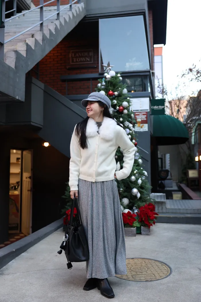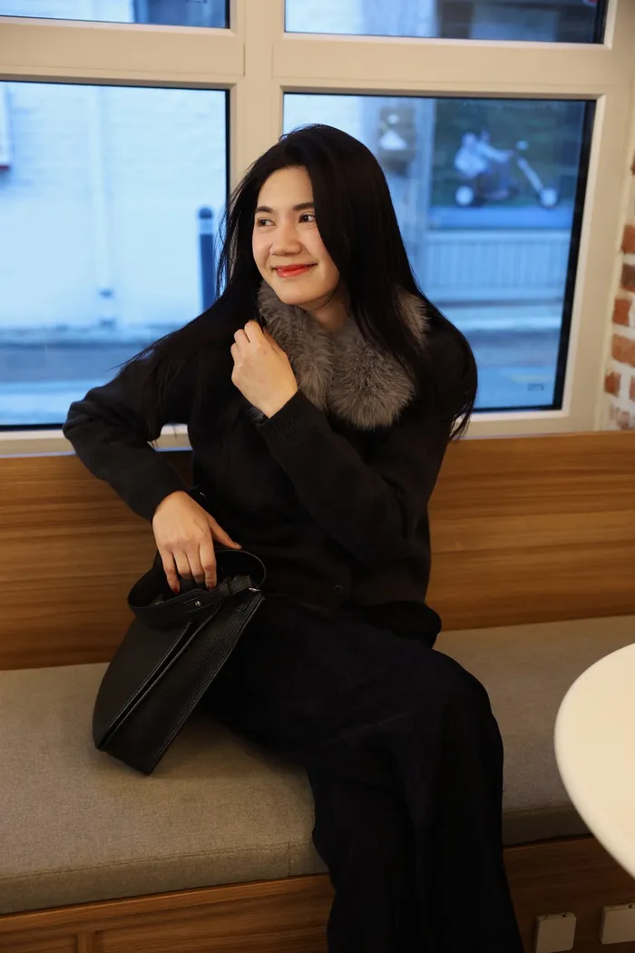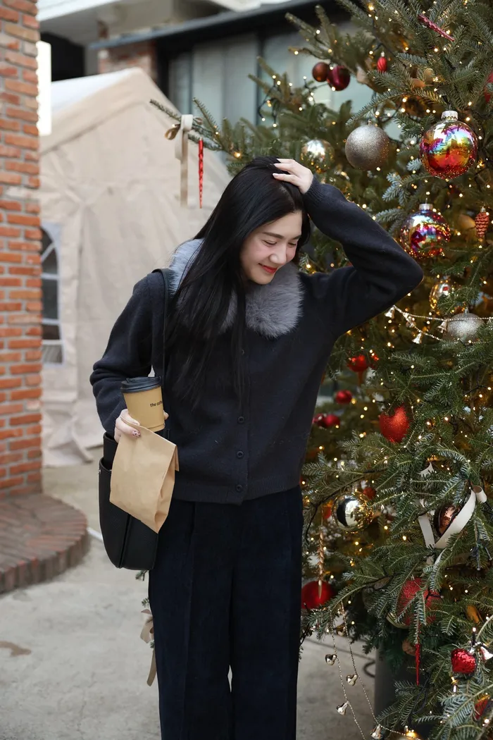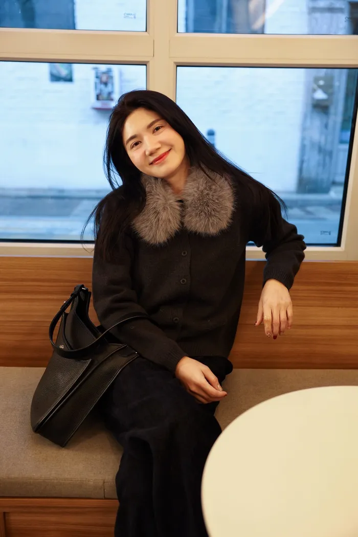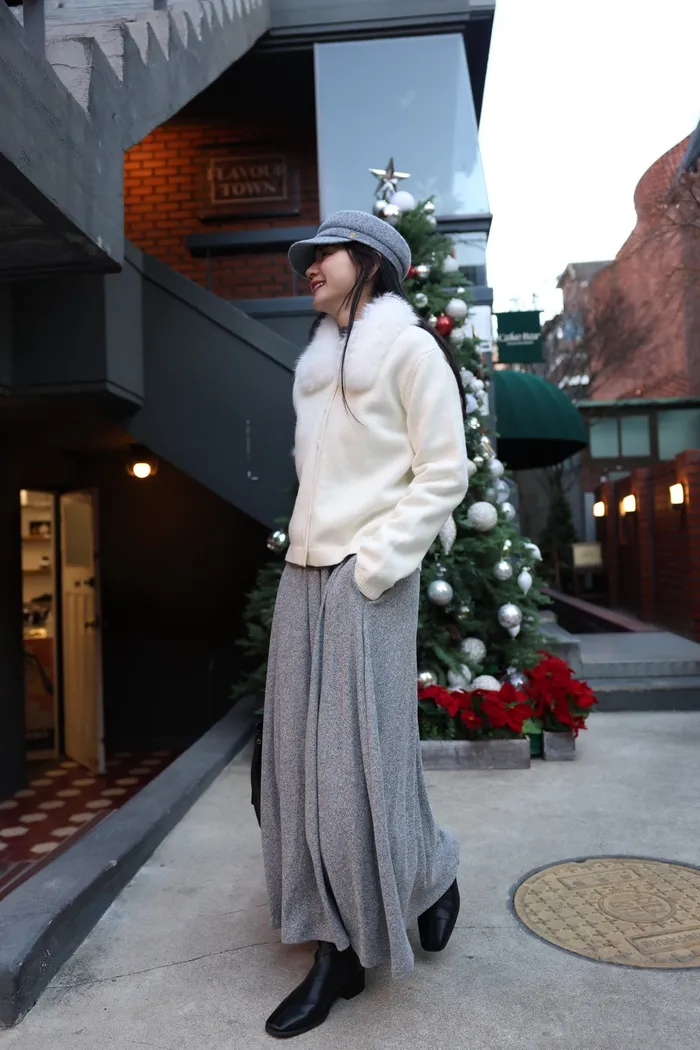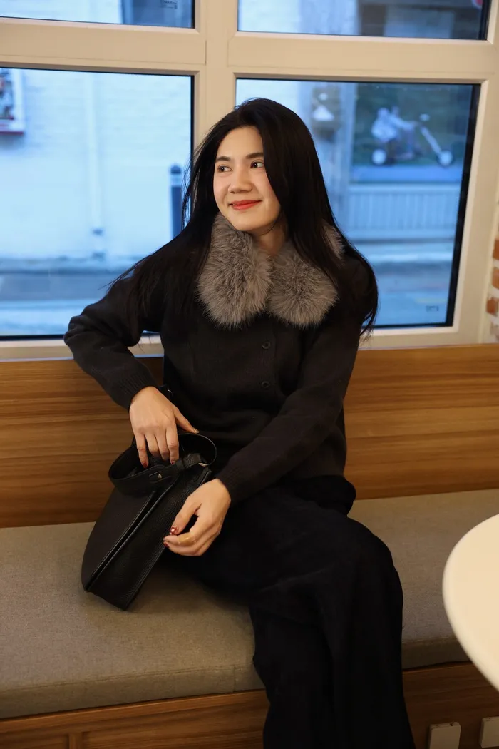 JA24 毛毛領針織兩穿排釦上衣(咖/白/灰)(毛可拆)