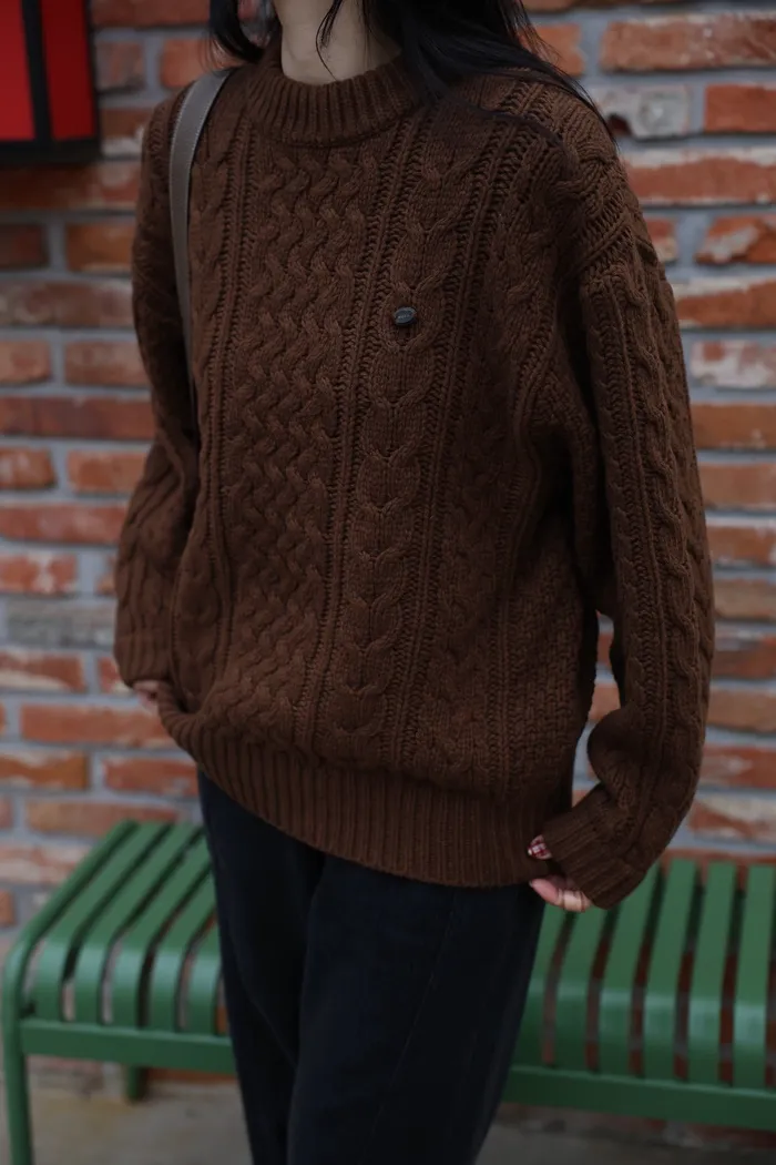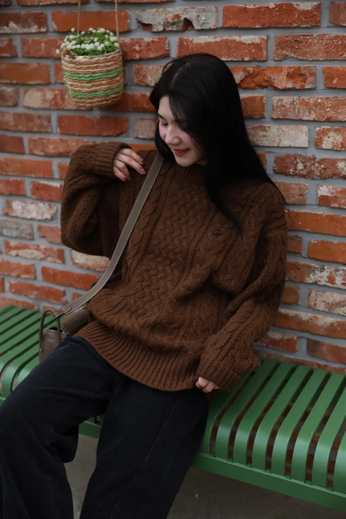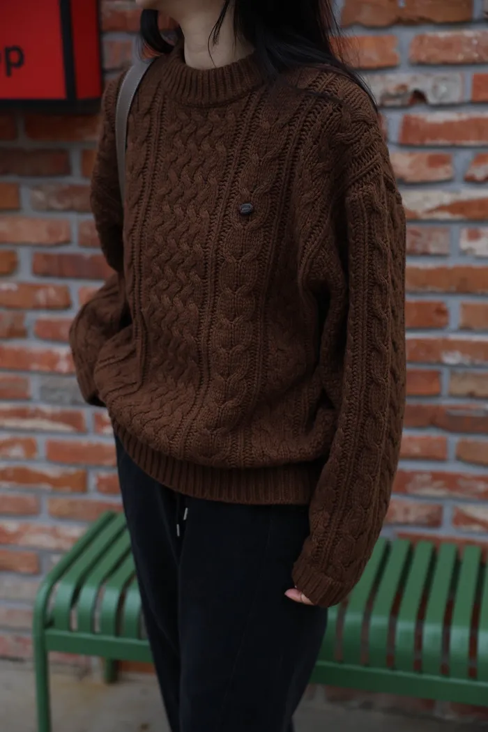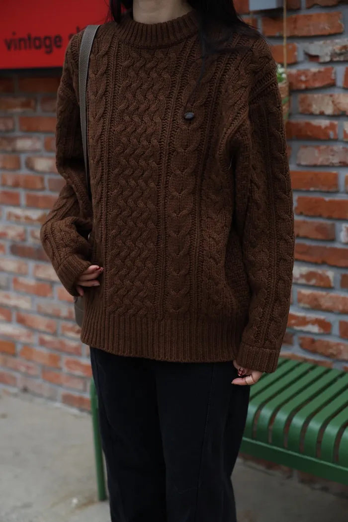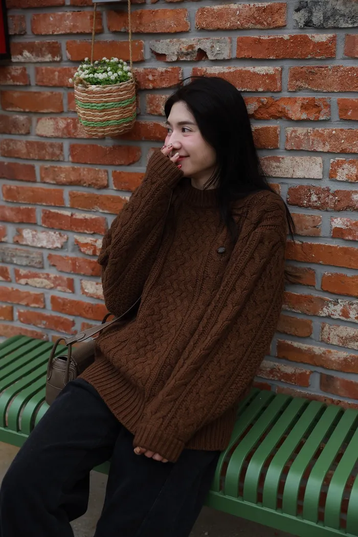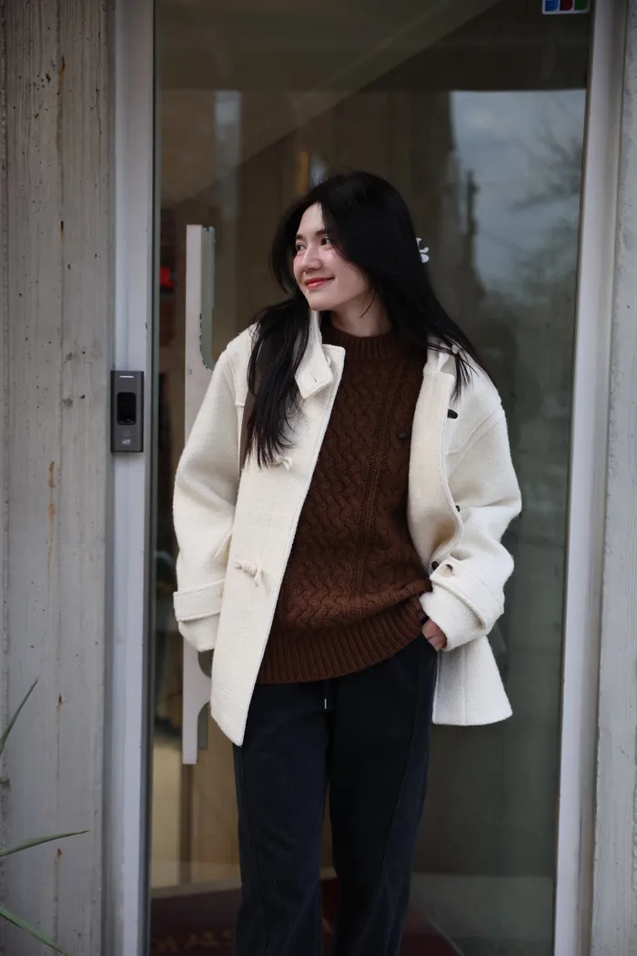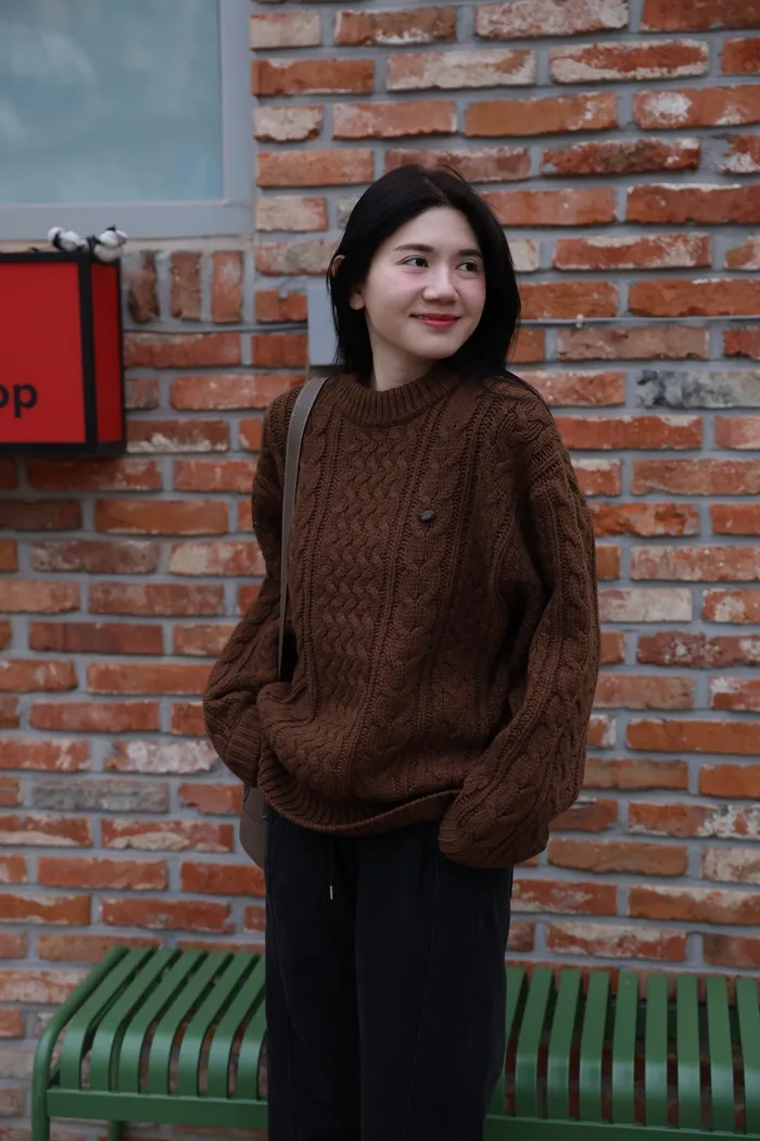JA29 麻花小標不刺膚羊毛粗針織毛衣(咖/米白)