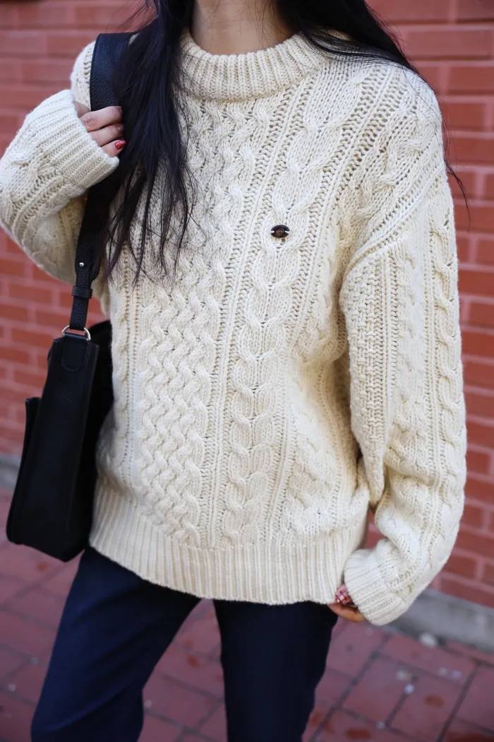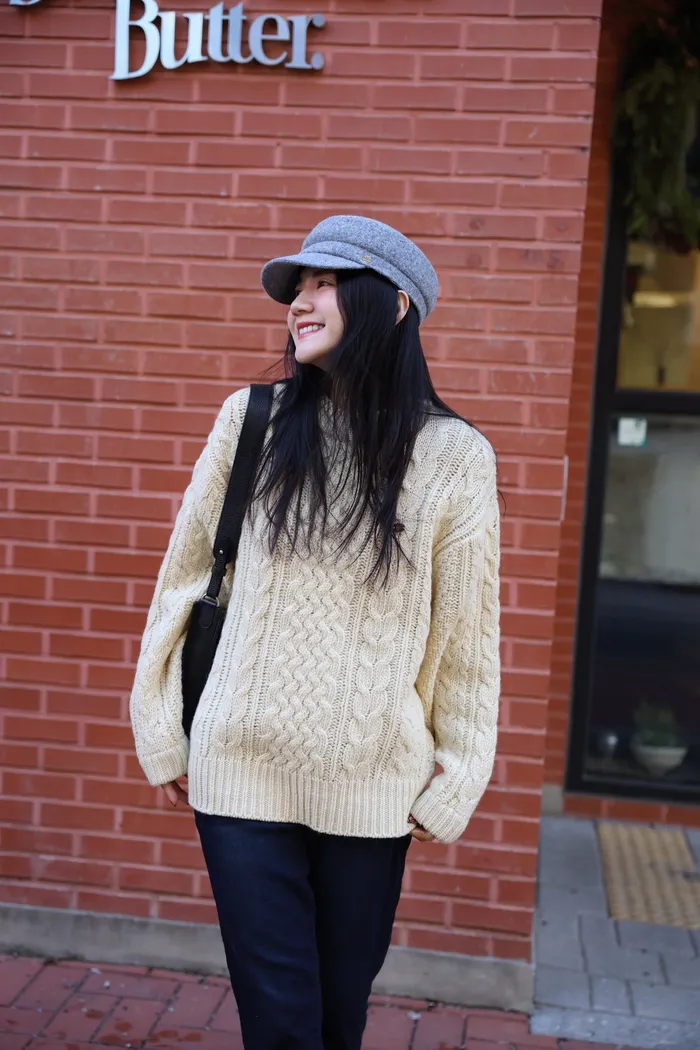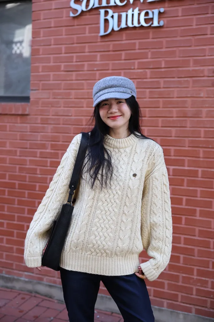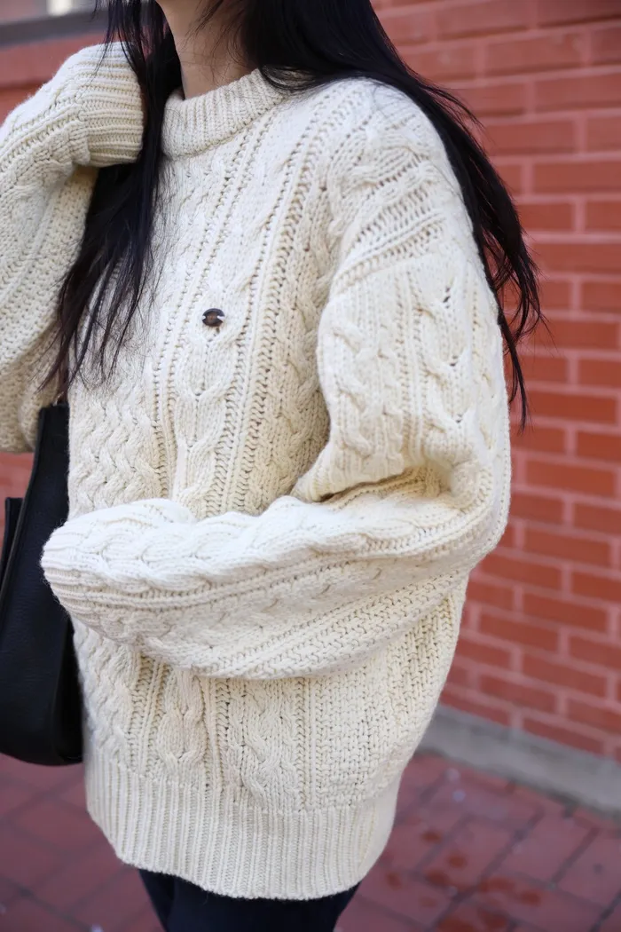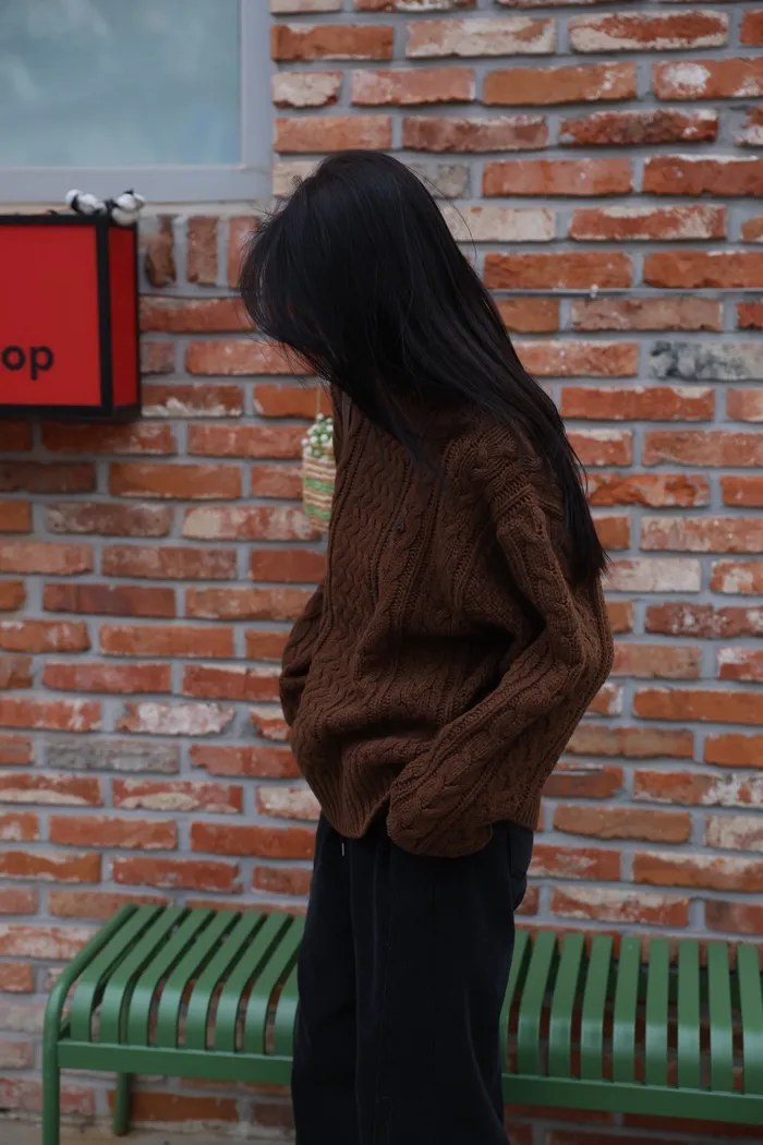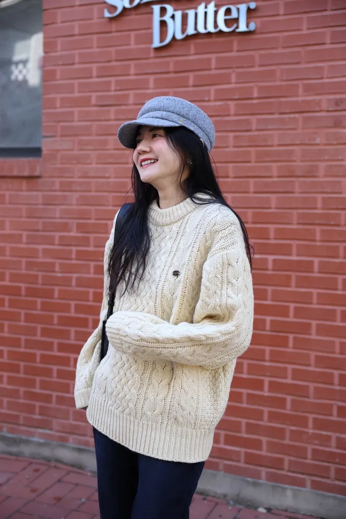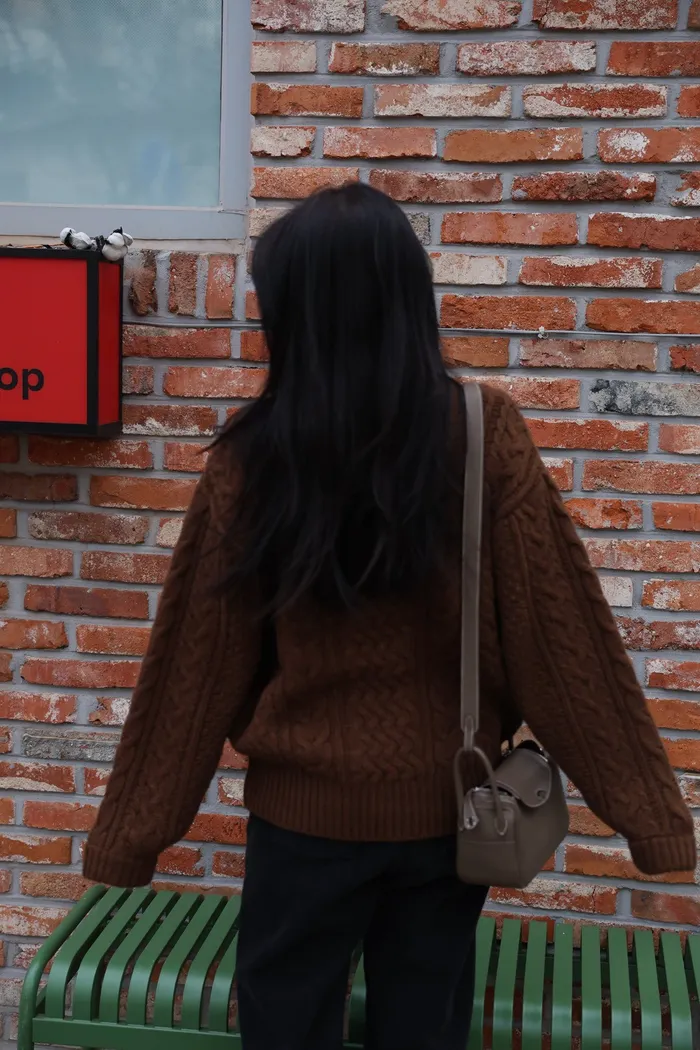 JA29 麻花小標不刺膚羊毛粗針織毛衣(咖/米白)