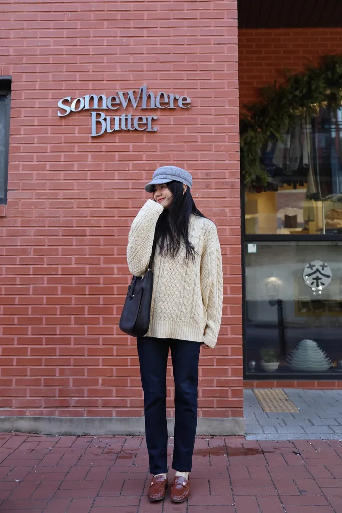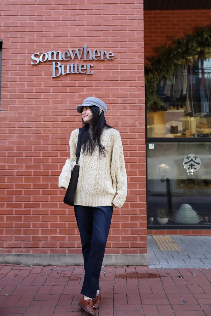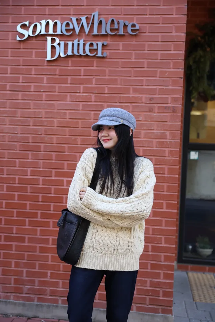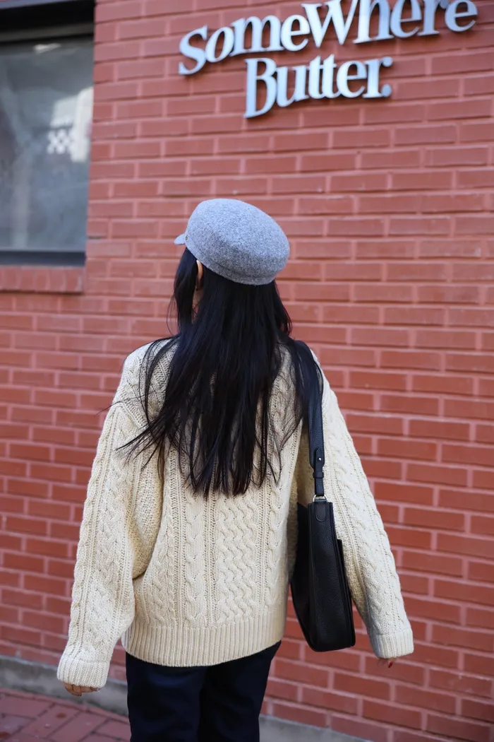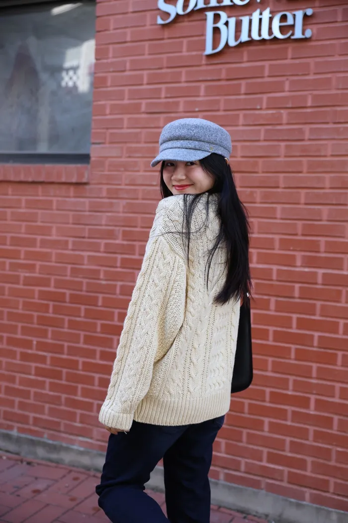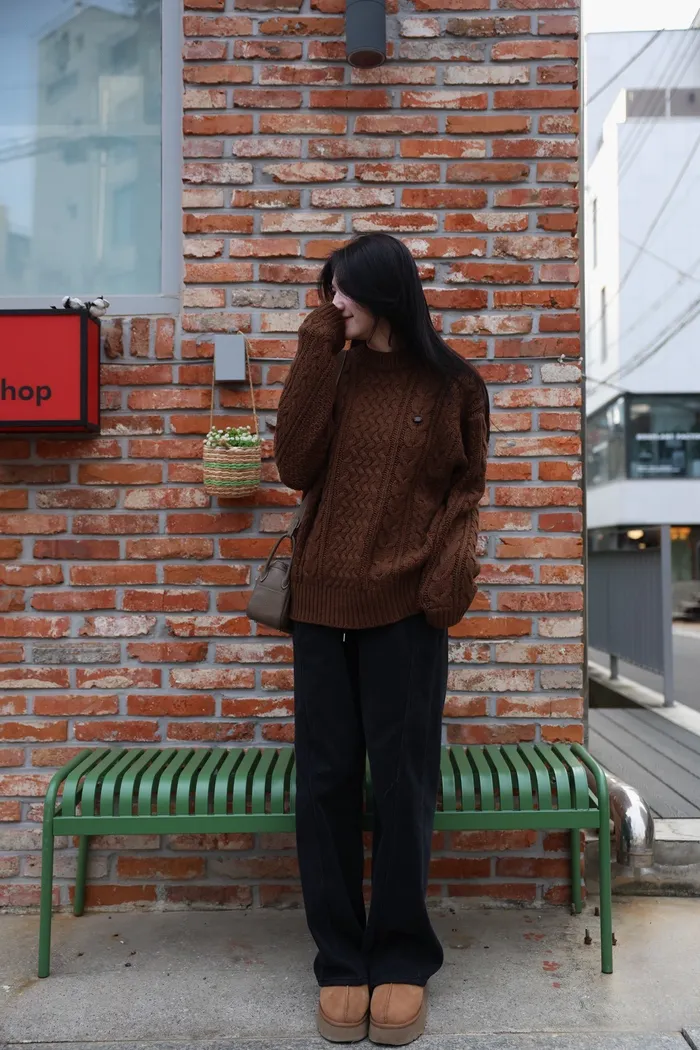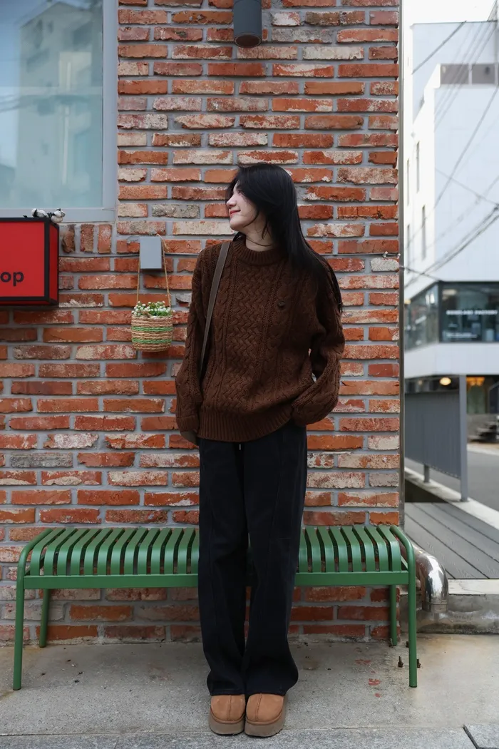 JA29 麻花小標不刺膚羊毛粗針織毛衣(咖/米白)