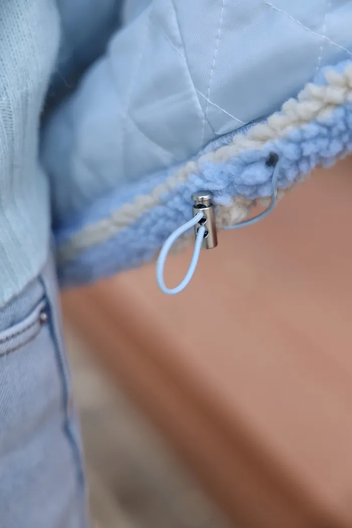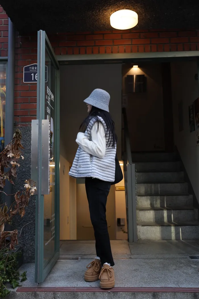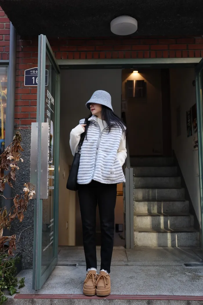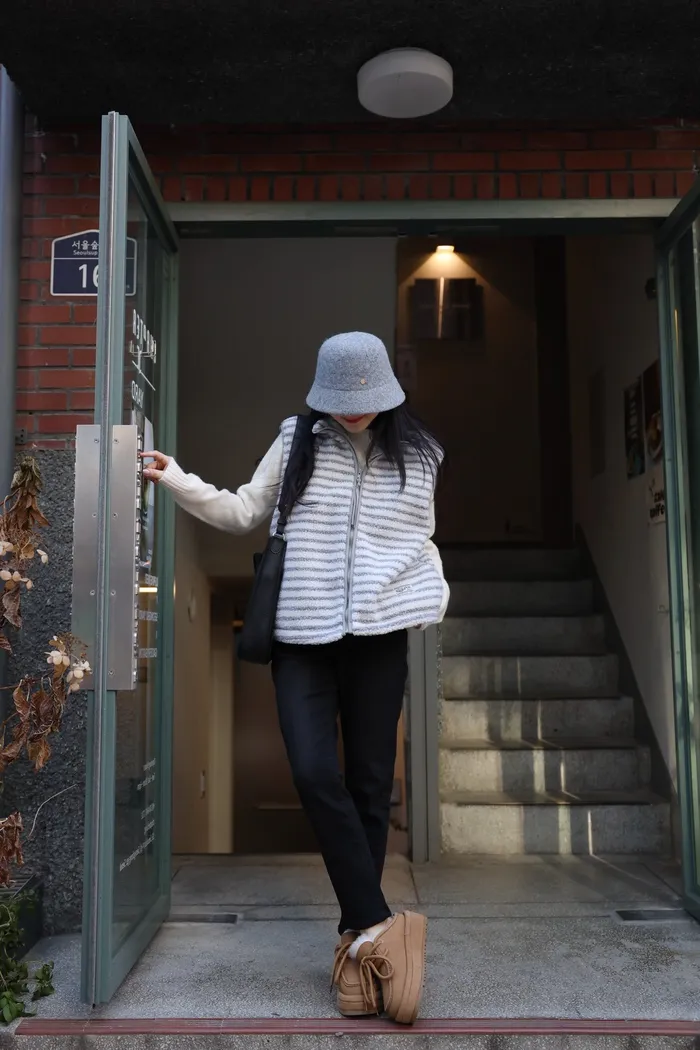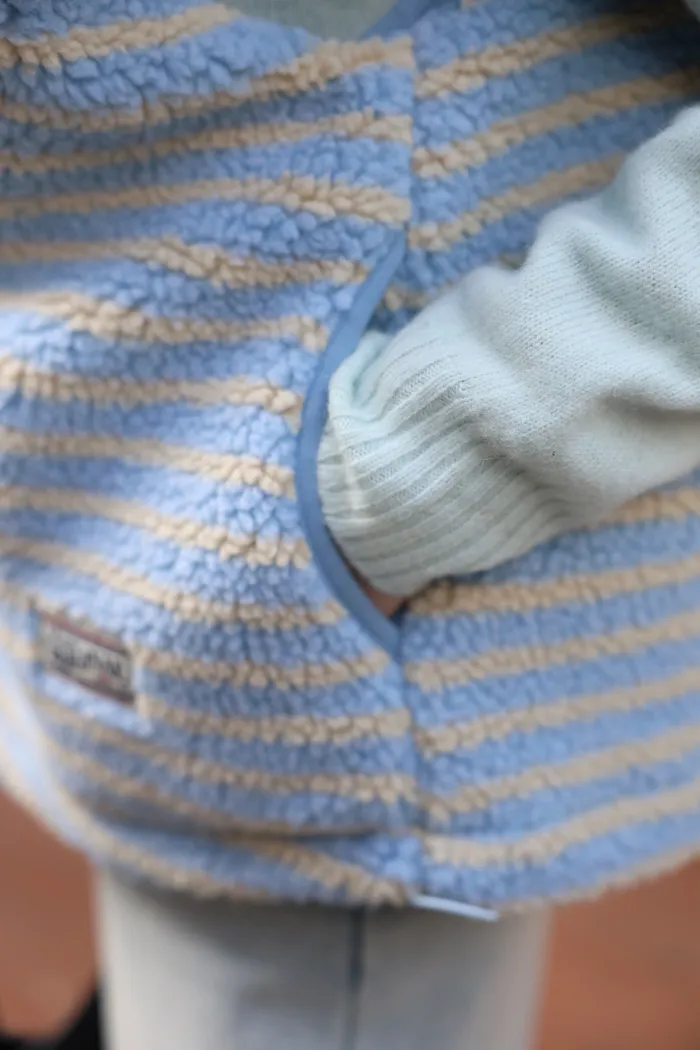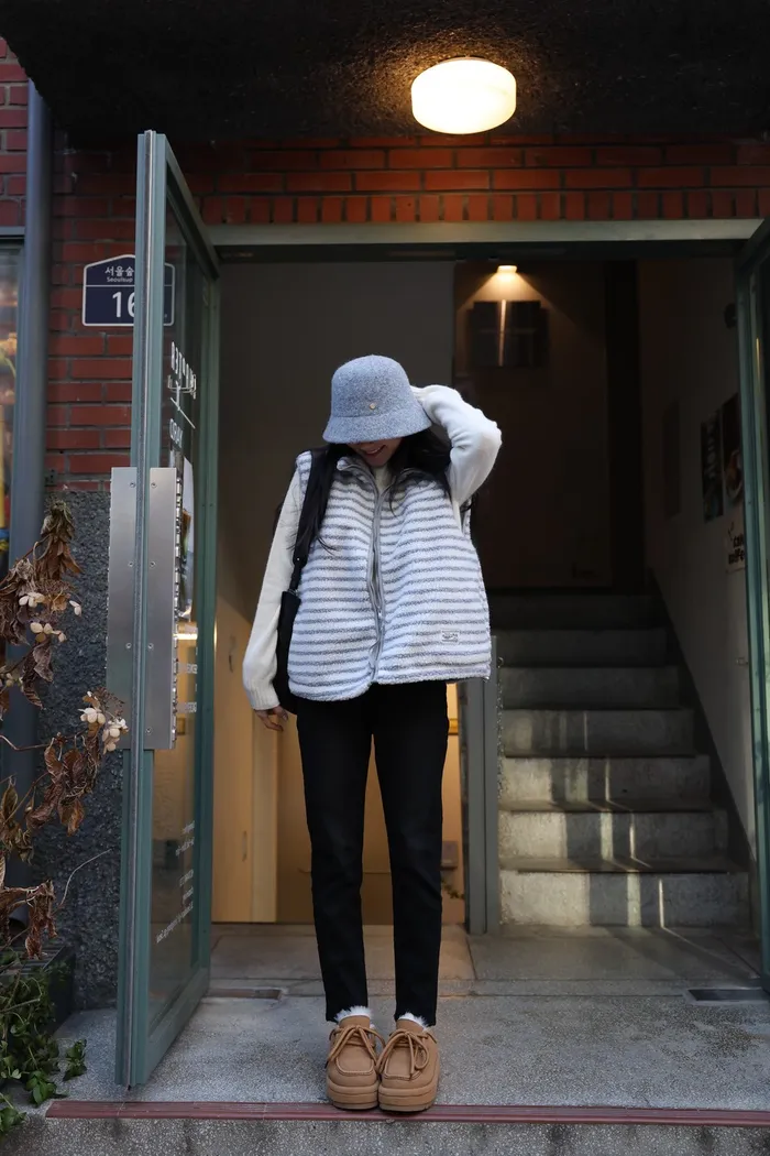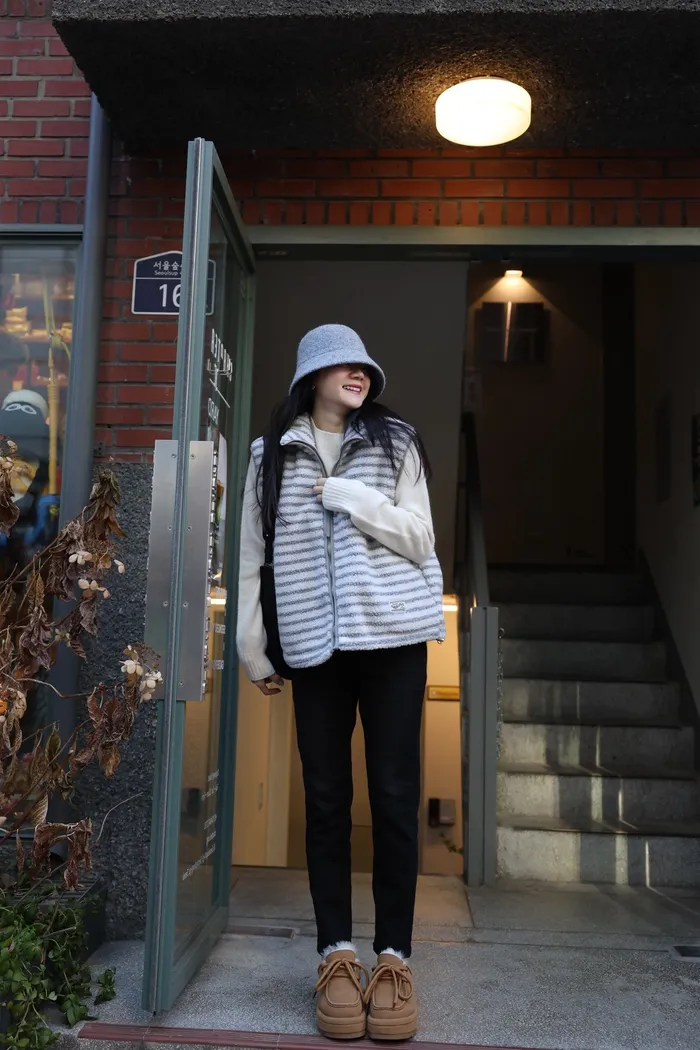 JA33 Q羔毛條紋立領拉鏈背心(灰白條紋/藍杏條紋)