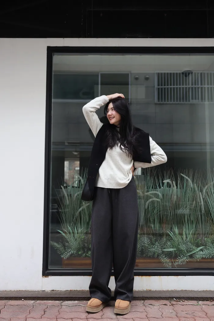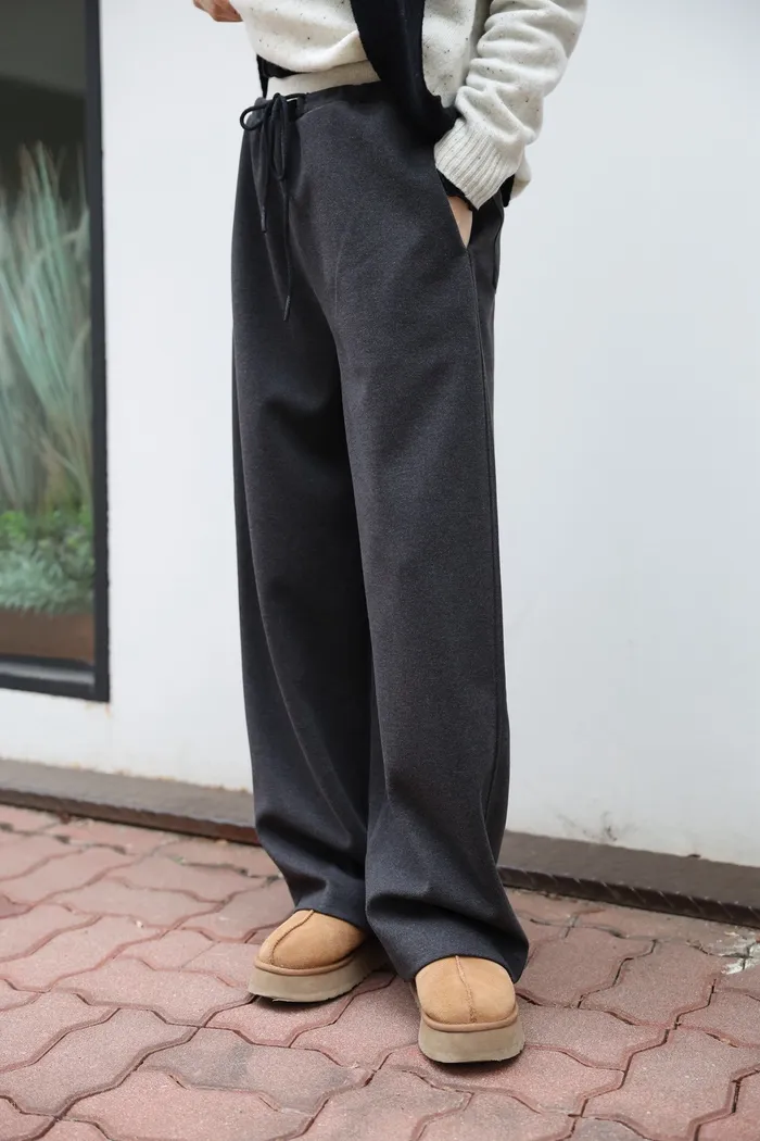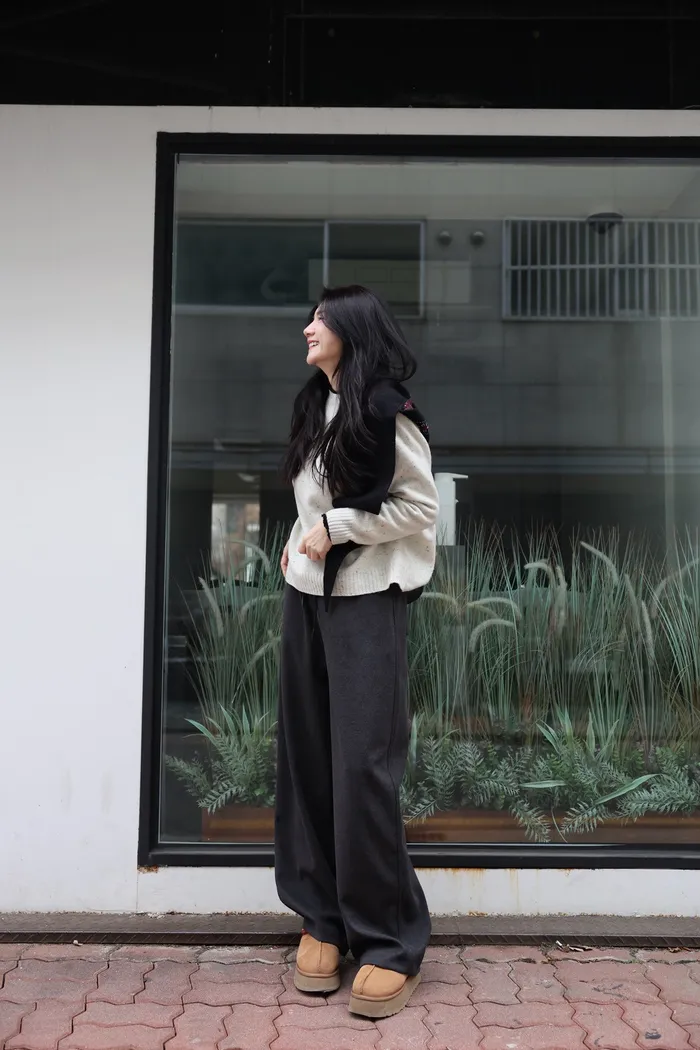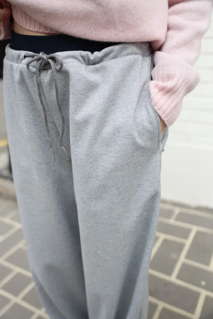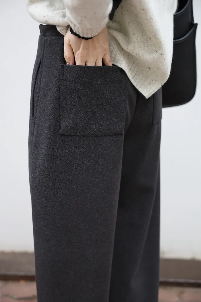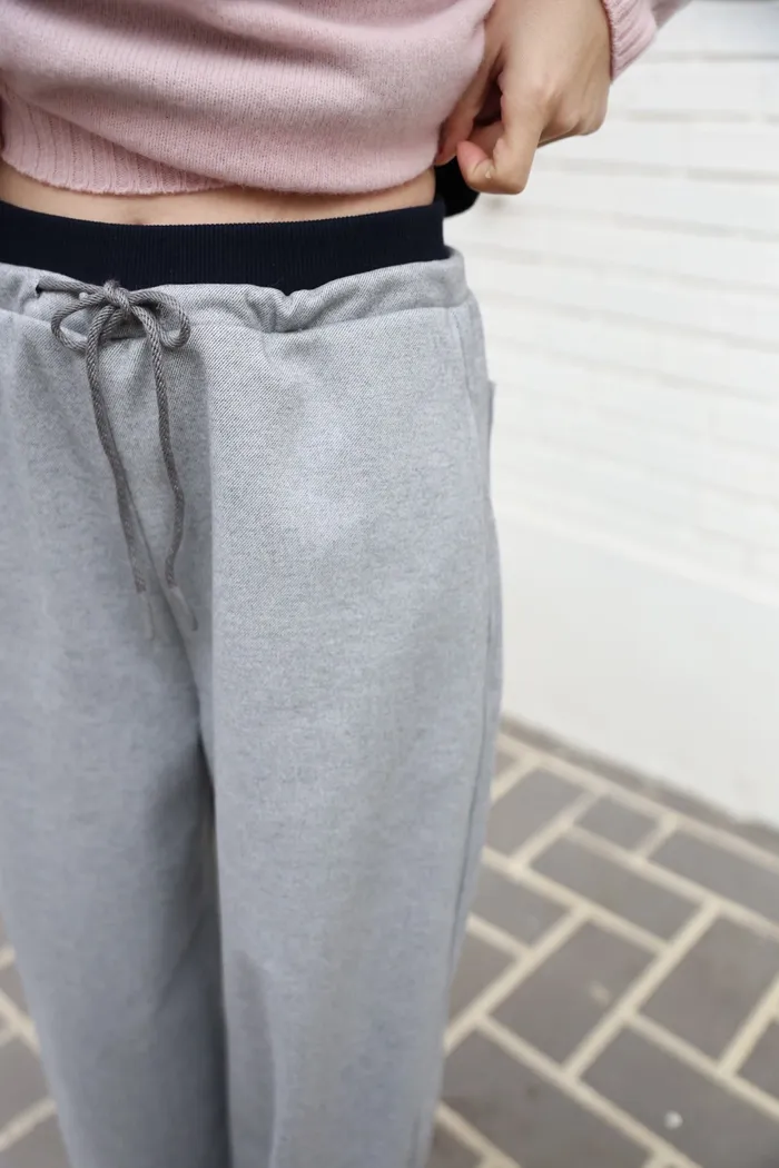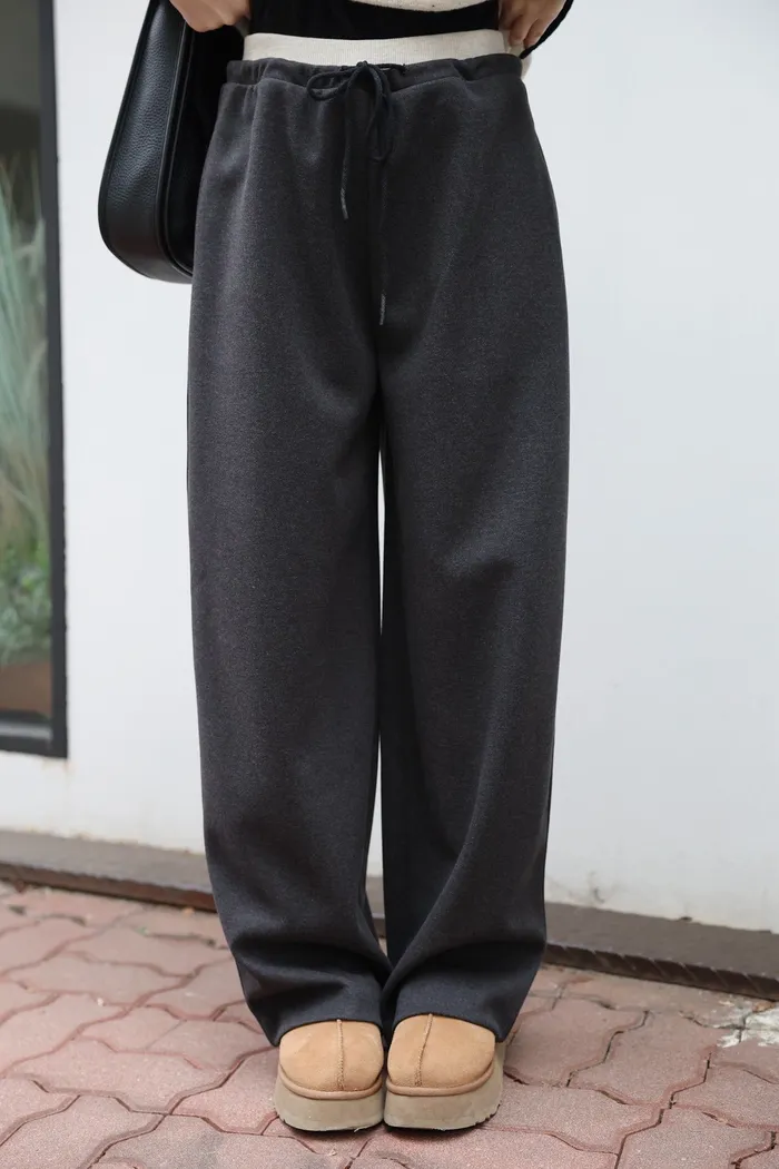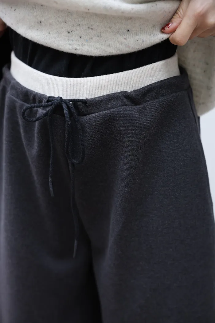 JA34 帥氣撞色腰頭拼接羊毛寬褲(深灰/淺灰)